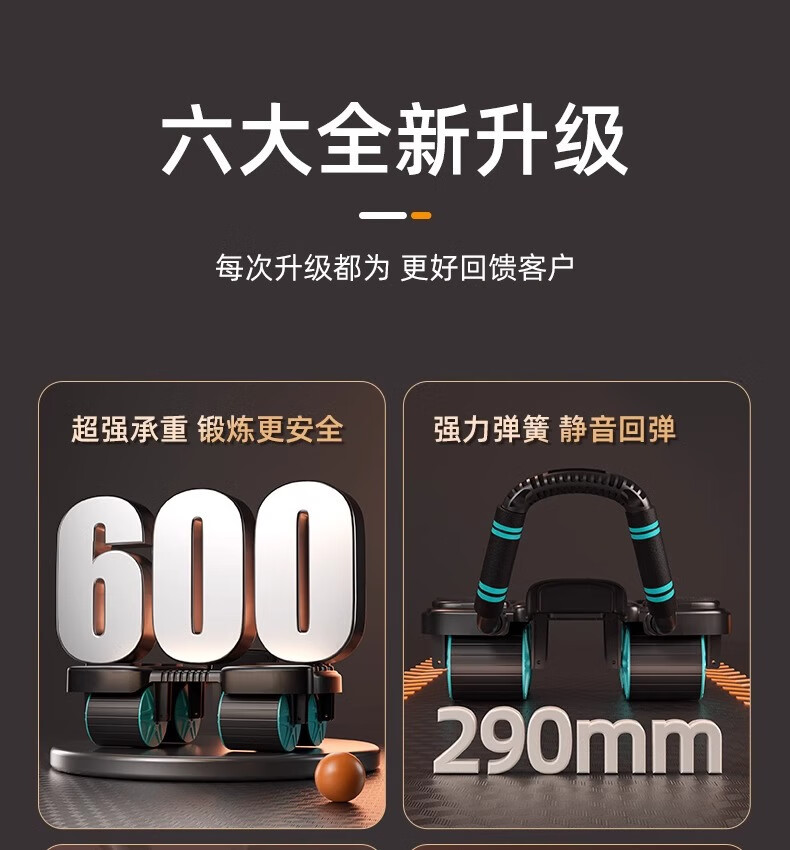 Shantou Lincun's new six-elbow support abdominal wheel automatic rebound abdominal muscle training four-wheel abdominal curler men's sports 5 black free kneeling mat upgraded six elbow support/four-wheel abdominal wheel