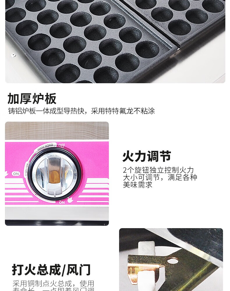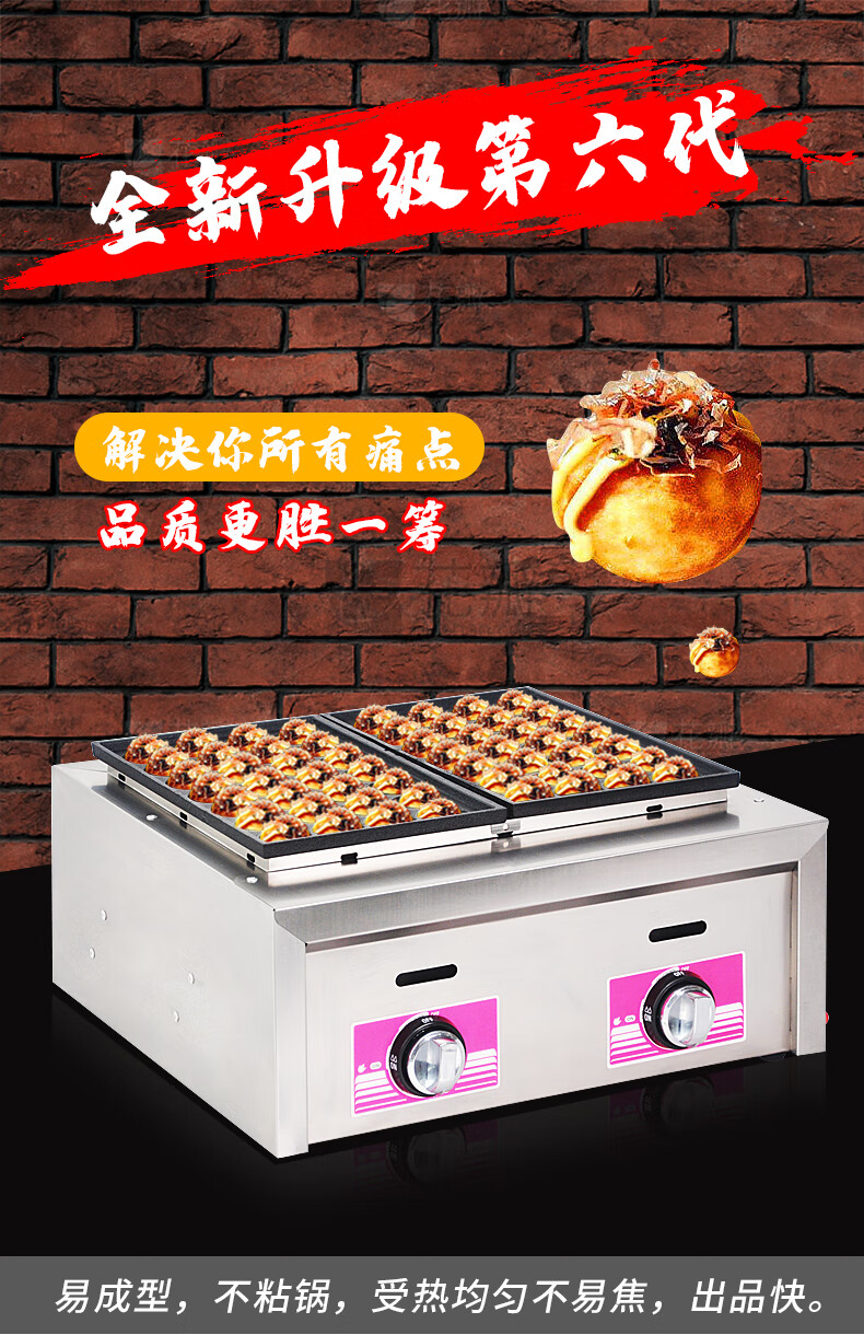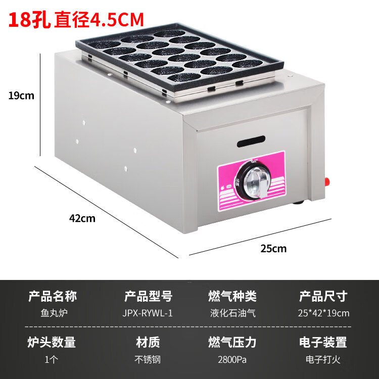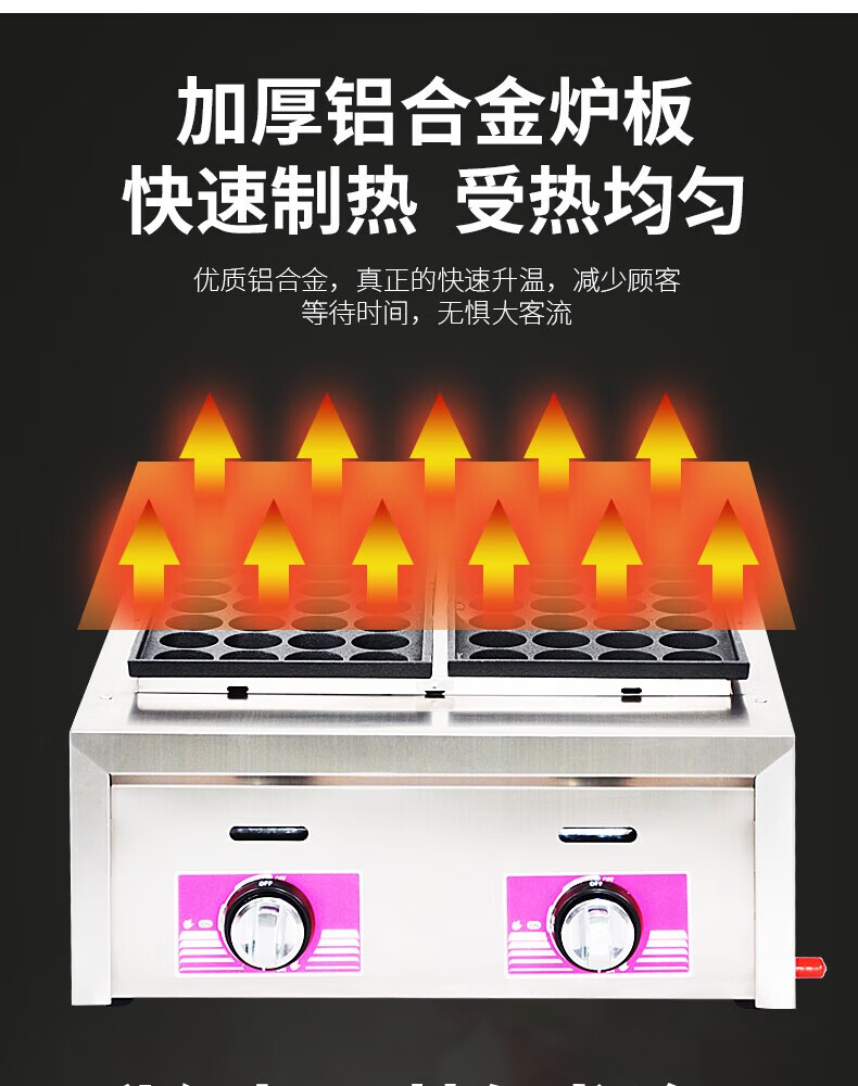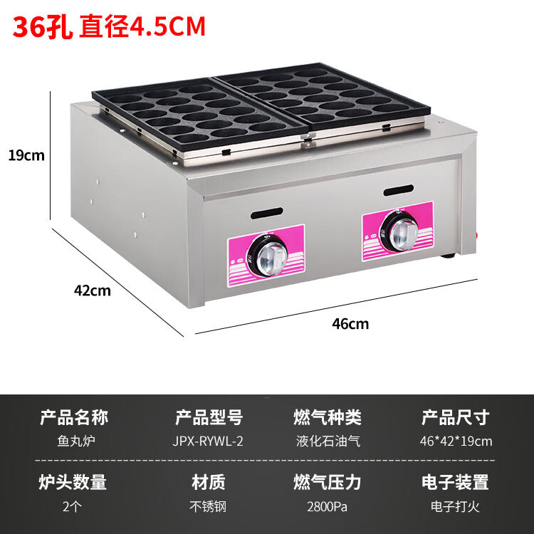 Jinpinxing (JPX) gas octopus pellet machine commercial stall 220V household appliances heating oyster egg fish ball stove natural gas octopus machine 28 holes 56 holes 18 holes 36 holes plug-in shrimp bullshit standard version 28 holes gas model normal holes thickened and durable