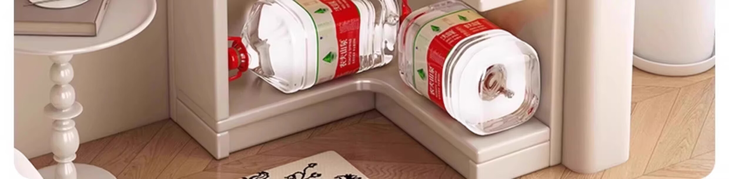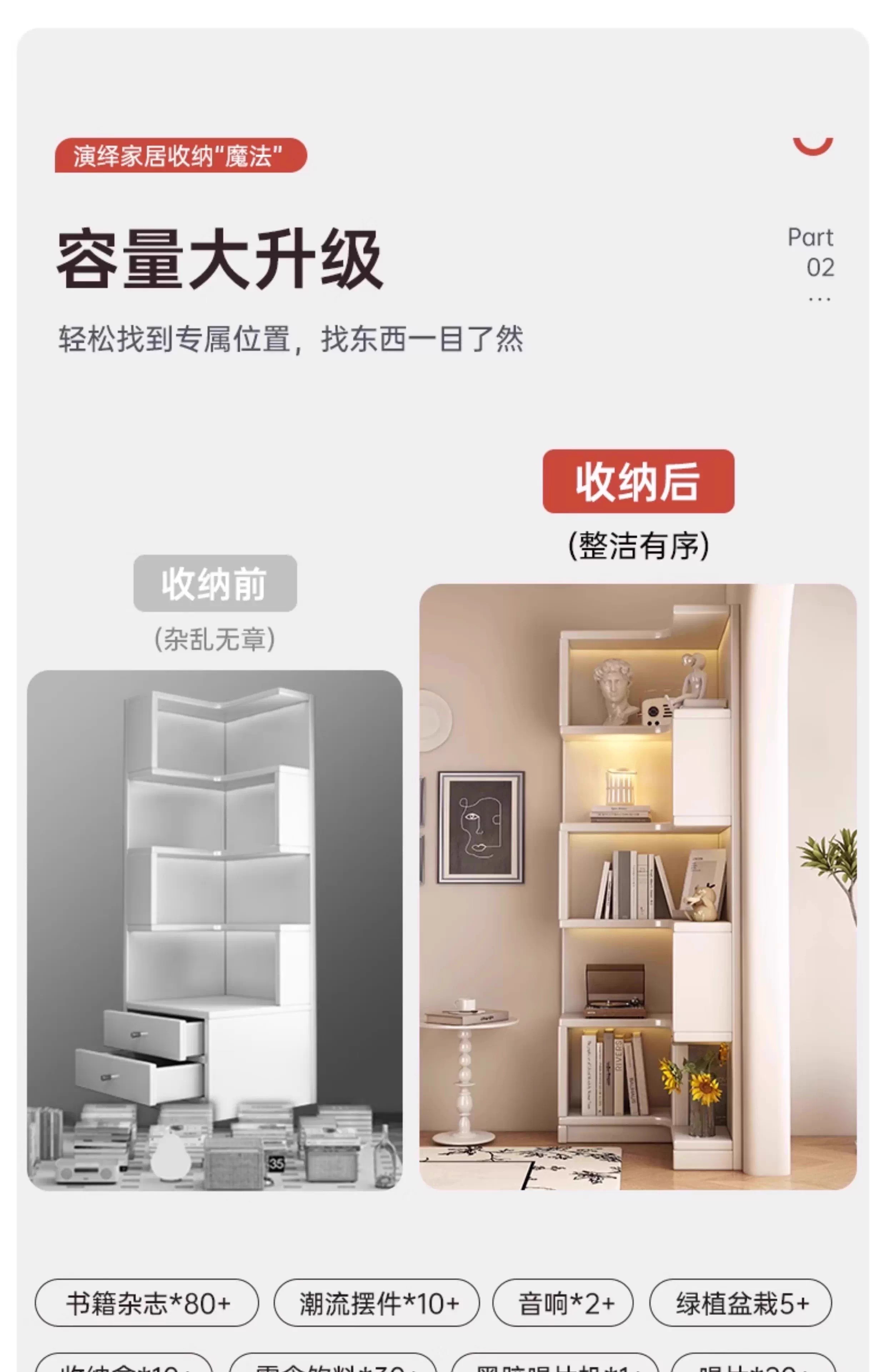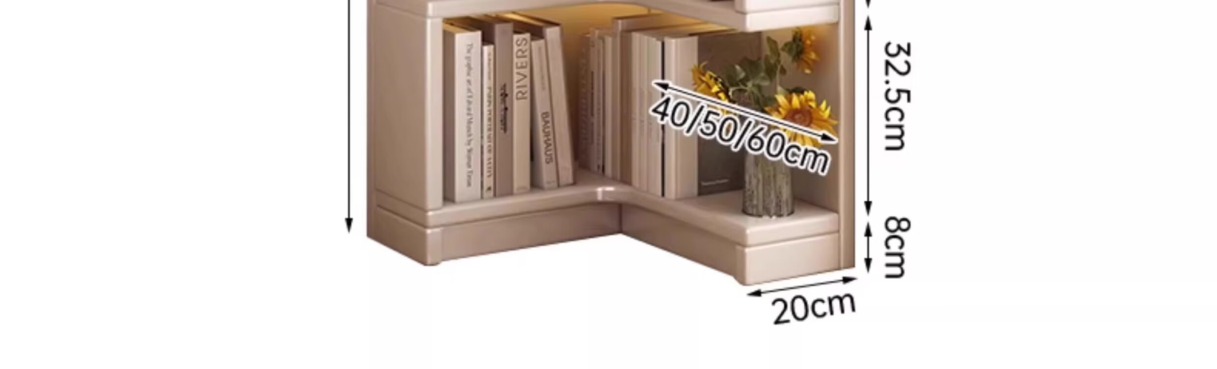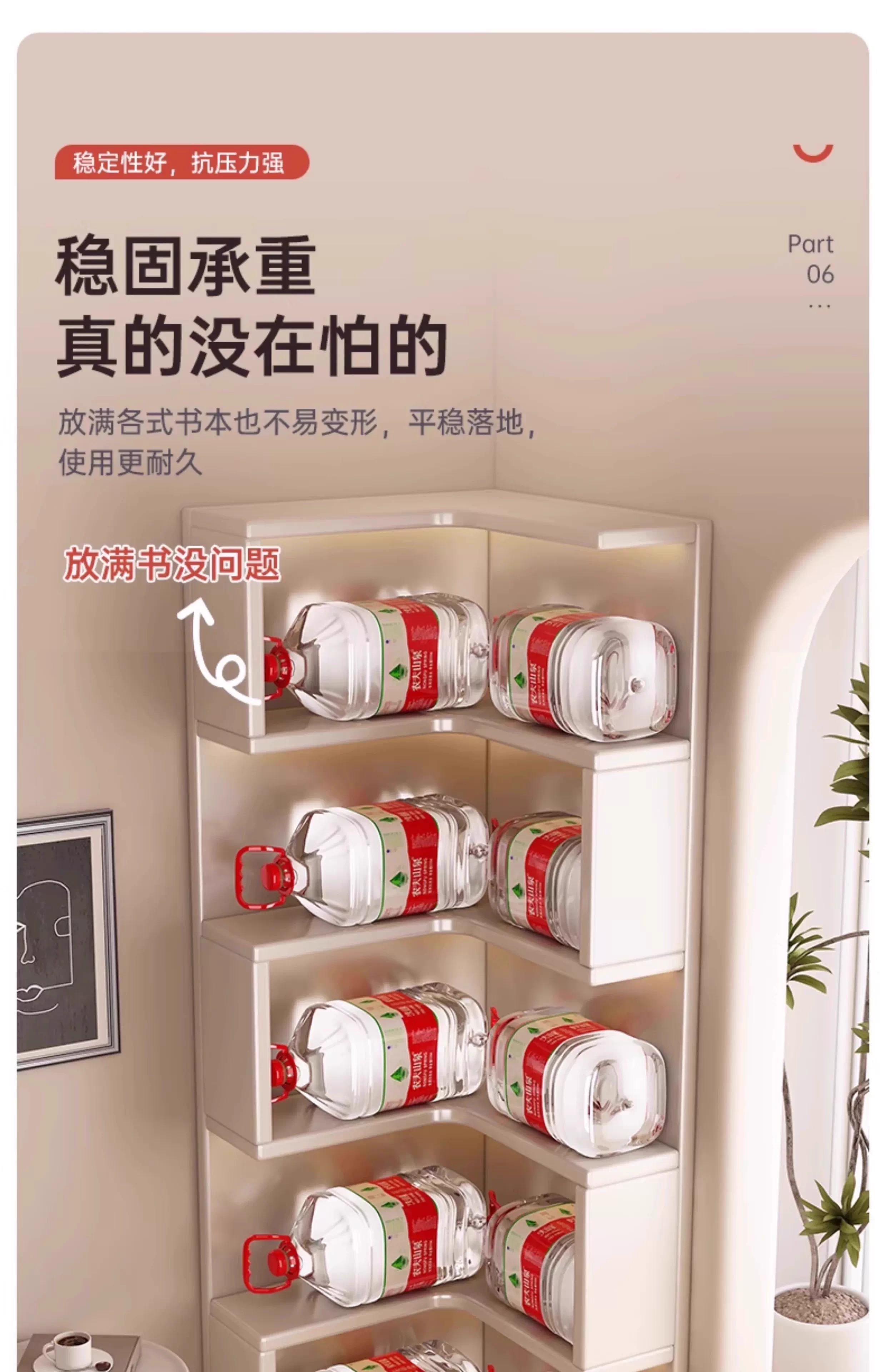 Solid wood corner cabinet corner storage rack home floor-standing children's corner bookcase living room 90-degree triangular storage cabinet solid wood core warm white 50CM double drawer
