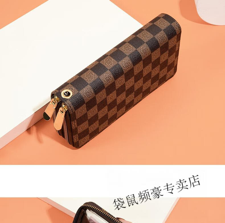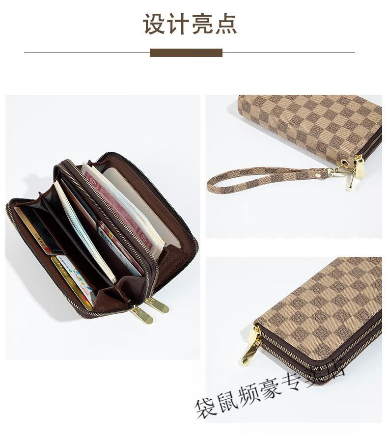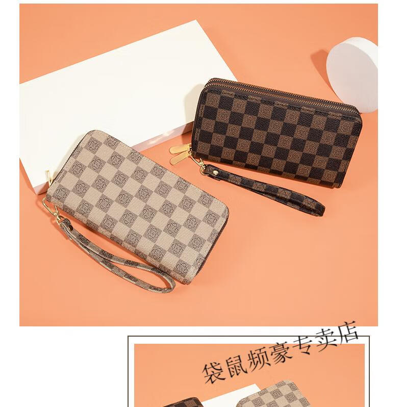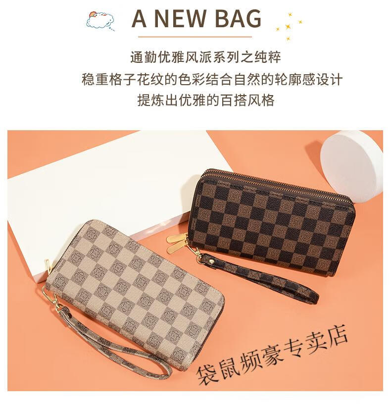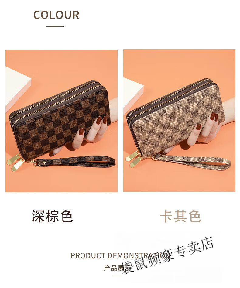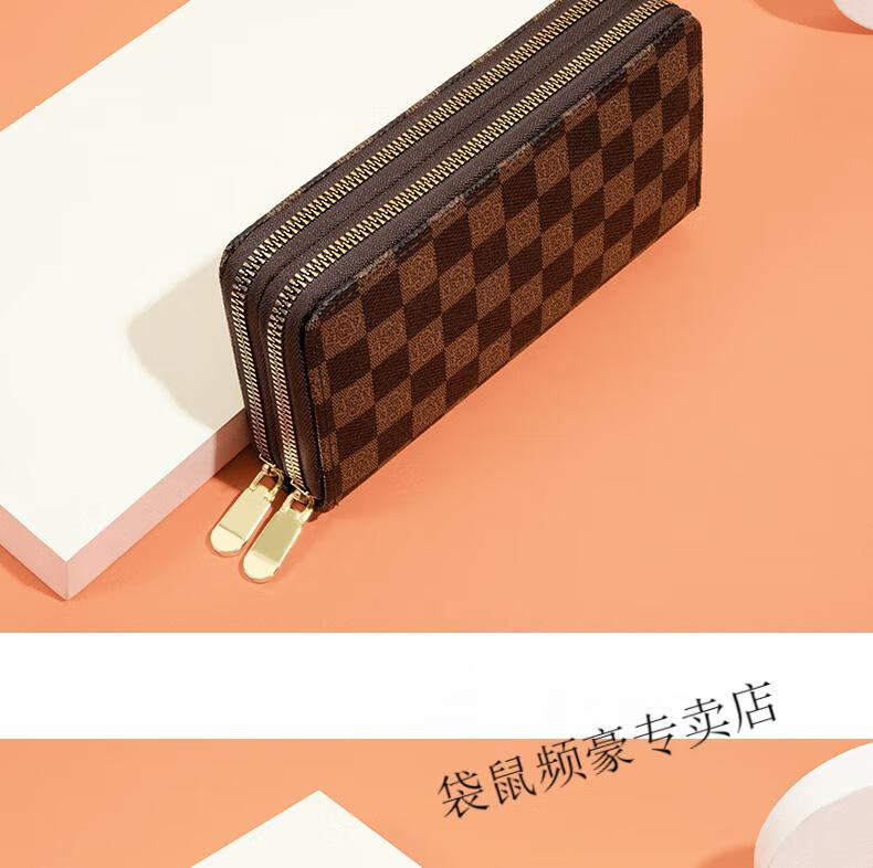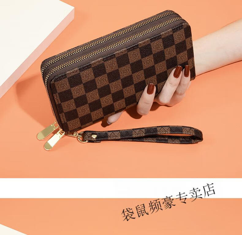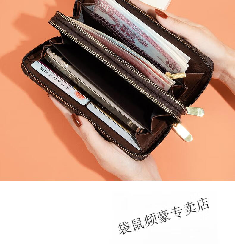 Kangaroo long wallet for women New Year's new pattern large capacity temperament double zipper clutch bag can hold mobile phone wallet dark brown color