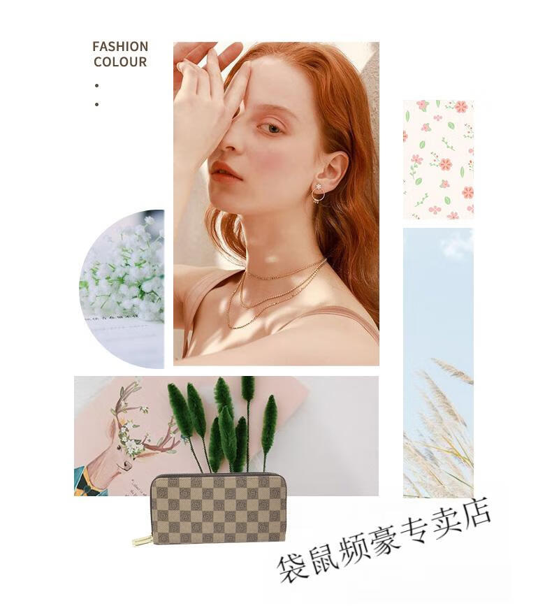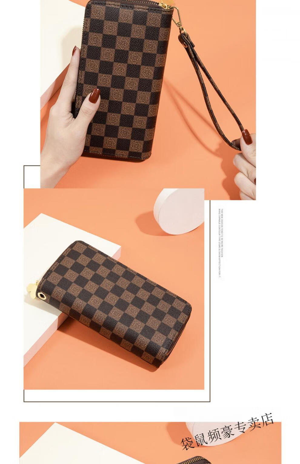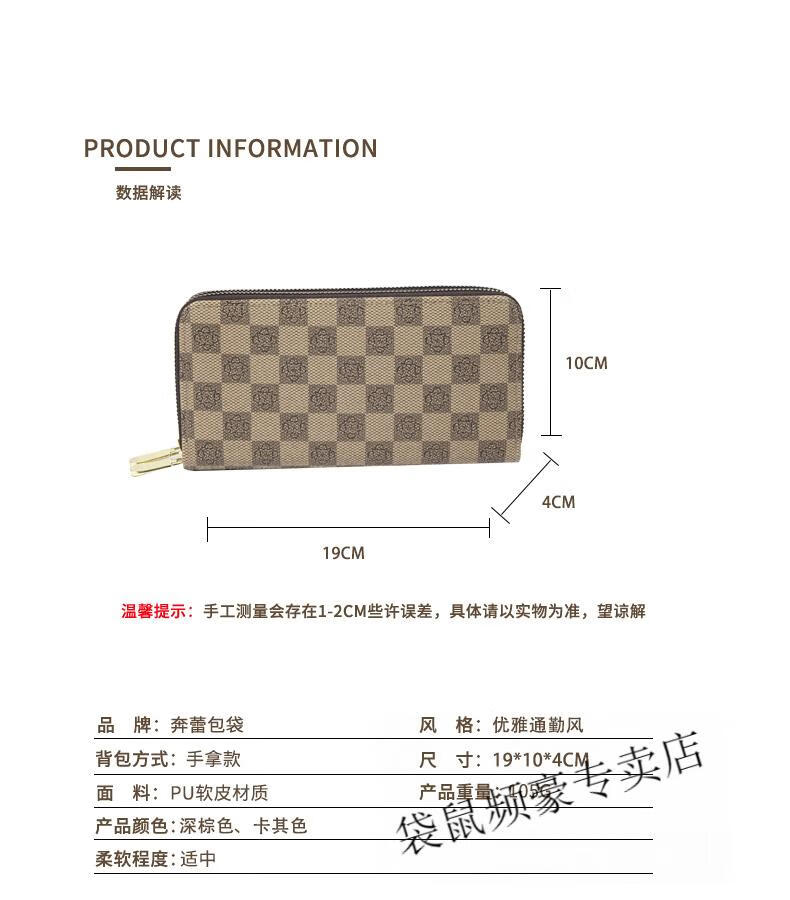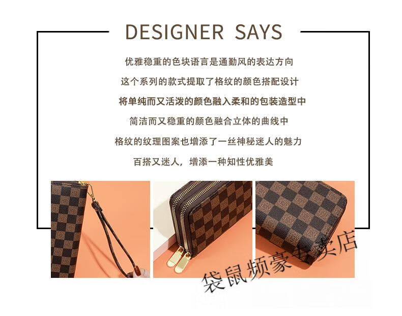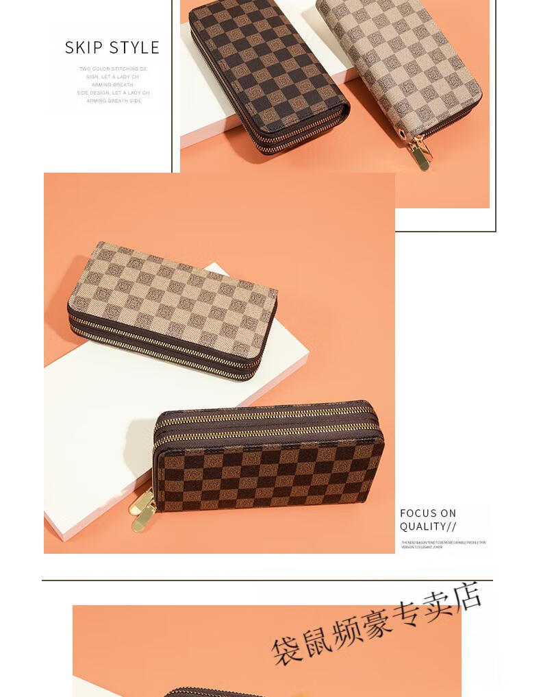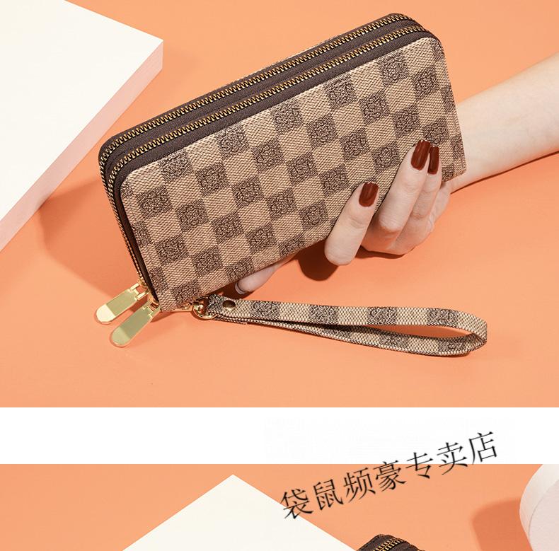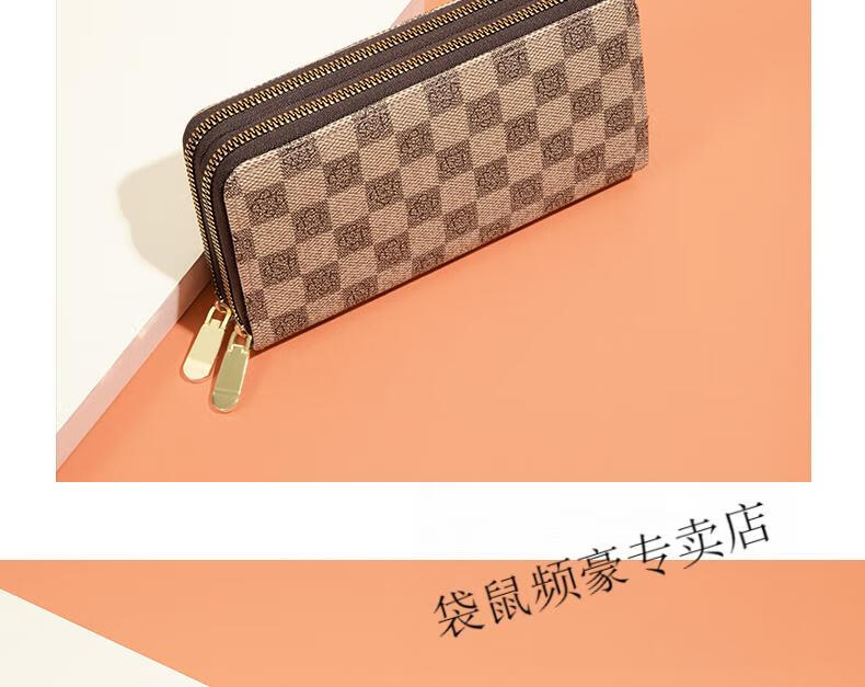Kangaroo long wallet for women New Year's new pattern large capacity temperament double zipper clutch bag can hold mobile phone wallet dark brown color