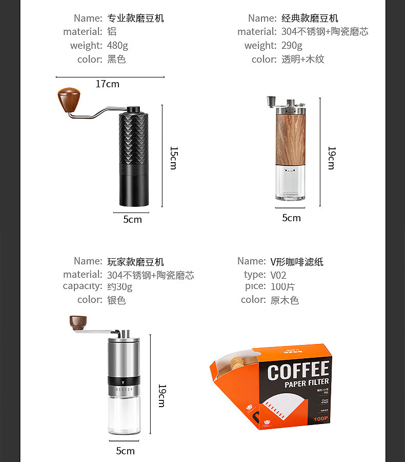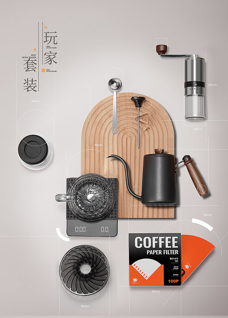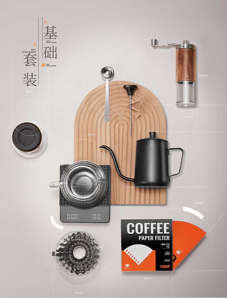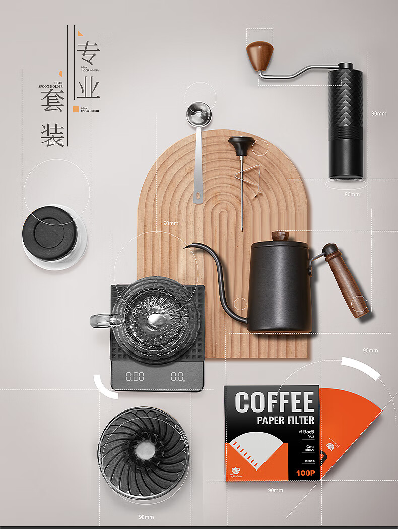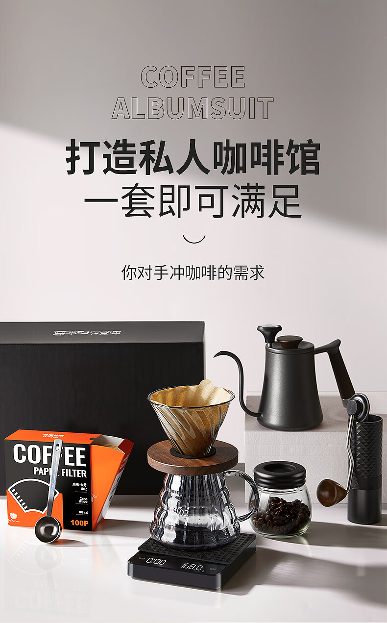 Bao hand-brewed coffee set hand-cranked grinder complete gift box coffee equipment hand-brewed pot equipment hand-brewed coffee classic set eight-piece set