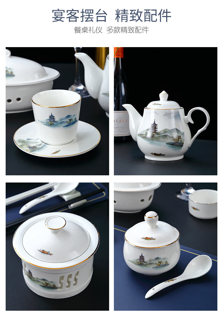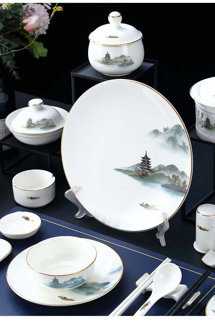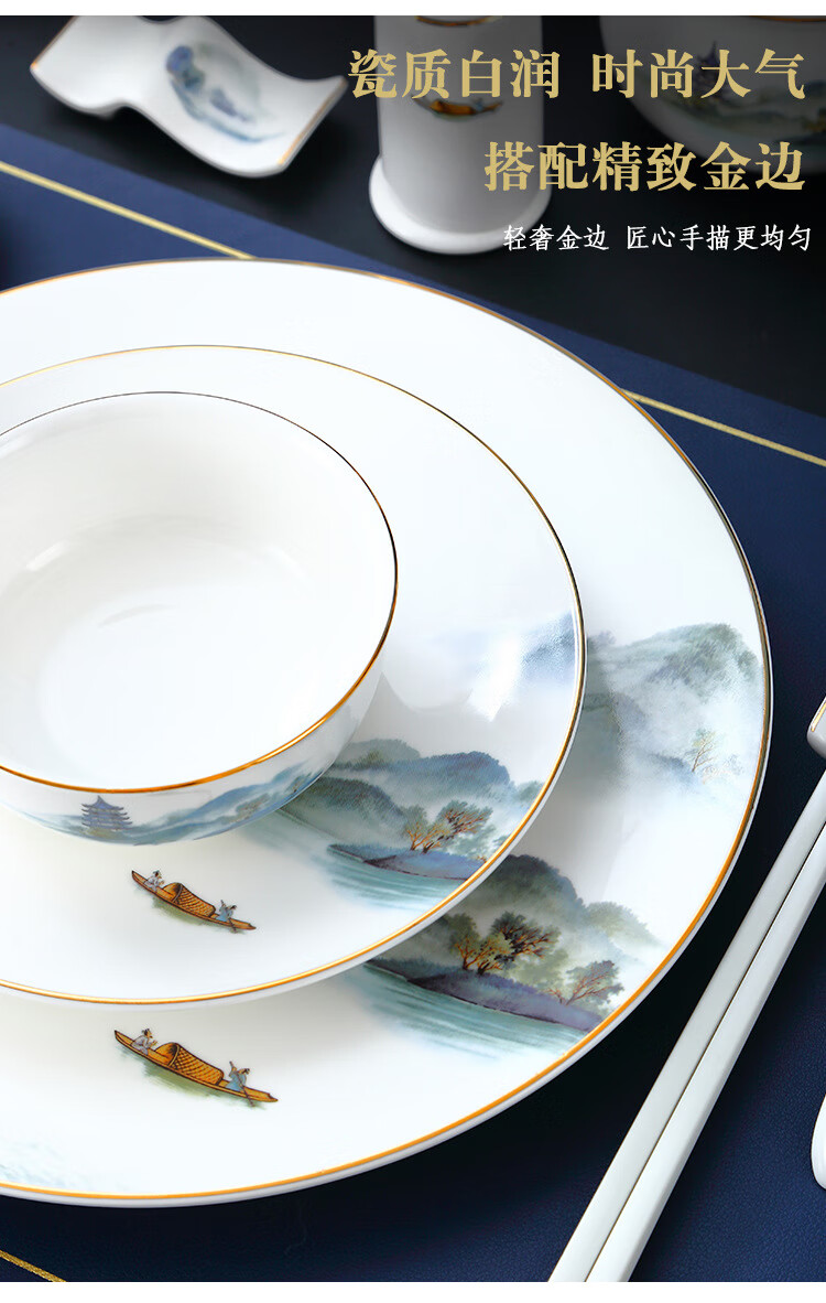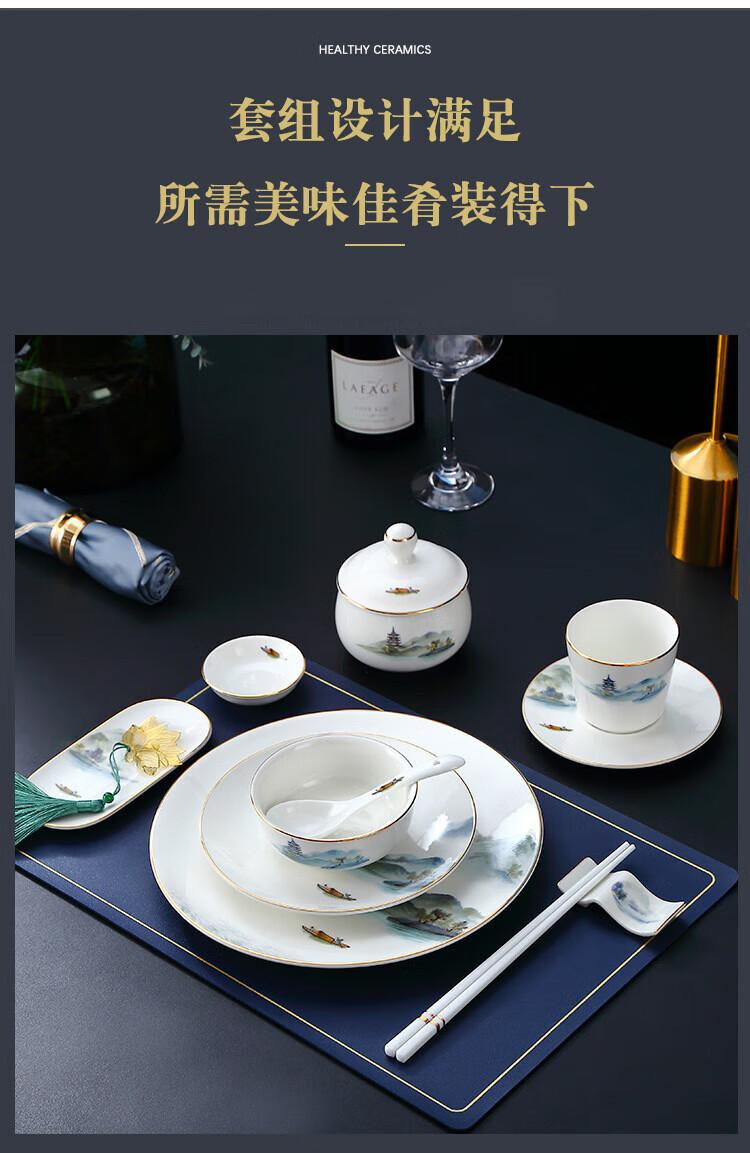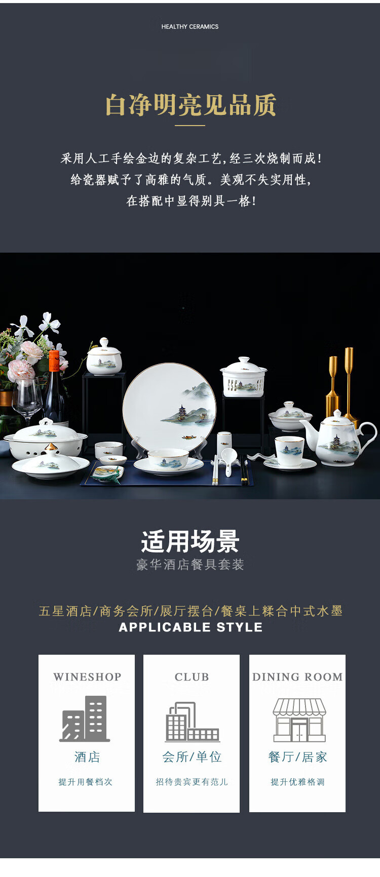 Youmingrui Chinese hotel tableware set, ceramic gold edge five-piece set, hotel eight-piece set, custom logo printing, Tashan Huiying large eight-piece set