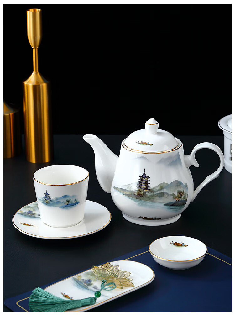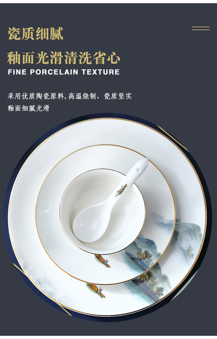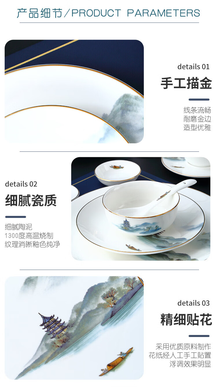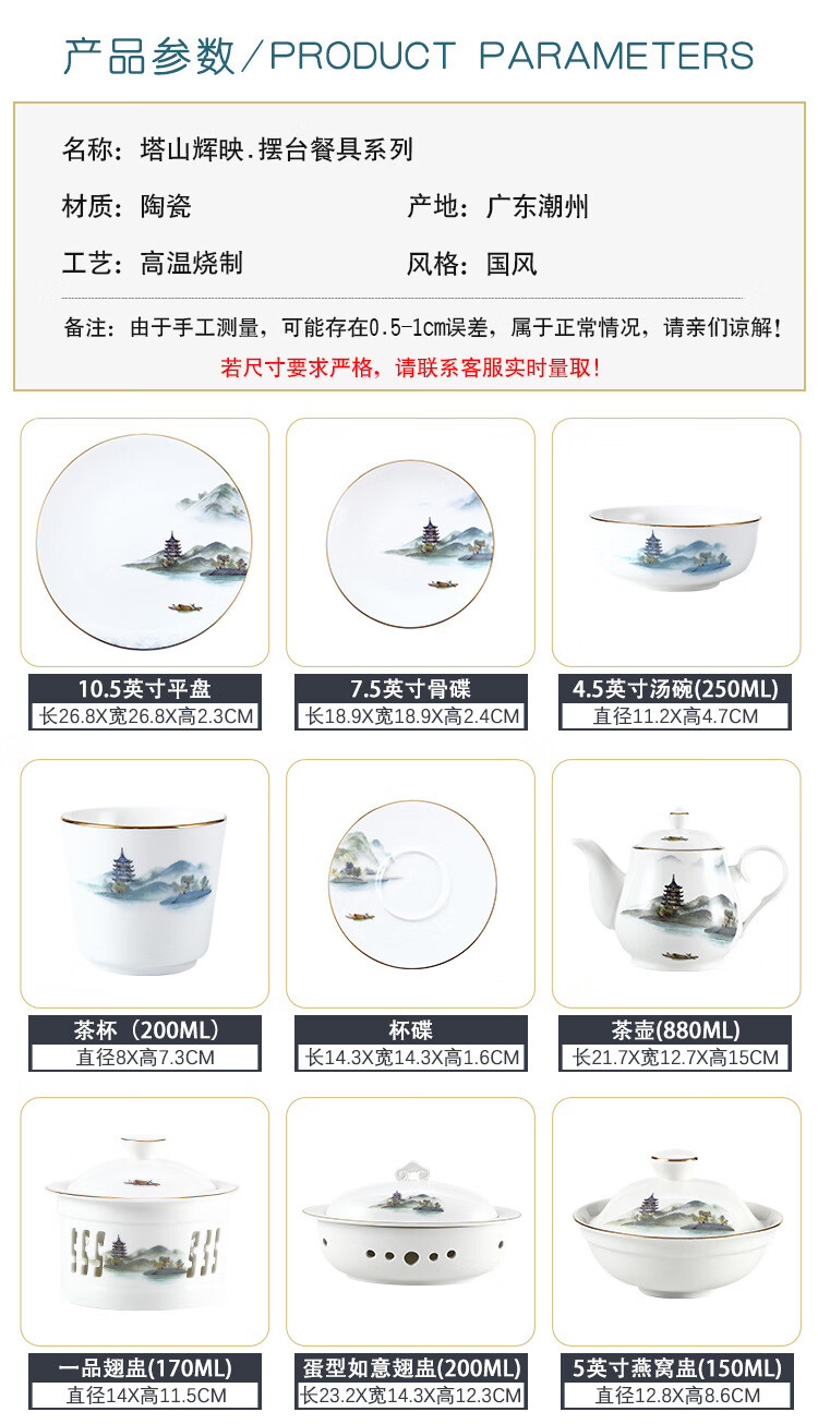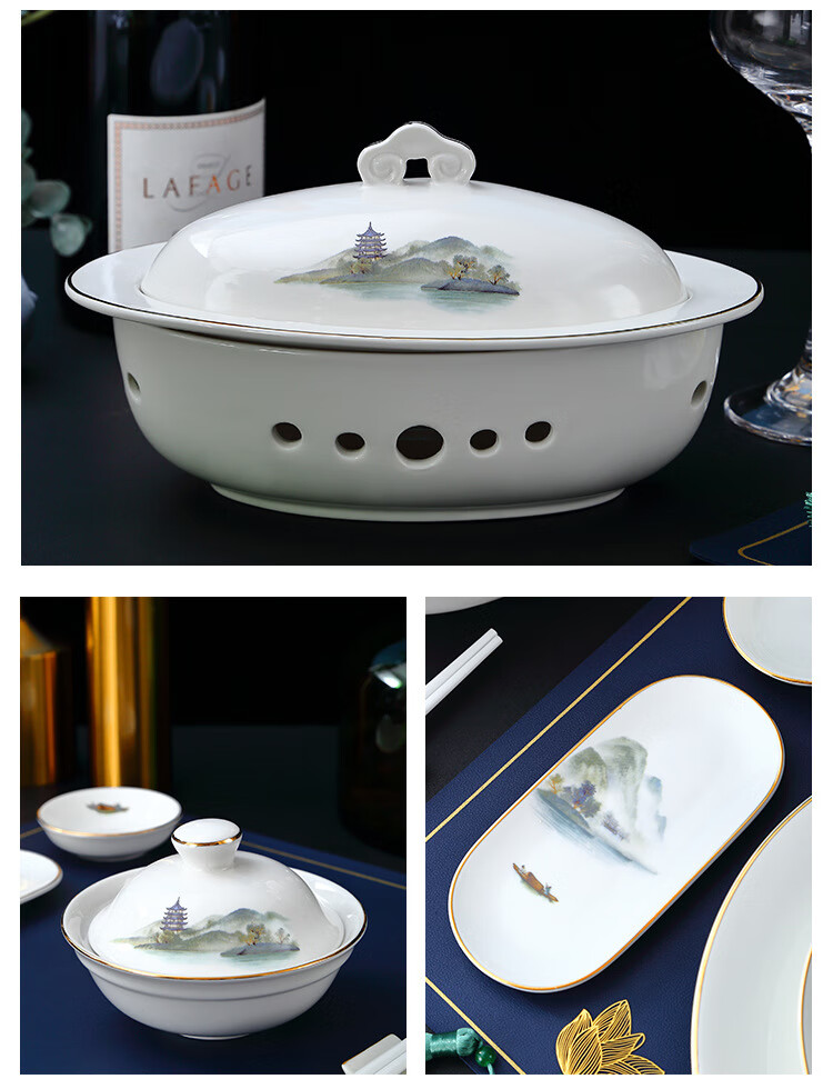 Youmingrui Chinese hotel tableware set, ceramic gold edge five-piece set, hotel eight-piece set, custom logo printing, Tashan Huiying large eight-piece set