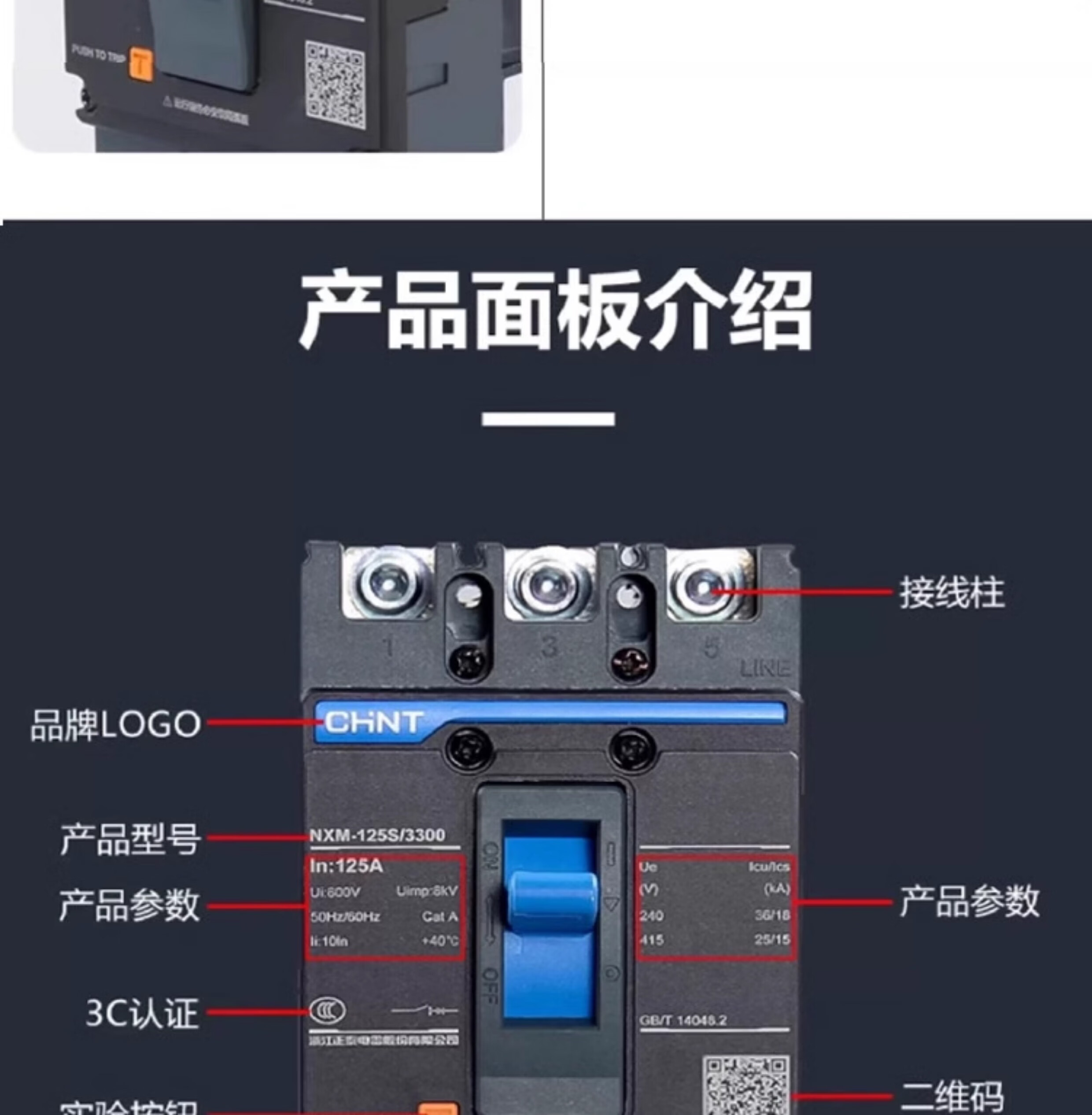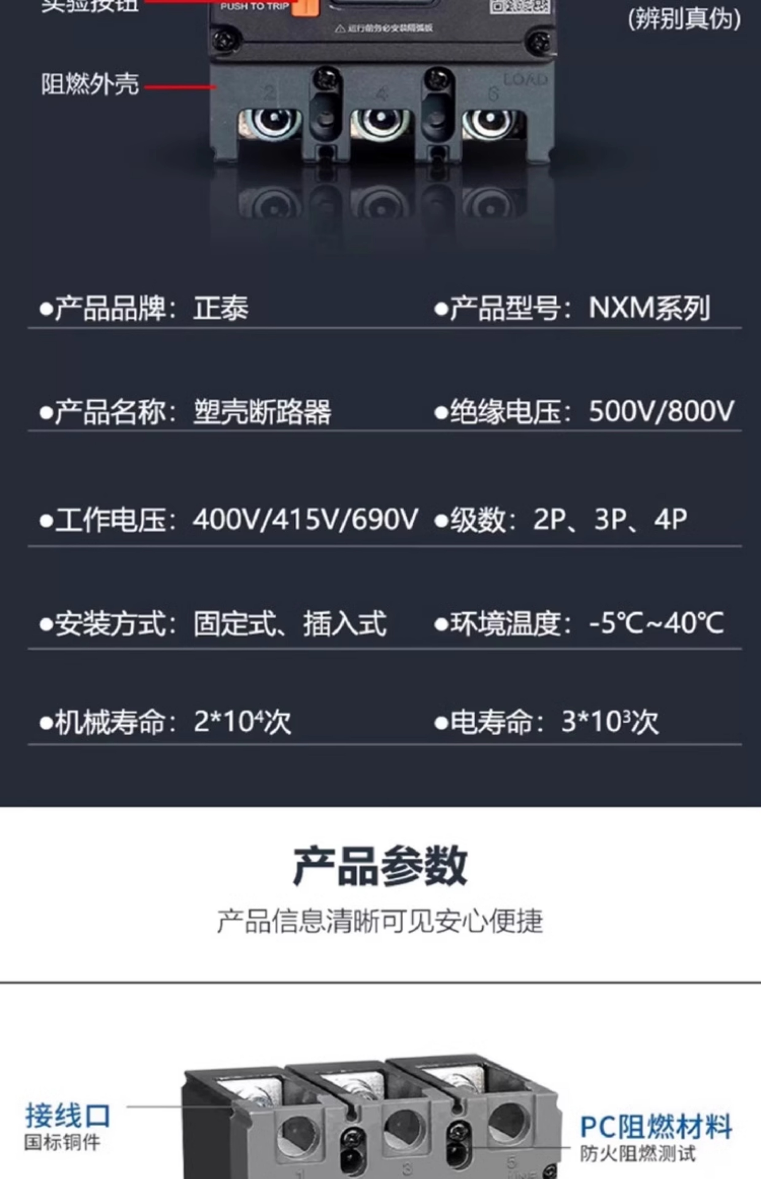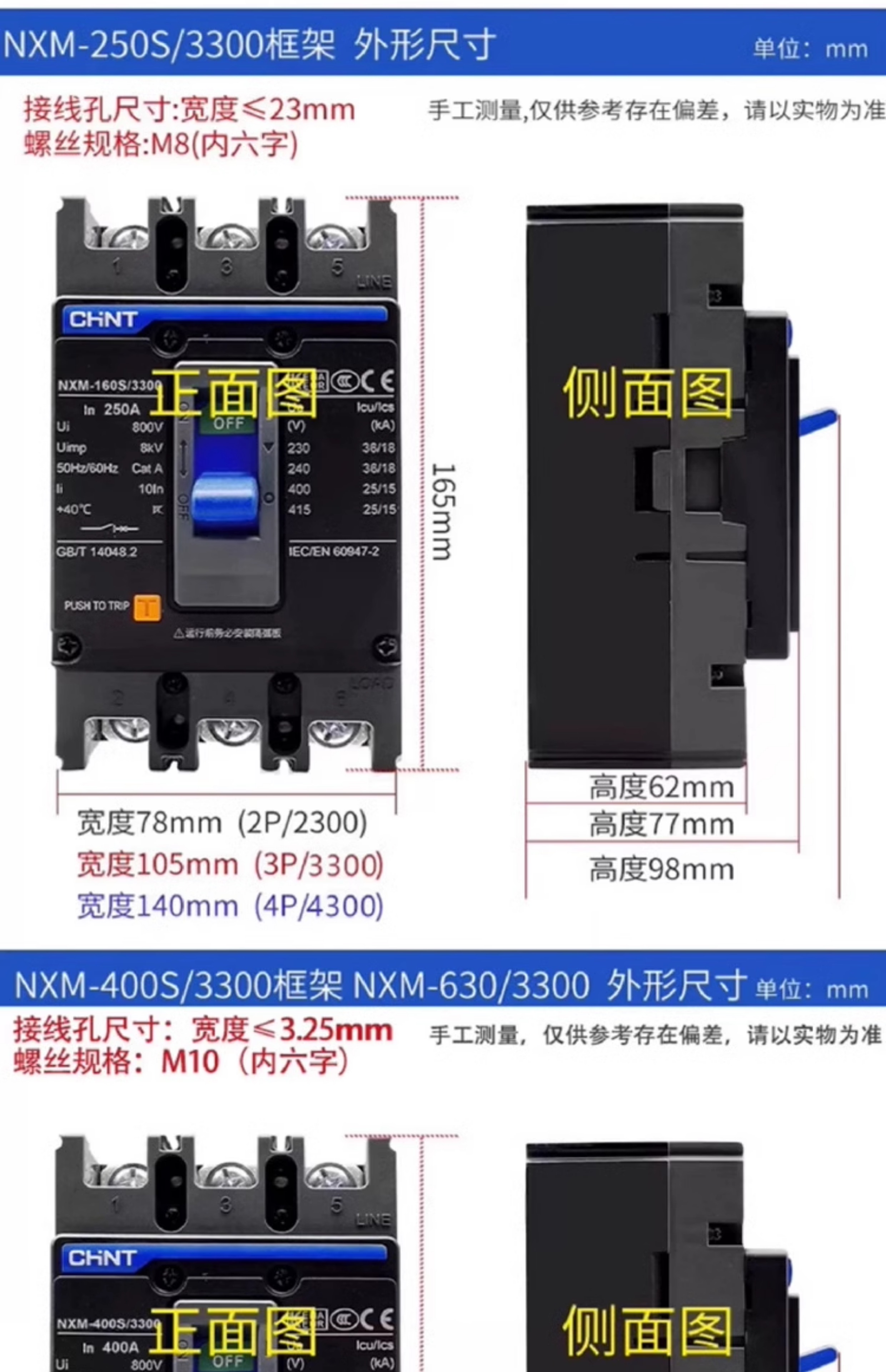 SF Express Chint plastic case circuit breaker NXM air on 1 off overload short circuit protection 125A/250A/400A/three-phase four 125A 3P