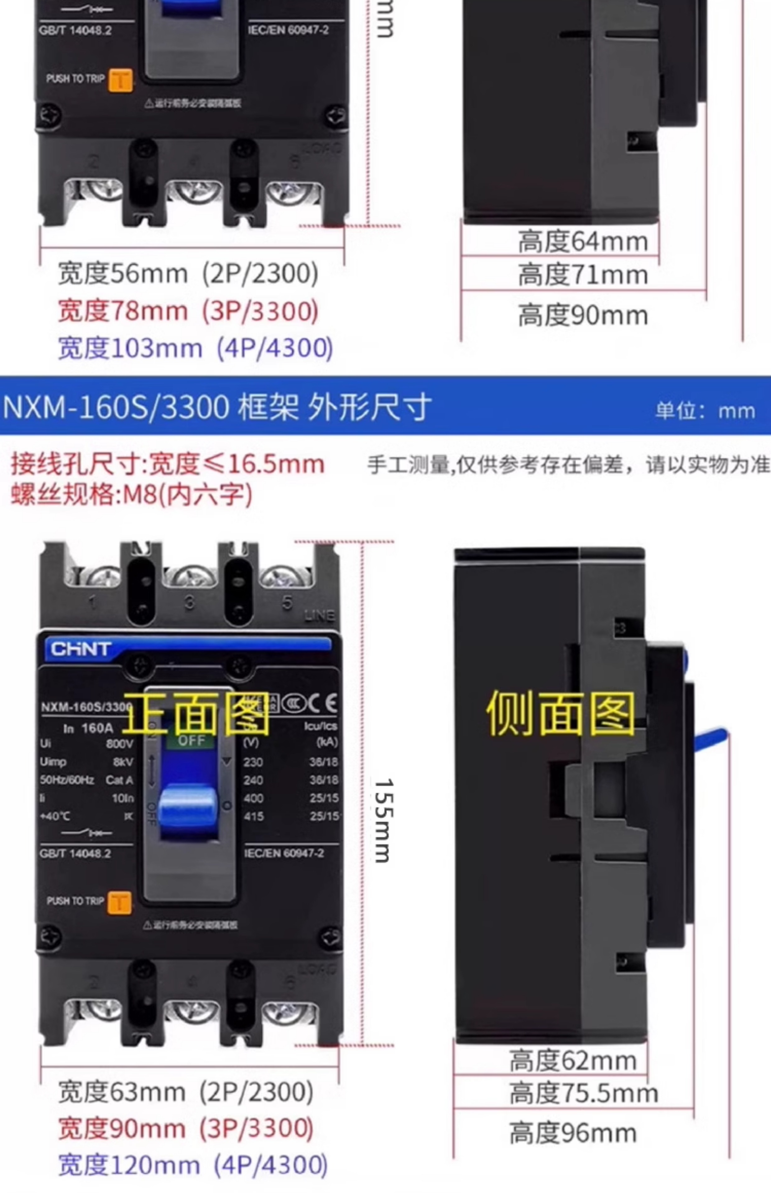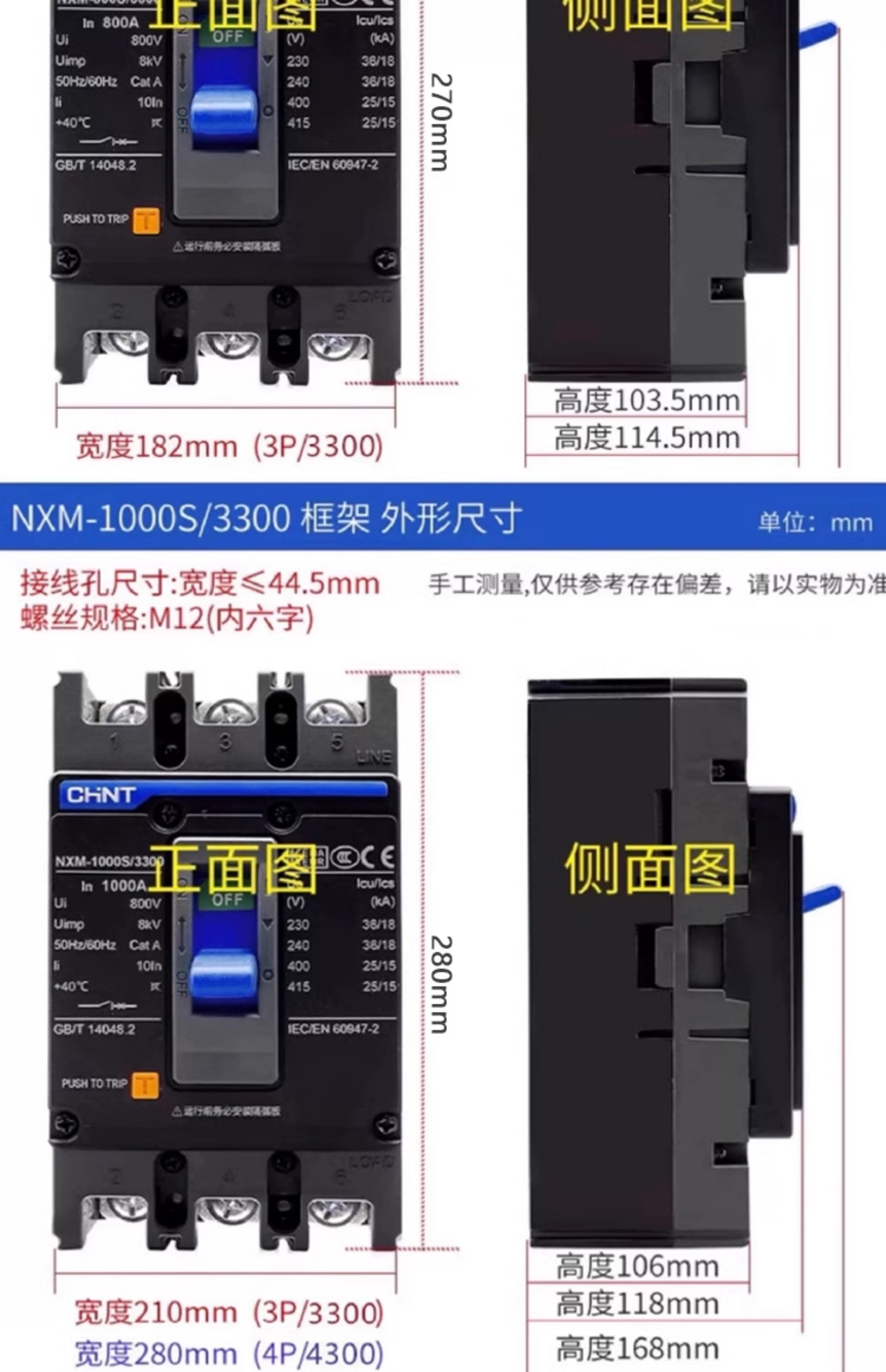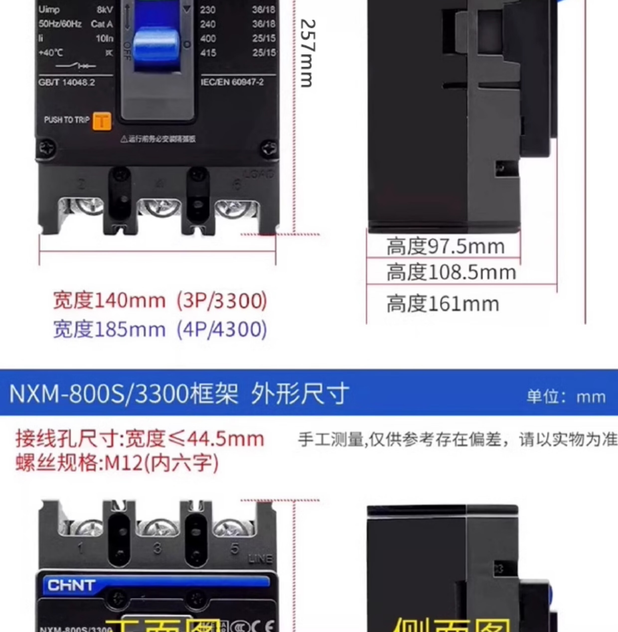 SF Express Chint plastic case circuit breaker NXM air on 1 off overload short circuit protection 125A/250A/400A/three-phase four 125A 3P