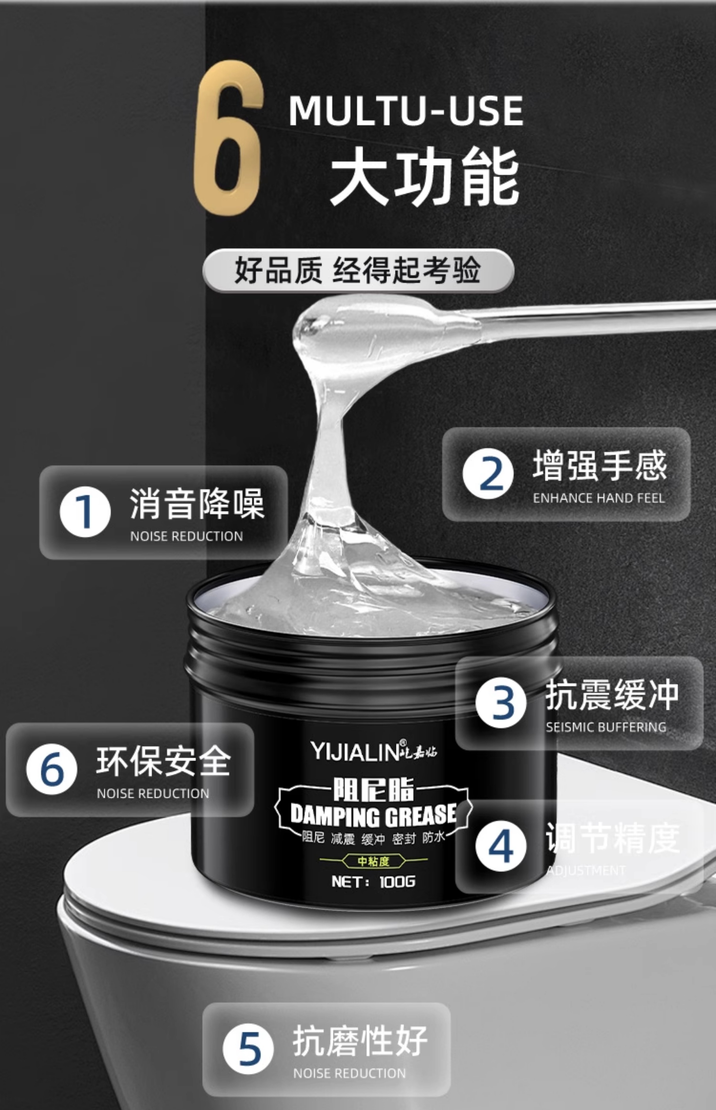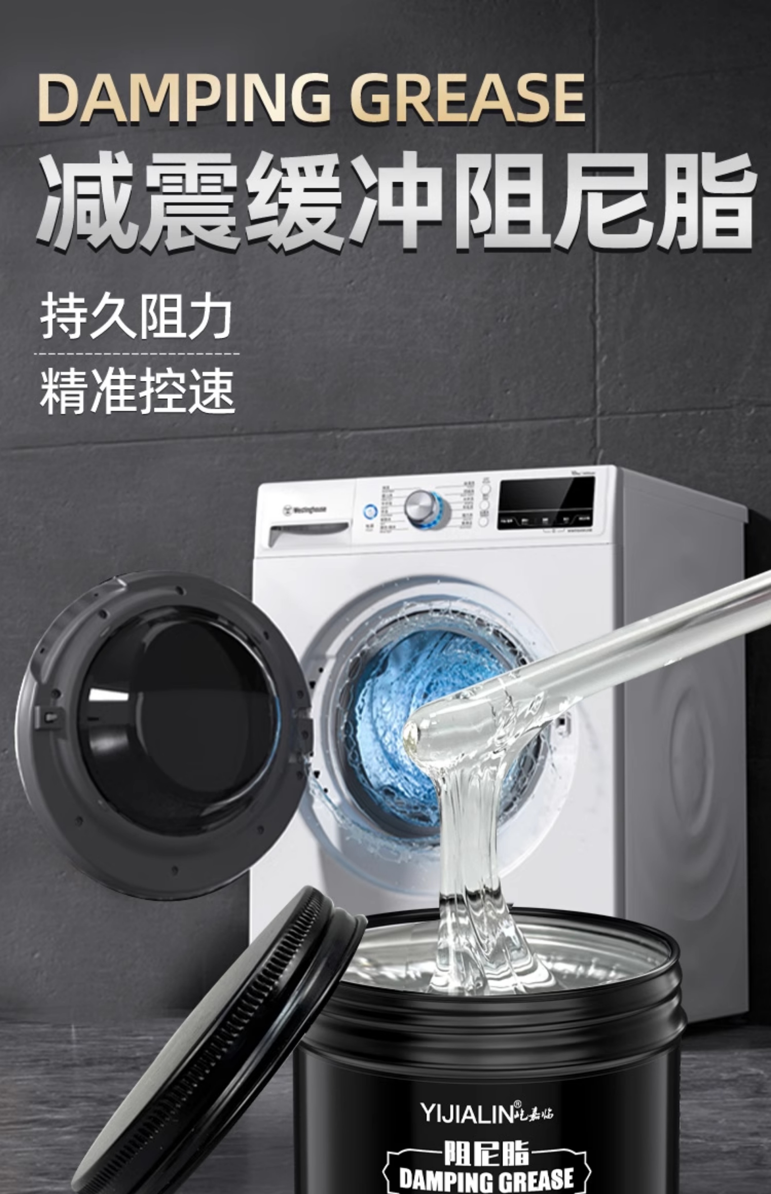 Special damping grease oil glue paste for drum washing machine shock absorption boom cover slow-down door lock water drop wheel high viscosity Yijialin-damping grease 100g-medium viscosity*1 box (free