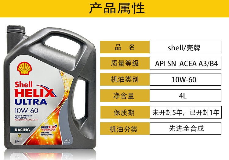 Shell Extraordinary Helix 10W60 gray shell SN full engine oil Hong Kong imported car engine lubricant 4L imported gray shell 10w-60 4L