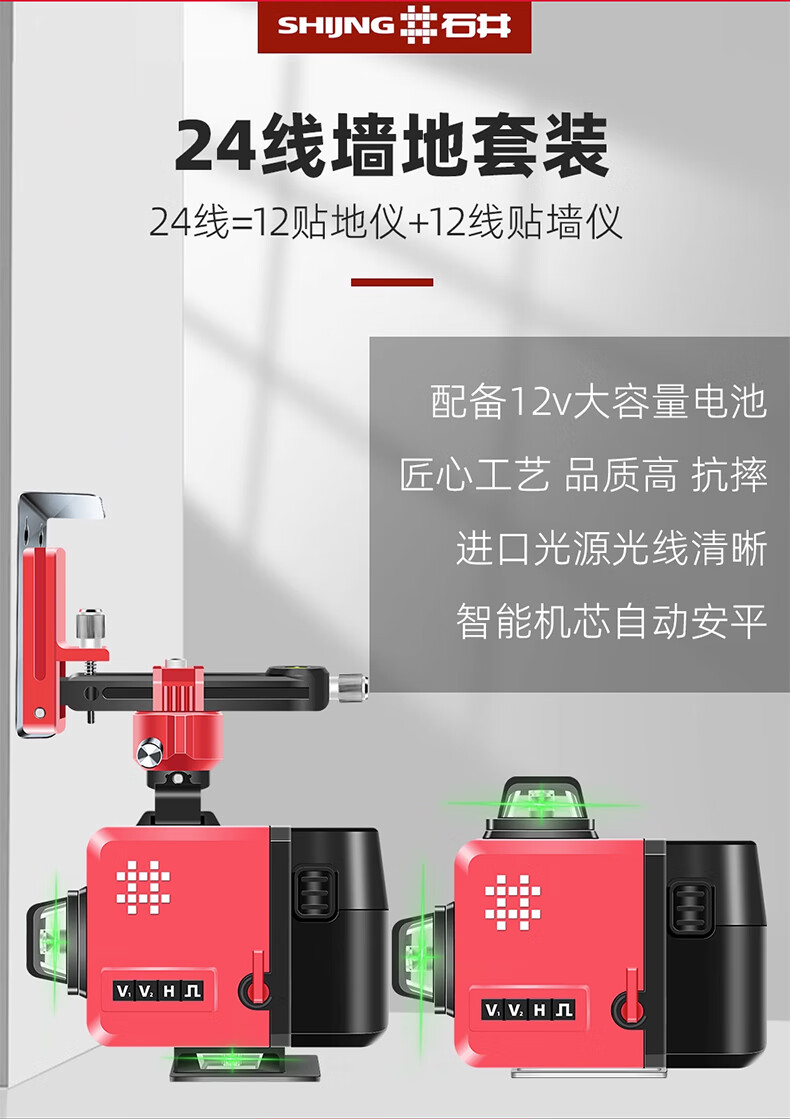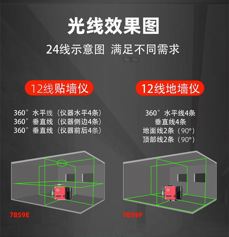 BEYZK high-precision green light 12-line laser level automatic leveling instrument new 12-line wall mounter 7859E comes standard with horizontal line in