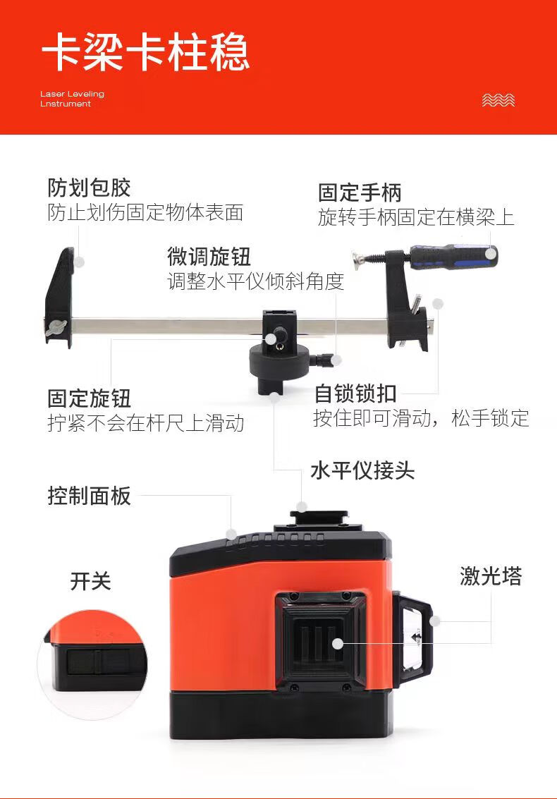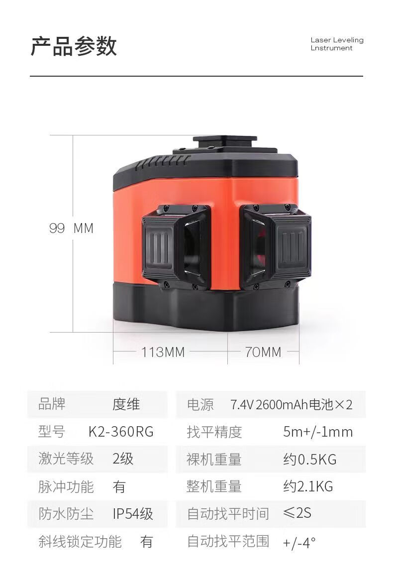 BEYZK level meter 8-line red light ultra-bright high-precision automatic leveling wall instrument 8-line 120 mW red light 2 batteries