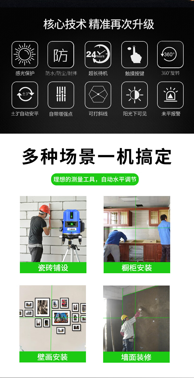 BEYZK level high-precision strong light green light automatic wiring 235-line ray meter high-precision LD green light 2-line single electric + tripod