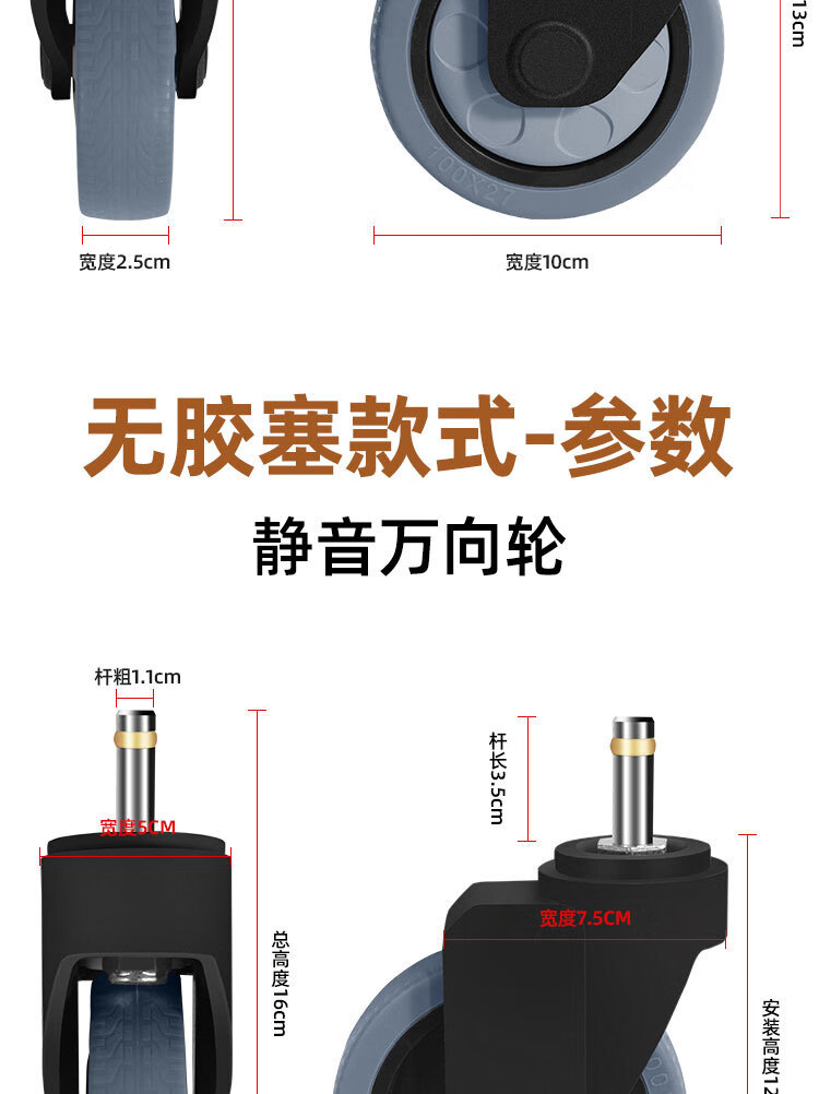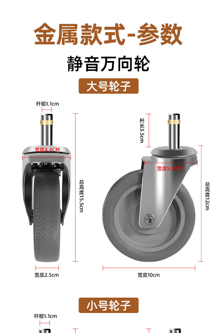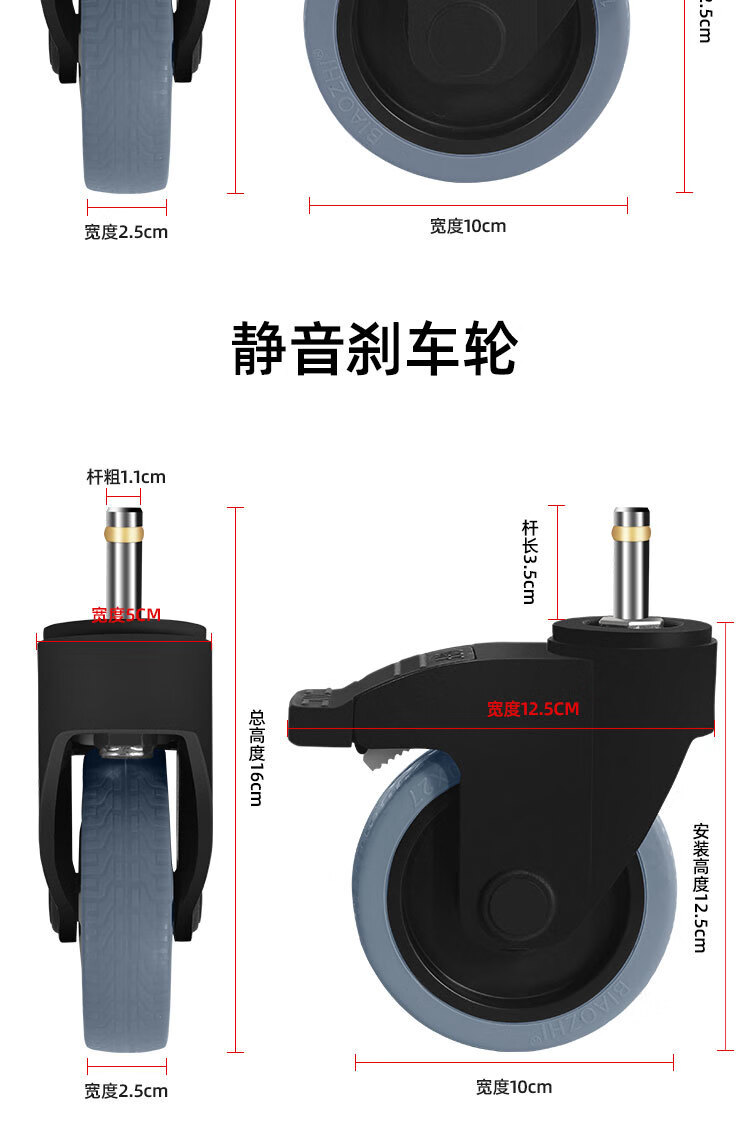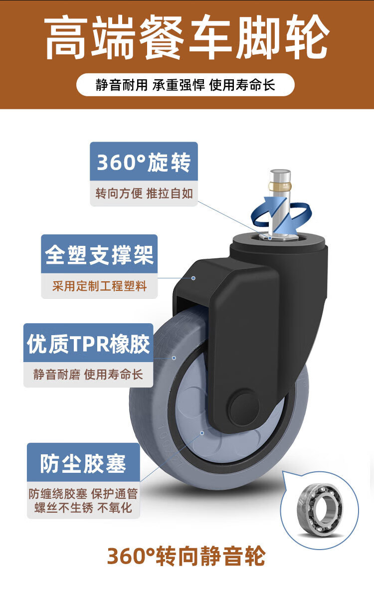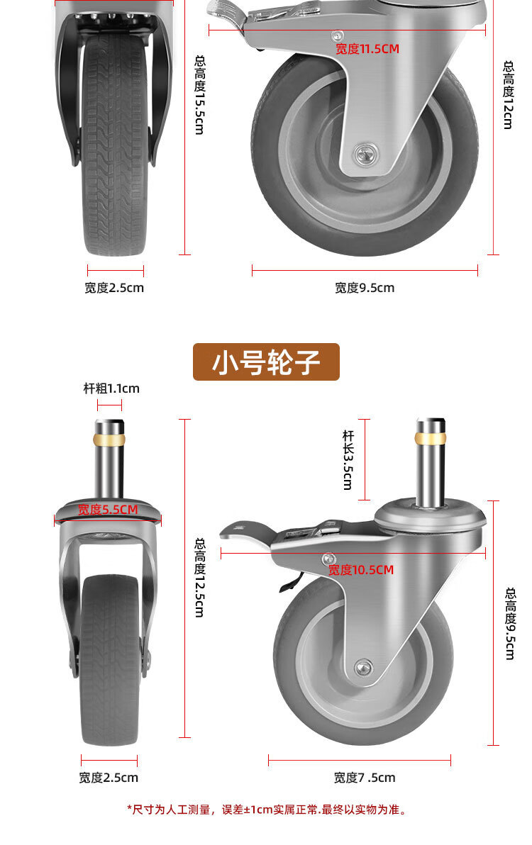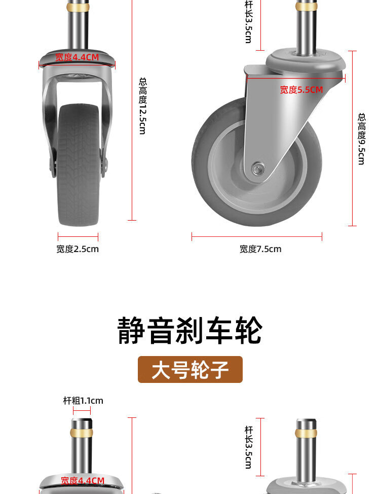 Vinoa dining cart wheel 4-inch caster universal hotel rubber wheel cart linen cart bowl collection wheel universal wheel 3-inch wheel standard (1 pack)