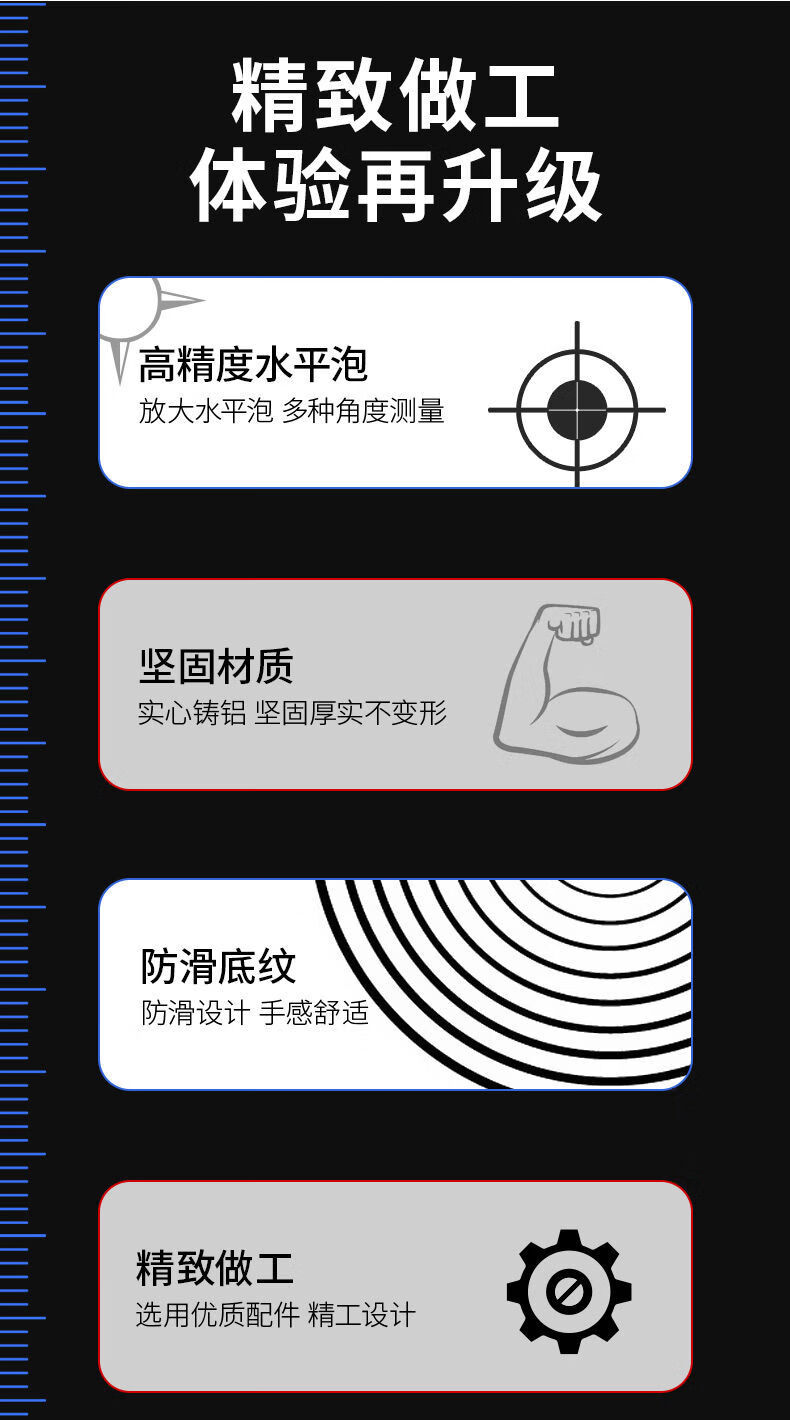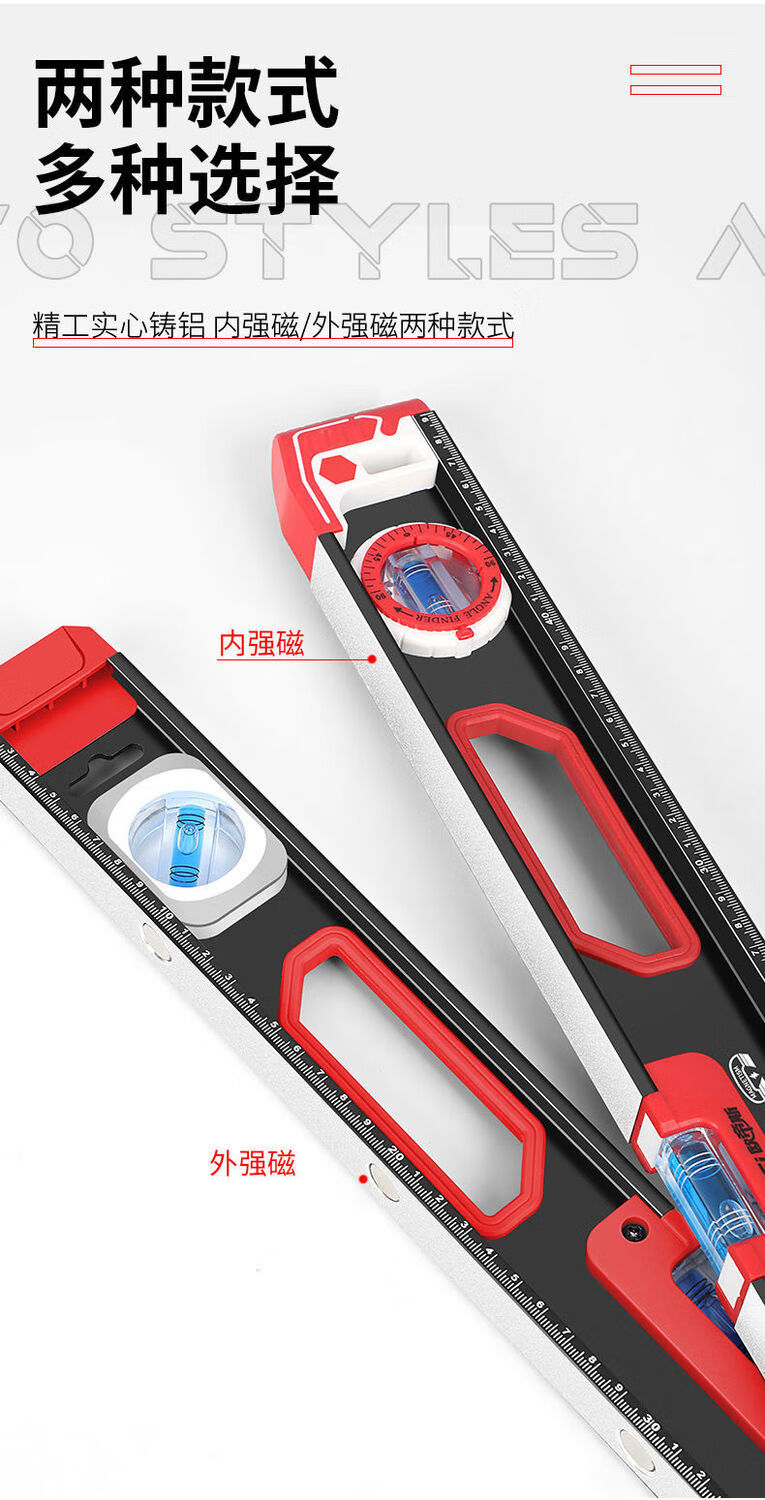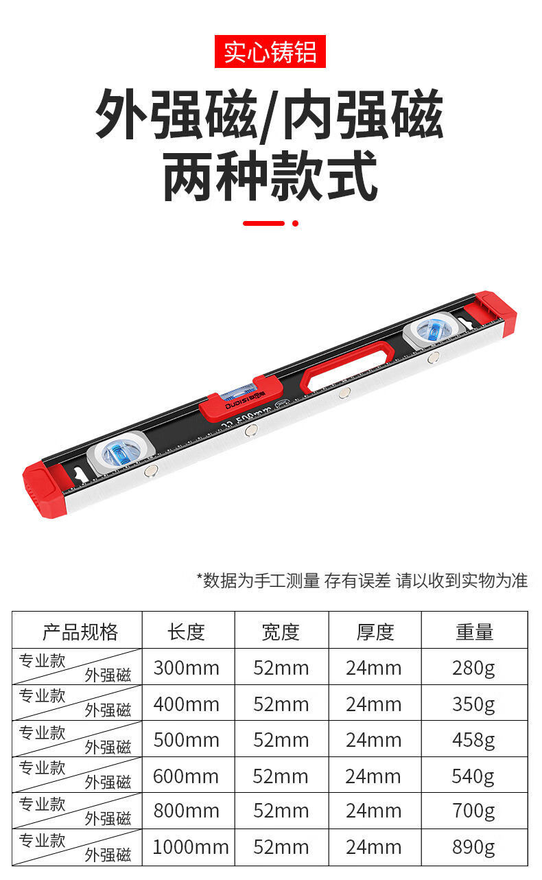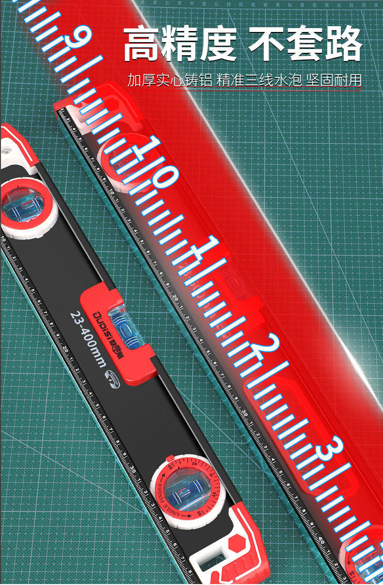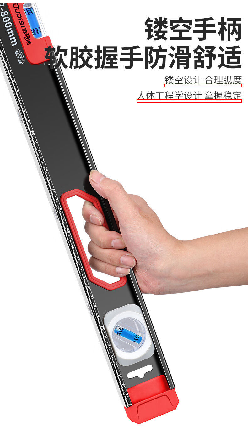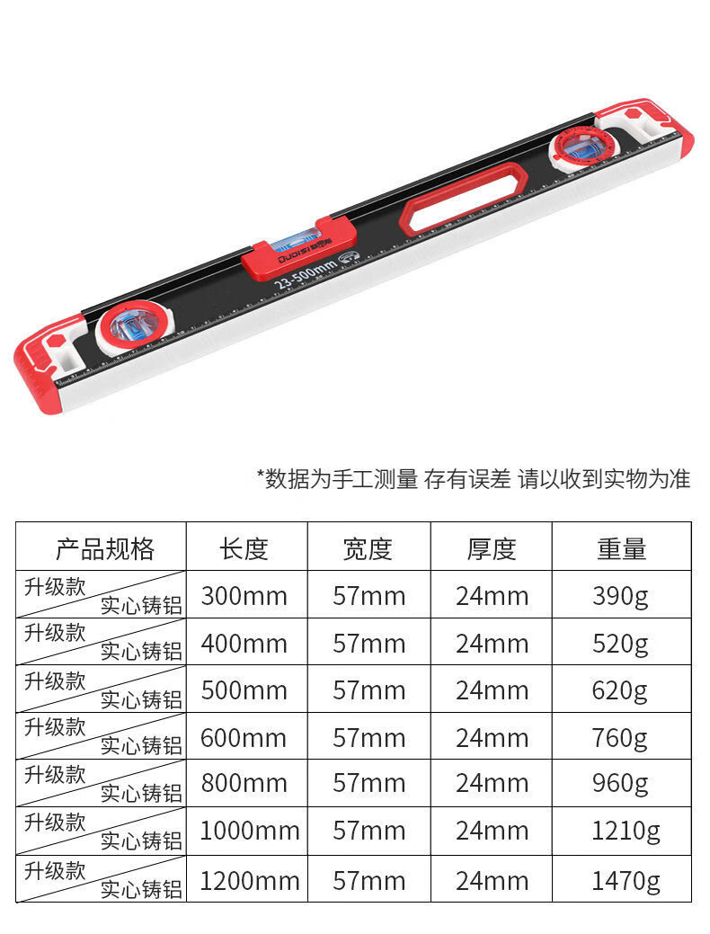 Vinoa level high-precision strong magnetic horizontal water level ruler household ruler small aluminum alloy solid anti-fall balancer tool Black Warrior strong magnetic 800MM (solid cast aluminum)