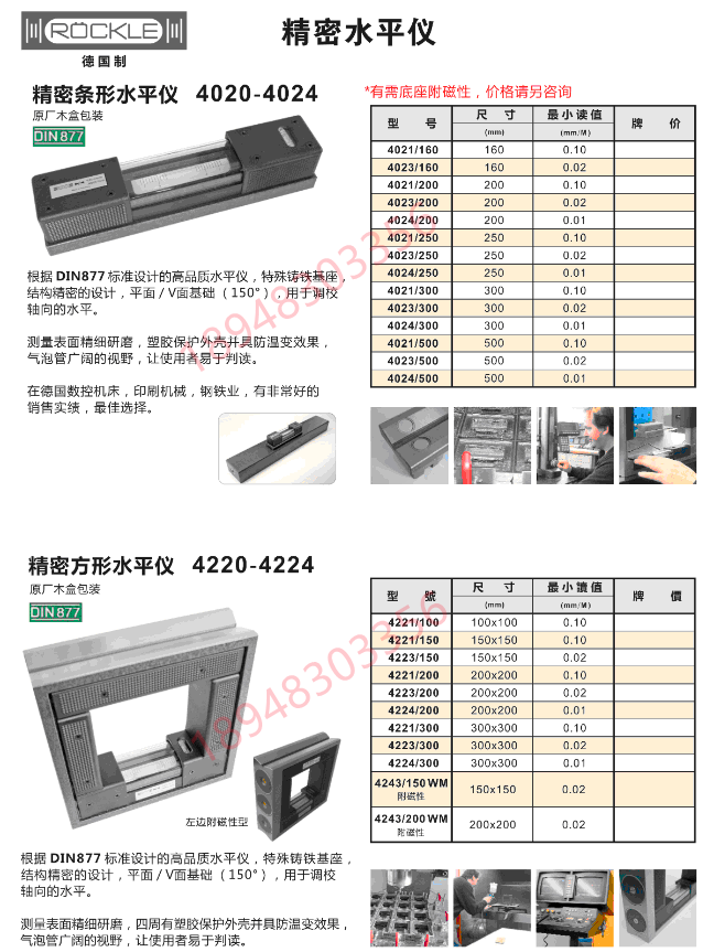 German ROCKLE spirit level 4024/250 4024/300 4024/500 4024_200
