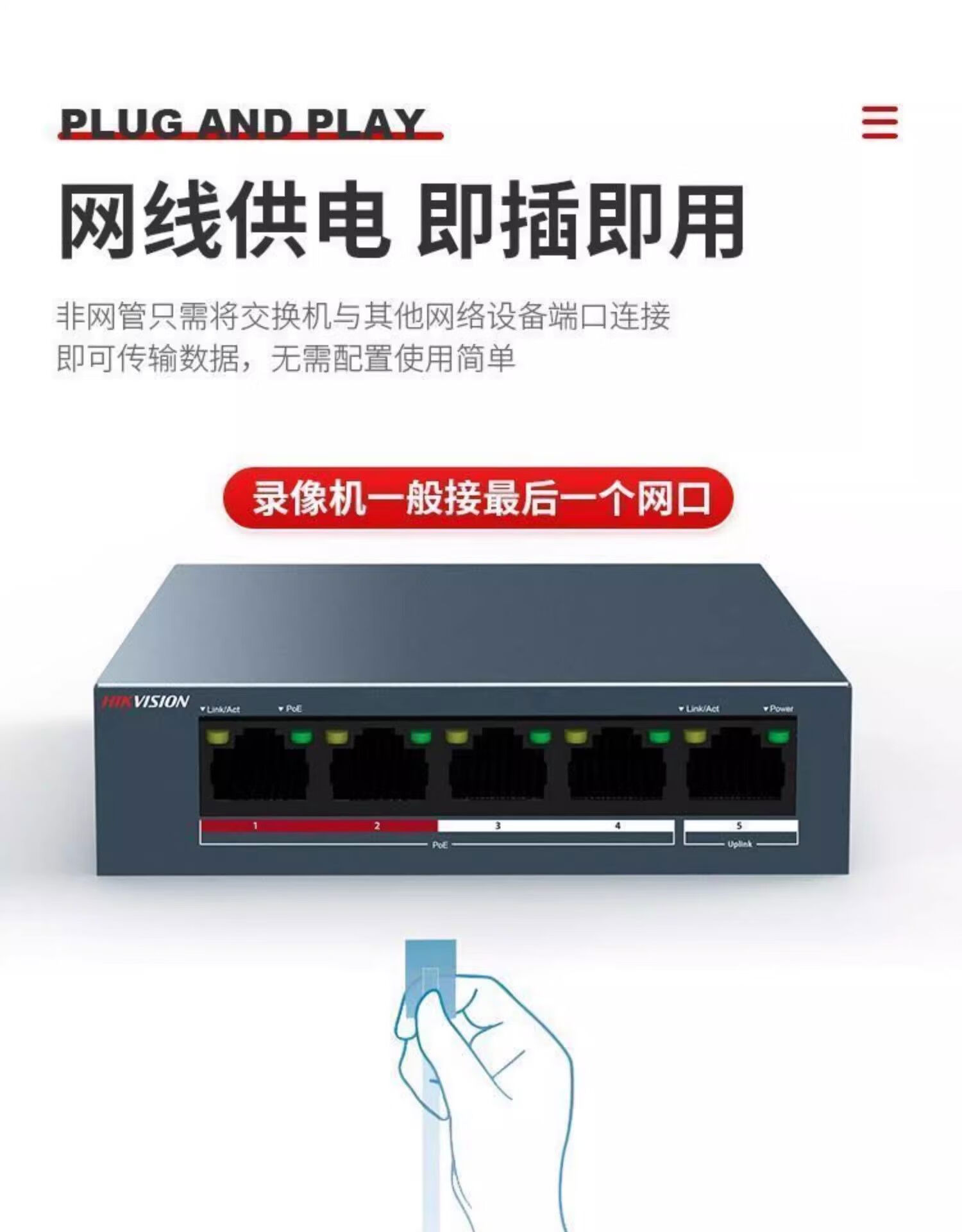 Hikvision (HIKVISION) Hikvision monitoring POE power supply 100M 4282 national standard 48V network cable power supply switch DSXS10P HIKVISION POE repeater 1 to 2 DSXS03PR