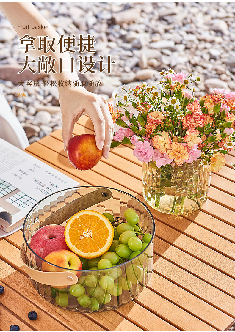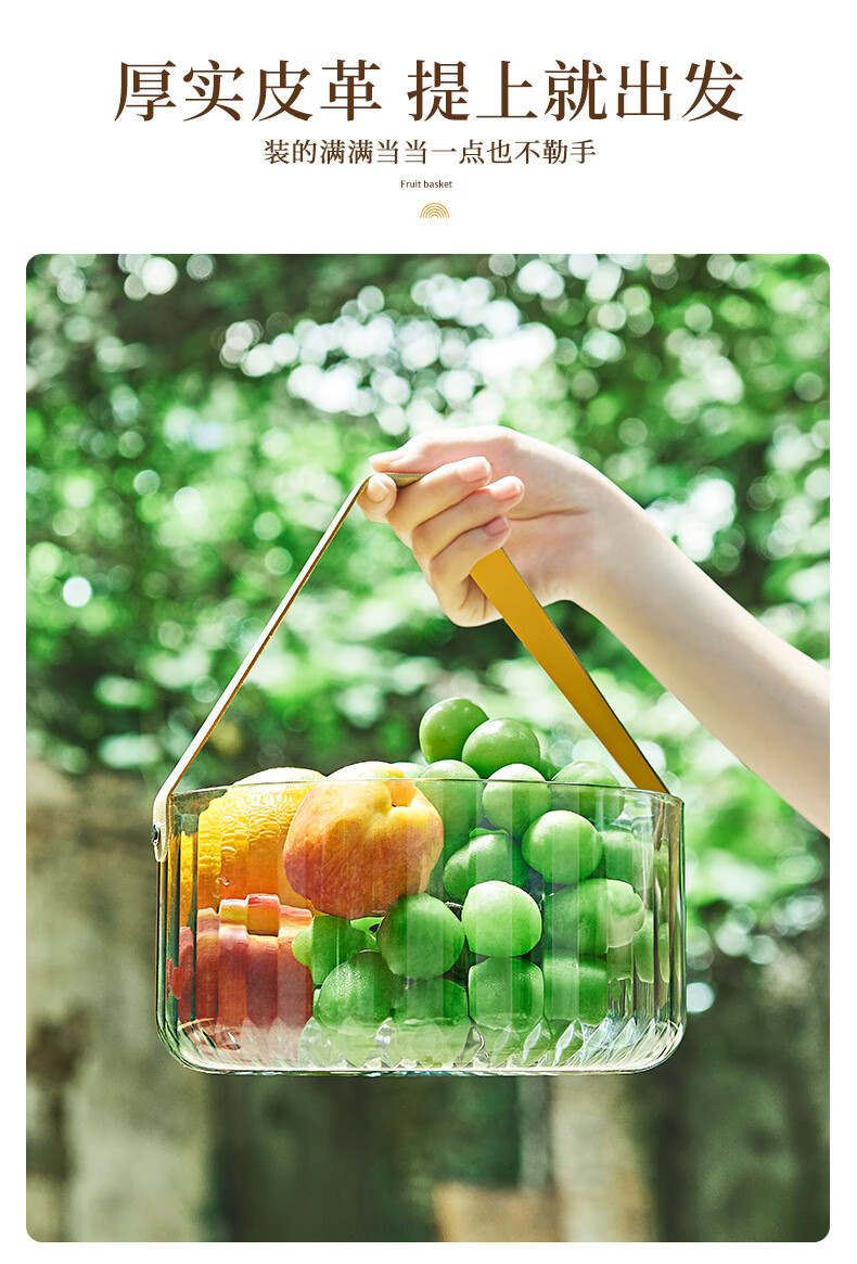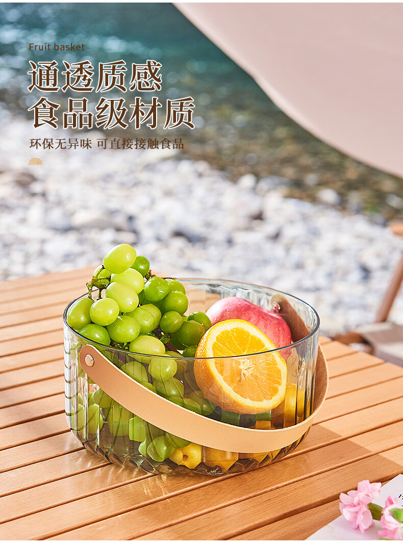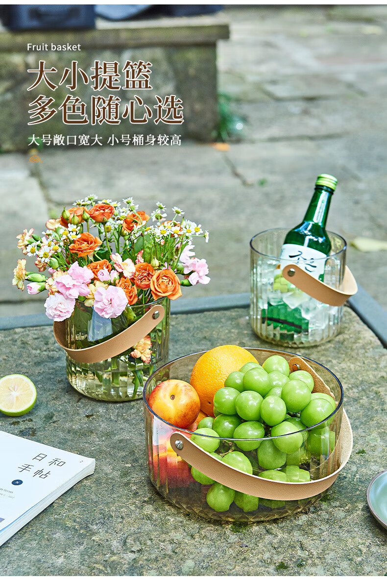 Light luxury transparent portable fruit basket fruit bucket simple living room household ice bucket dried fruit snacks fruit plate food grade 0 odor amber-medium size