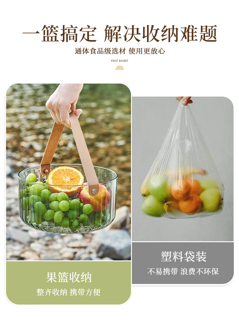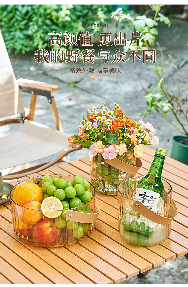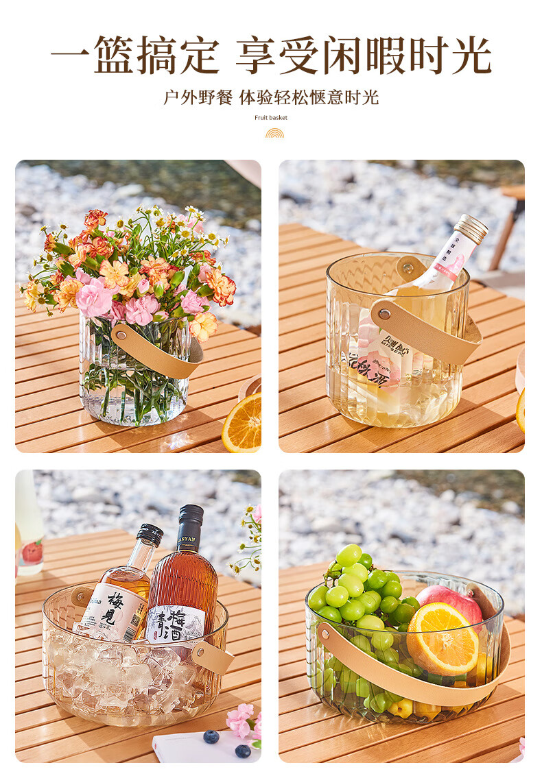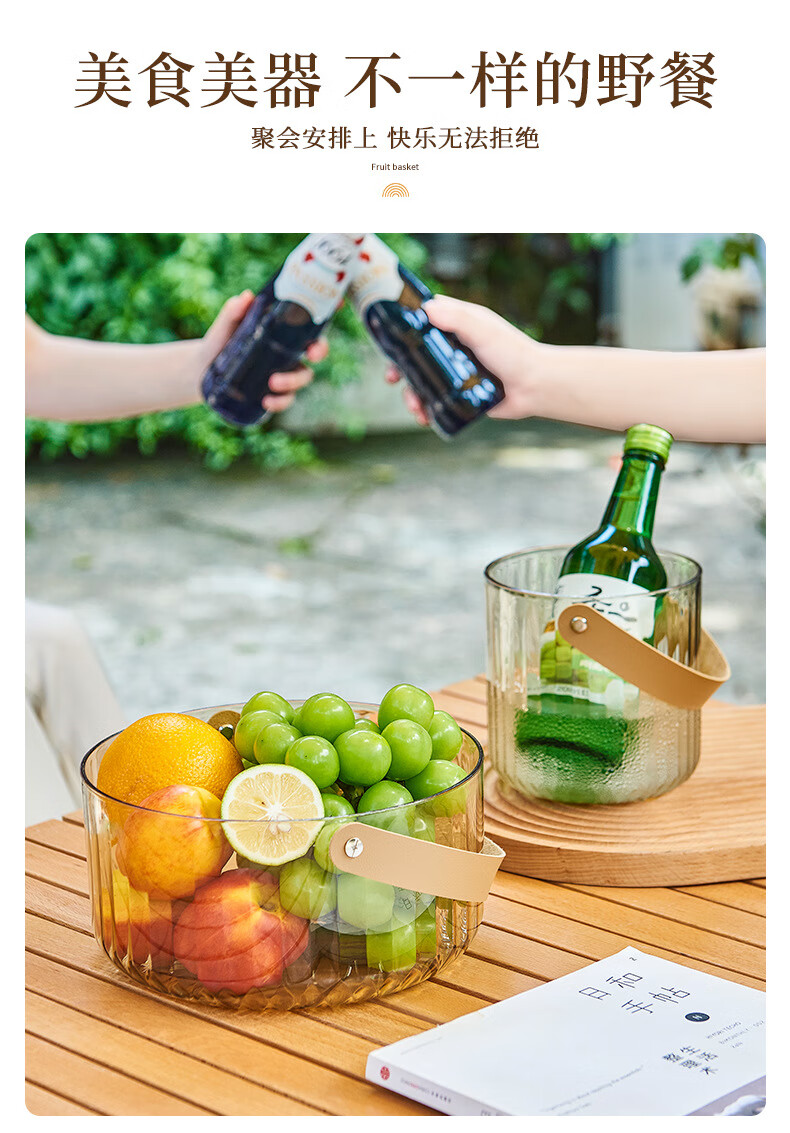 Light luxury transparent portable fruit basket fruit bucket simple living room household ice bucket dried fruit snacks fruit plate food grade 0 odor amber-medium size