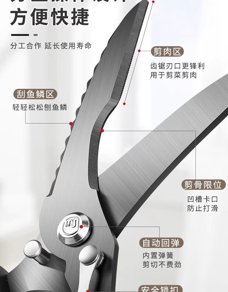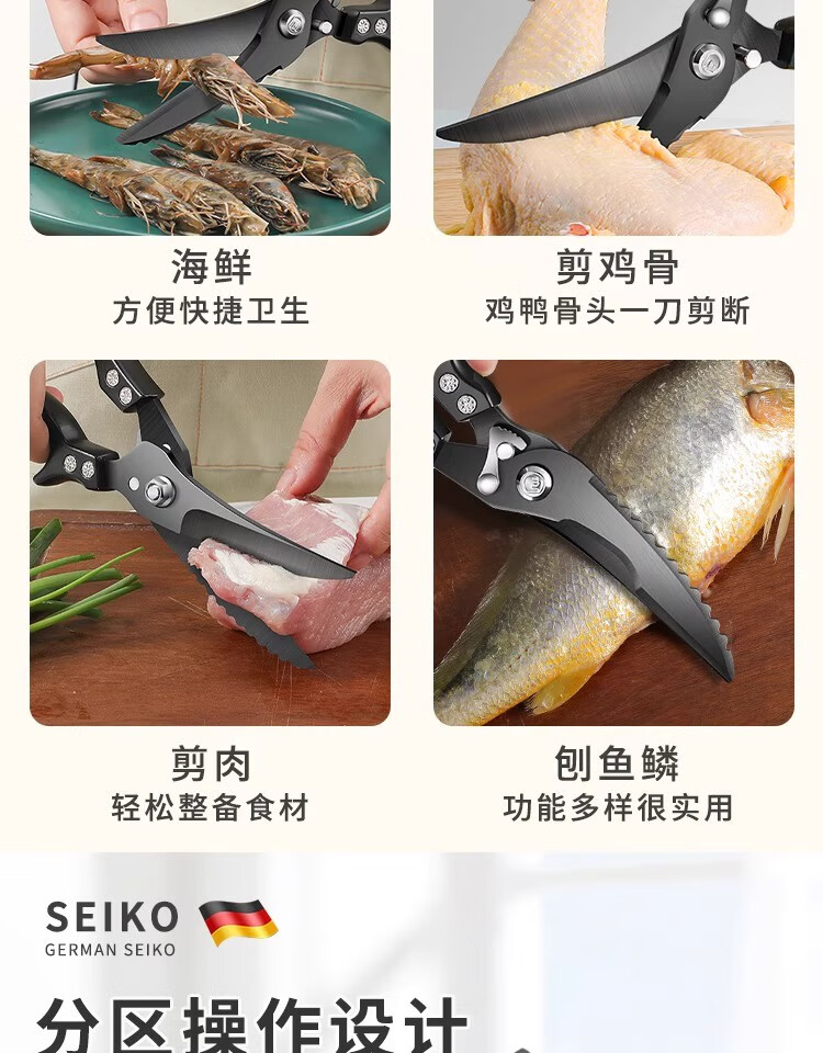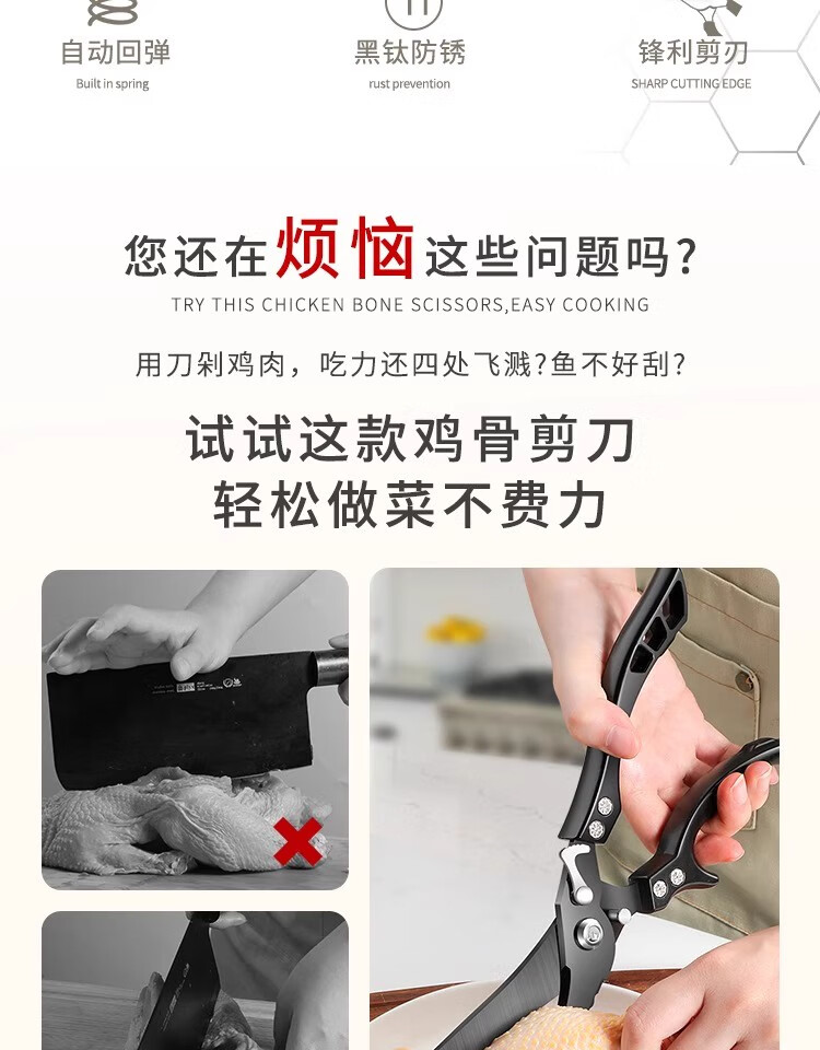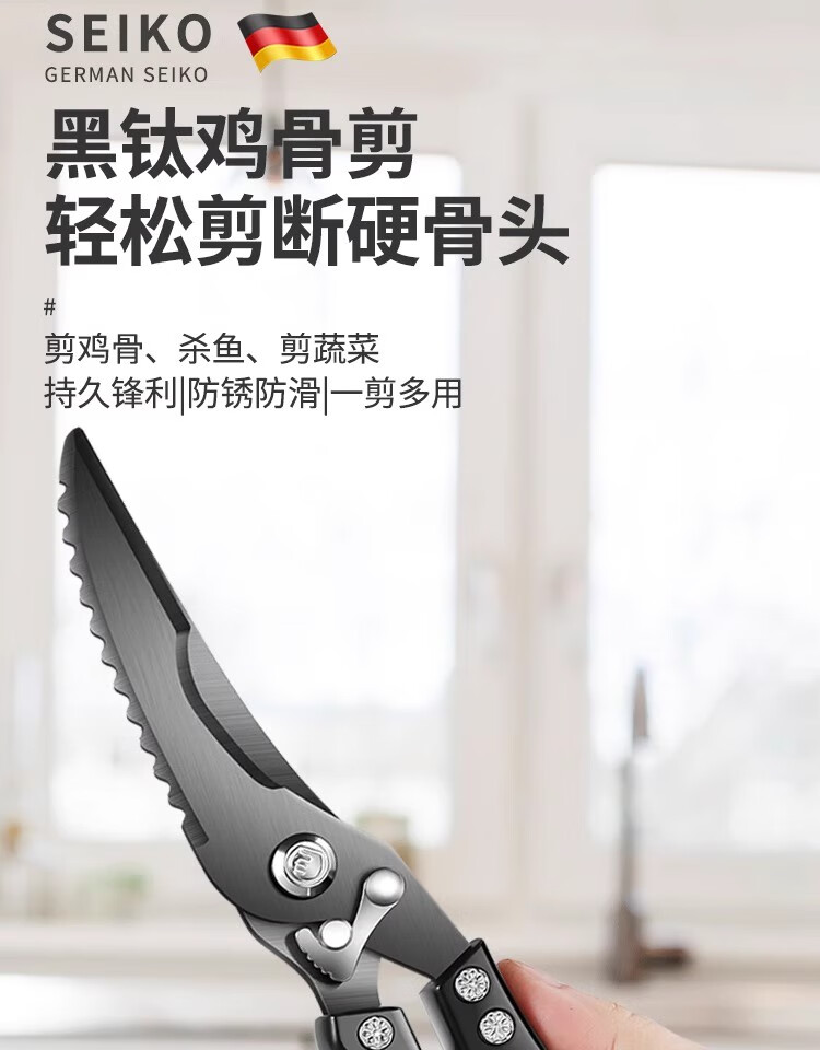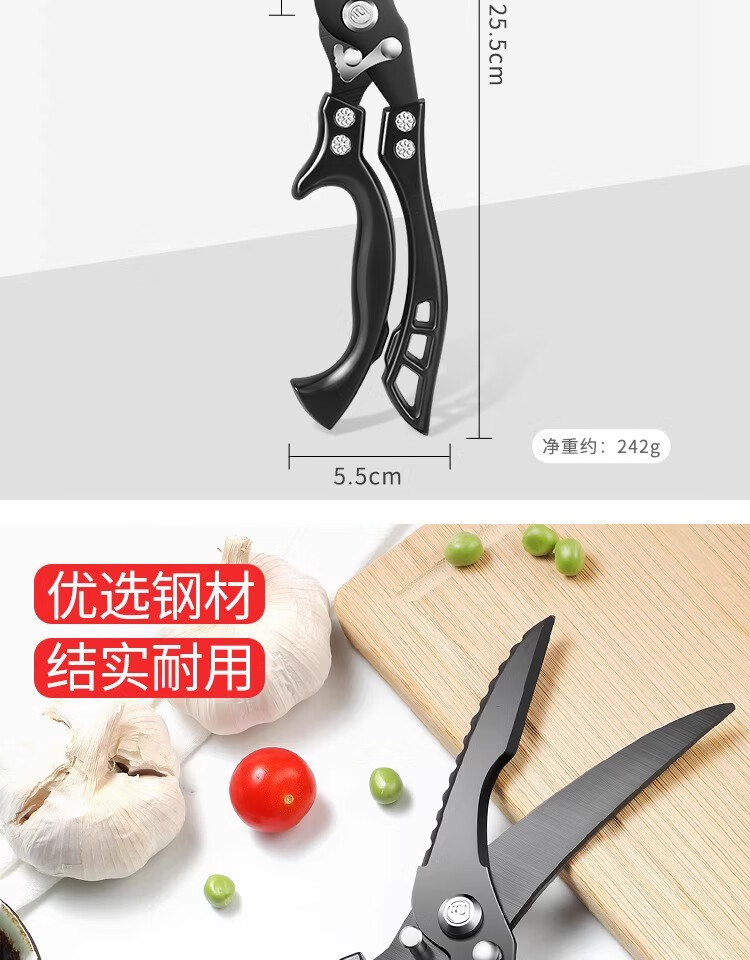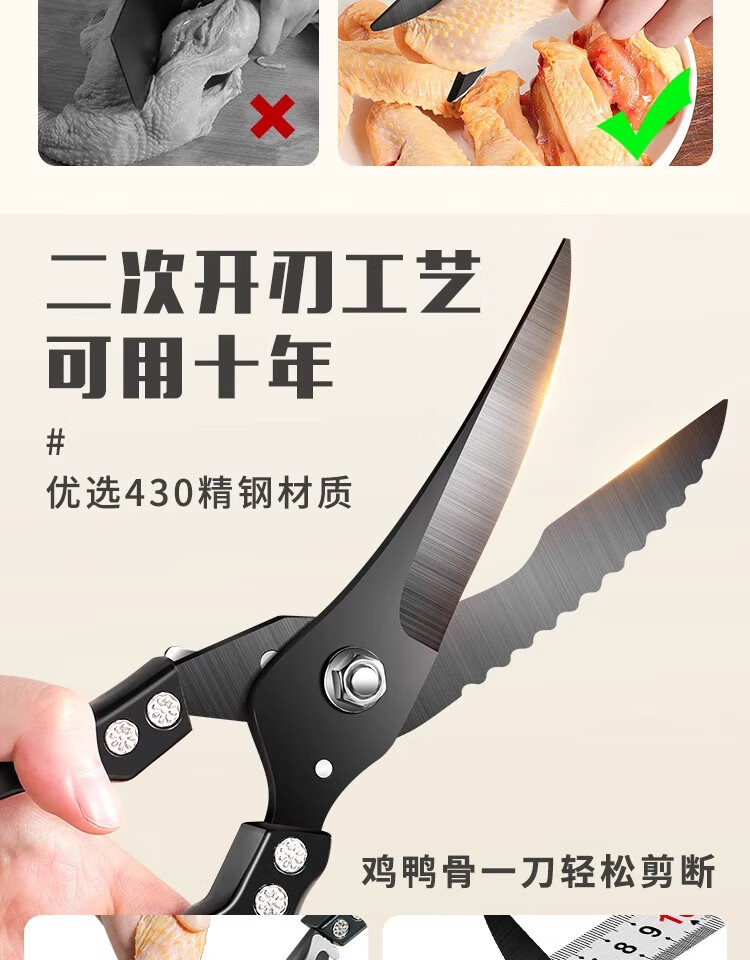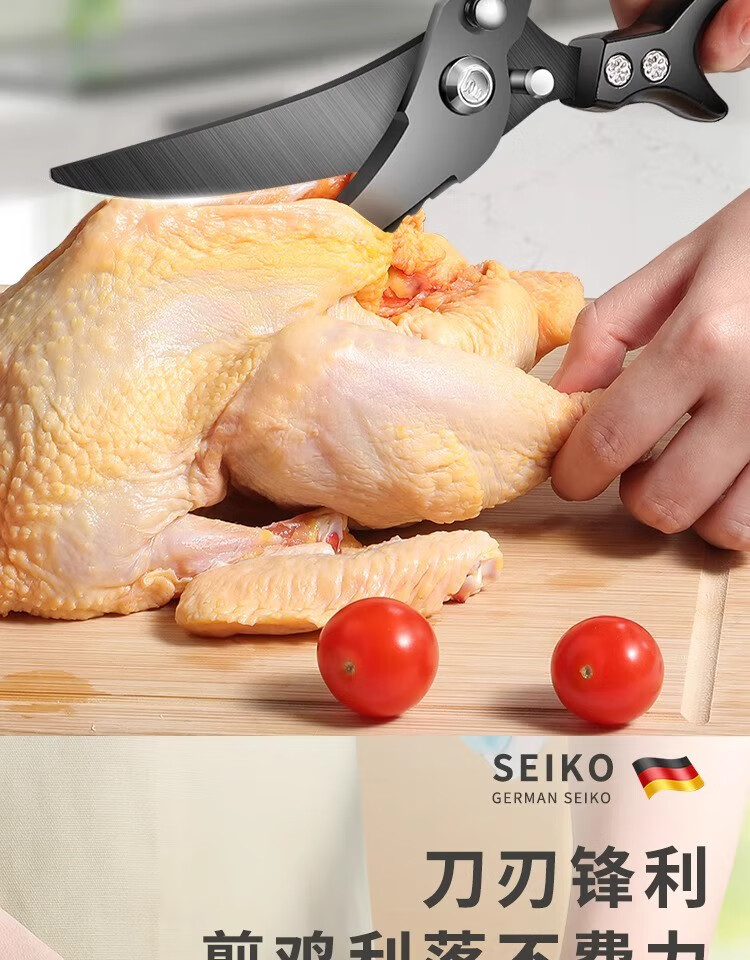 Multifunctional kitchen scissors, powerful chicken bone scissors, titanium-plated multi-functional scissors for chicken, duck and goose meat bones, upgraded extra thick titanium-plated chicken bone scissors