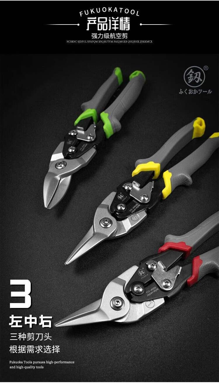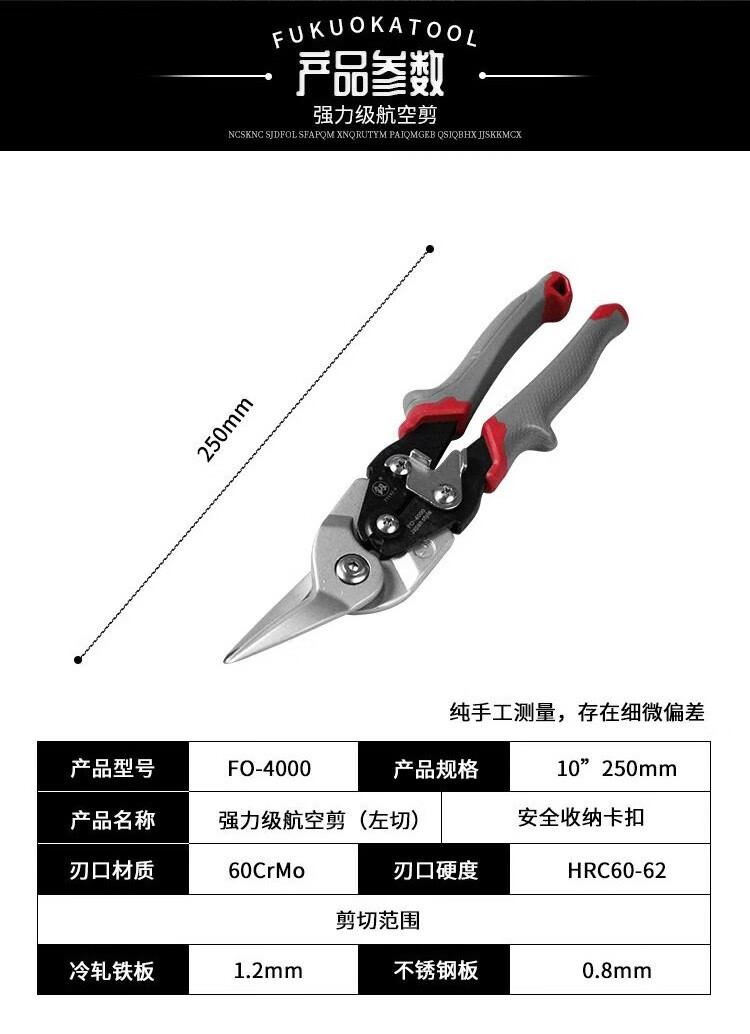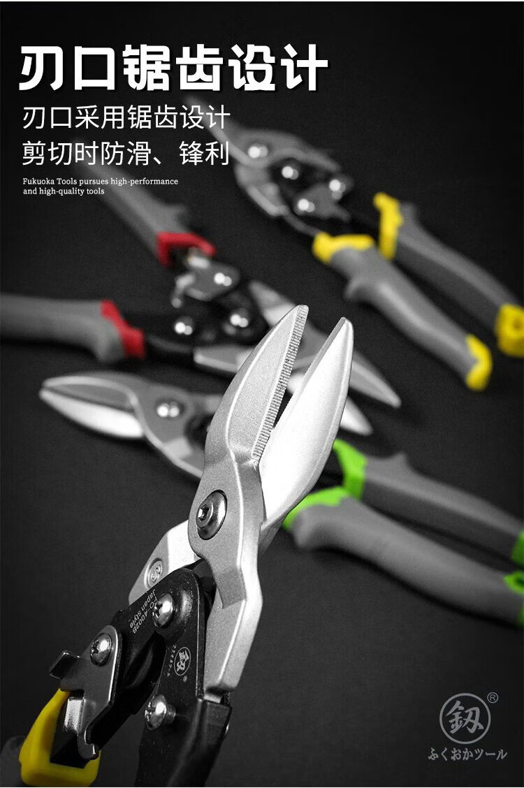 Fukuoka Tools powerful aviation scissors, industrial-grade scissors that can cut stainless steel plates, aluminum gusset plates, cold-rolled iron sheets, industrial-grade aviation scissors, straight head 10 inches FO-4002A