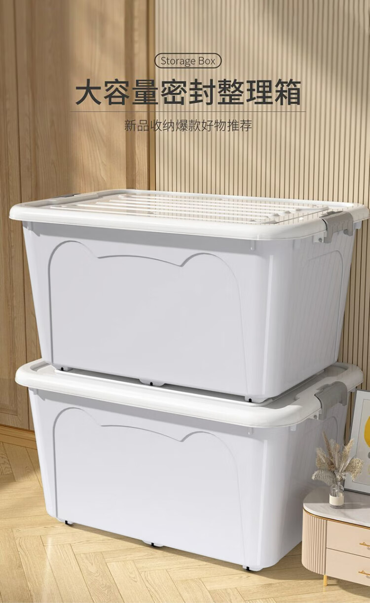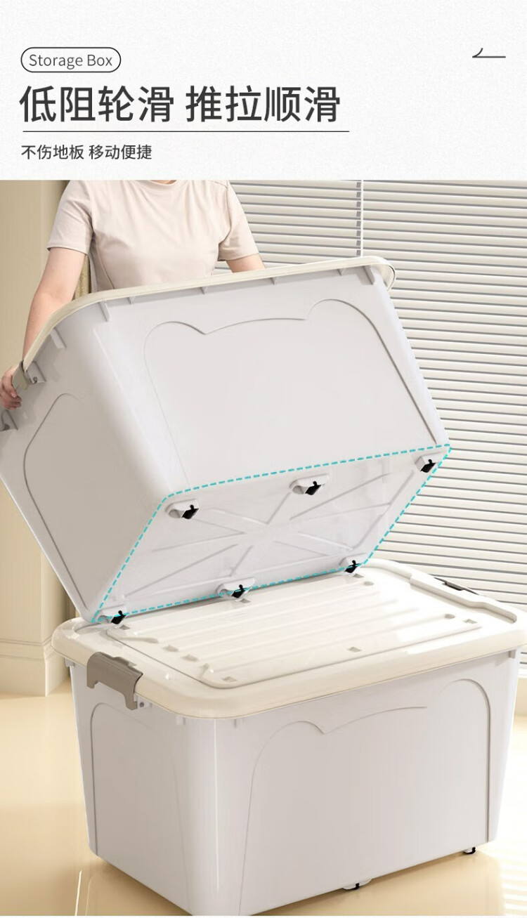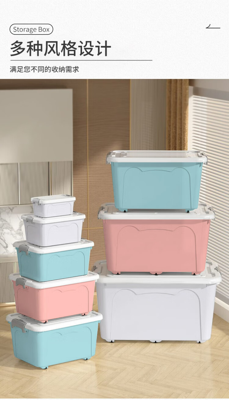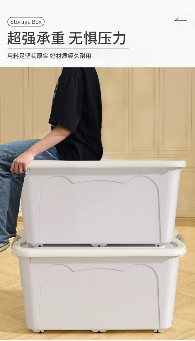 JD Logistics Plastic Storage Box Home Extra Large Capacity Clothing Storage Box Multi-Function Organizing Box with Cover Large Size 49.5*37*26cm Blue 1 pc