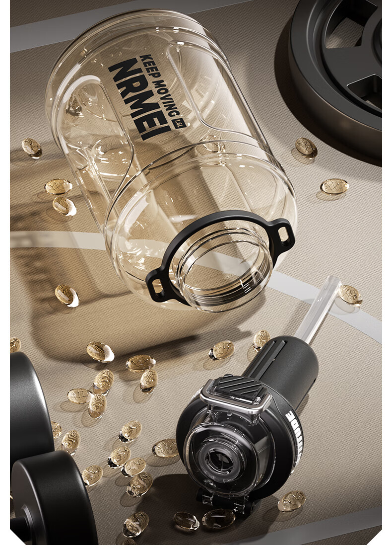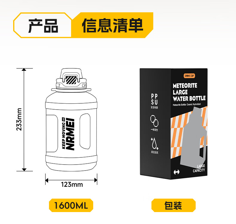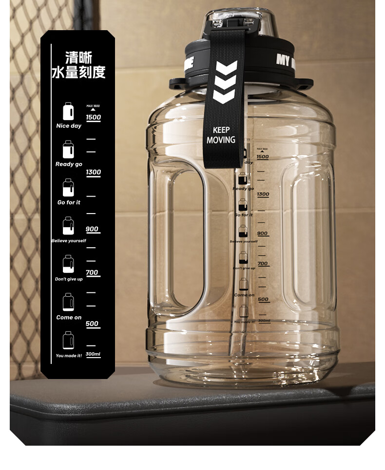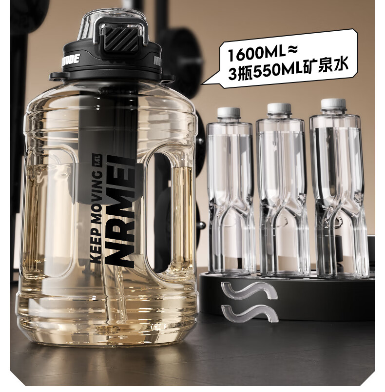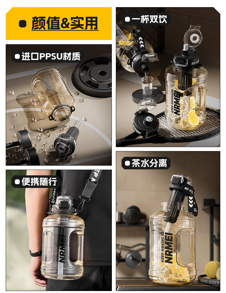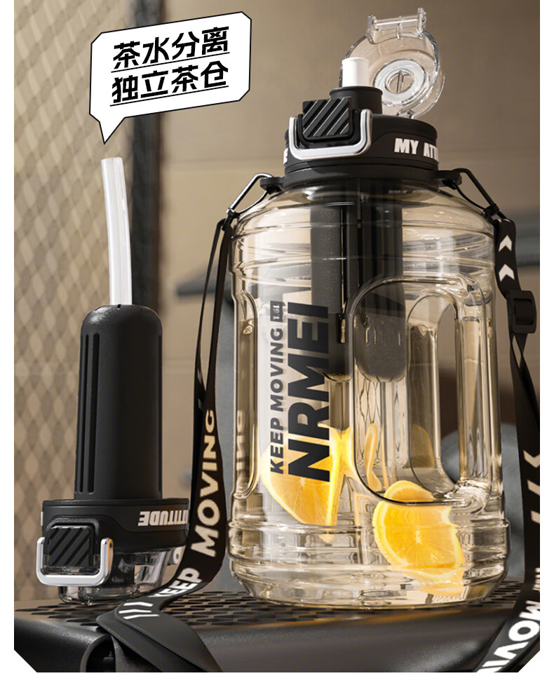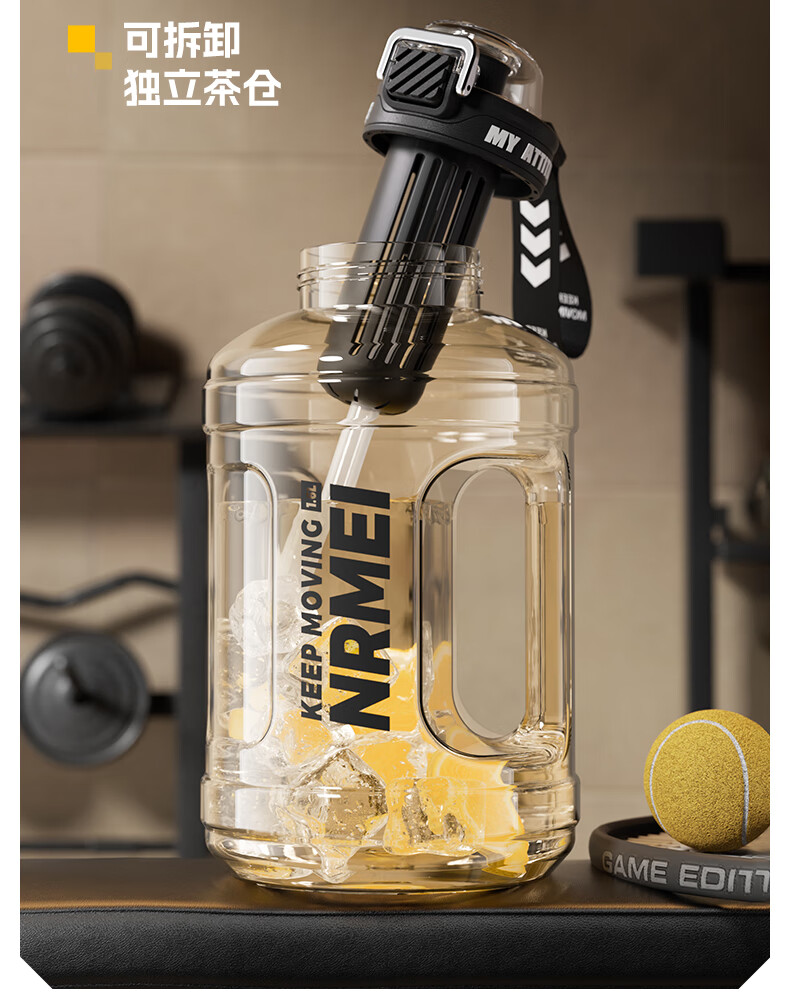 NRMEi large-capacity water cup PPSU bucket with tea bin, high temperature resistance, can make tea and drink directly, fitness ton bucket ton sports kettle, meteorite black 1600ml/ppsu