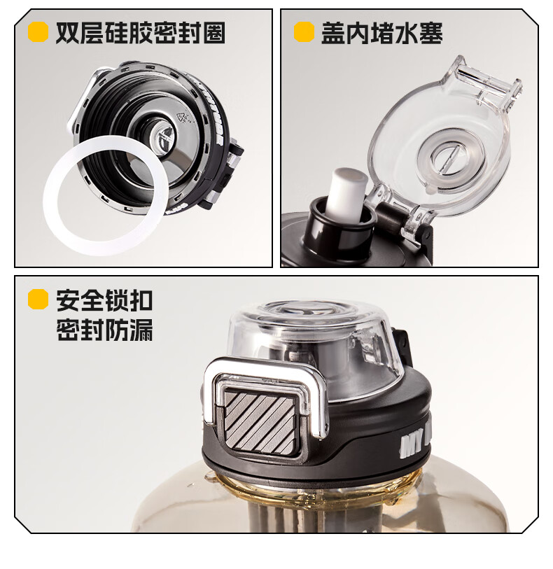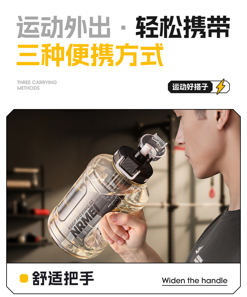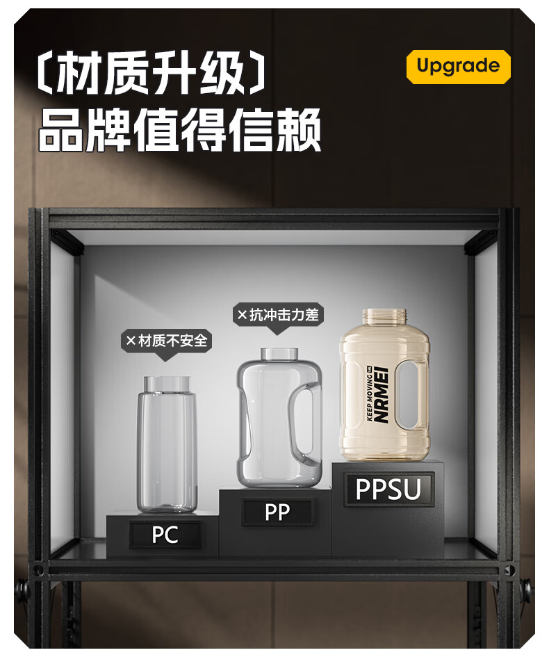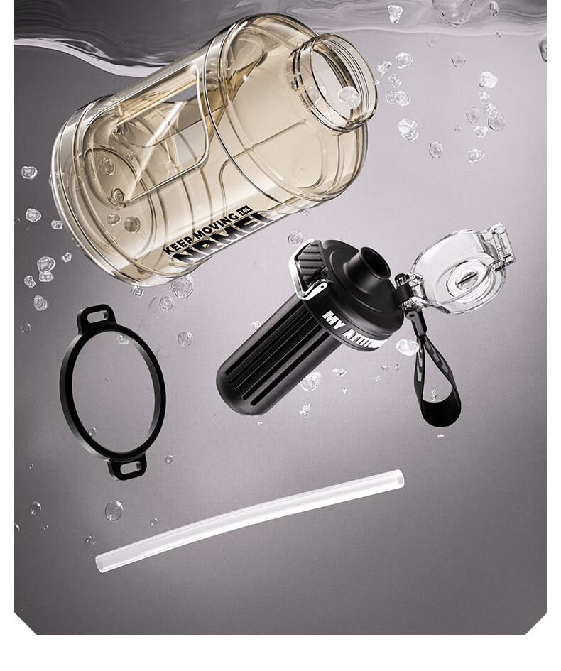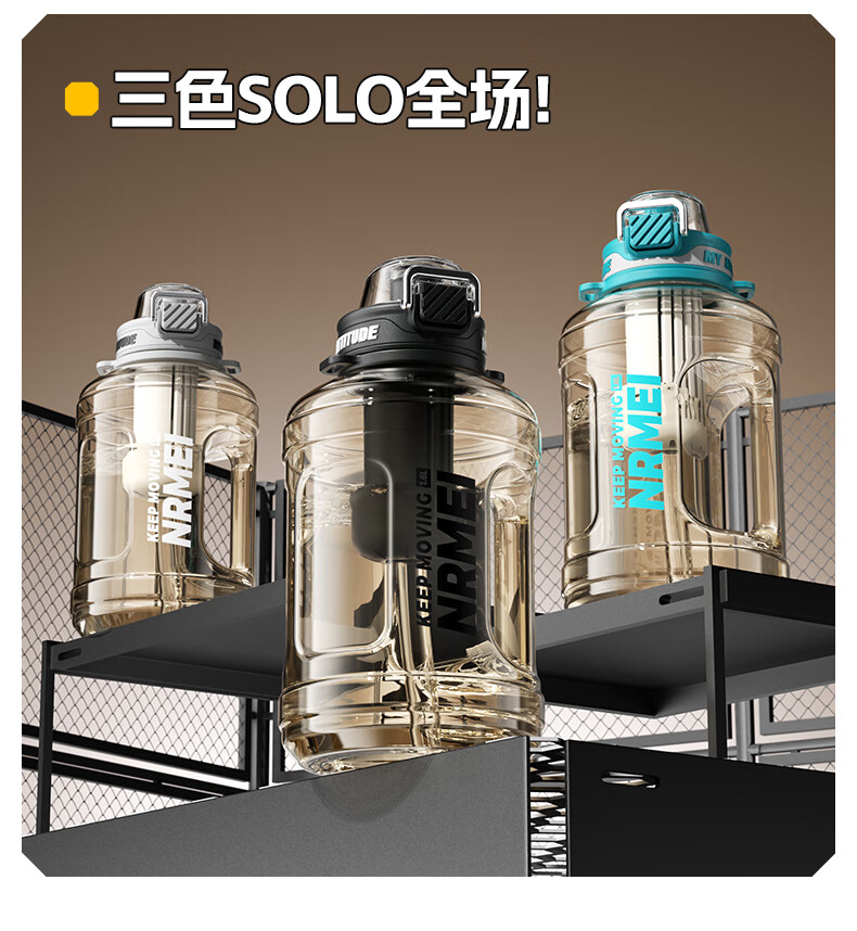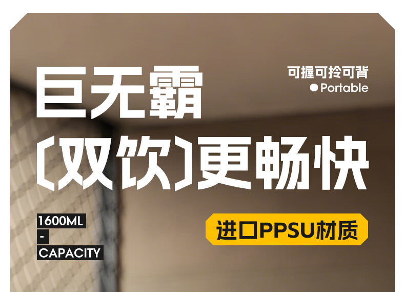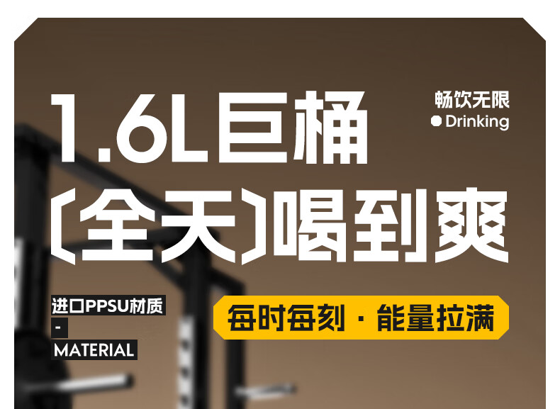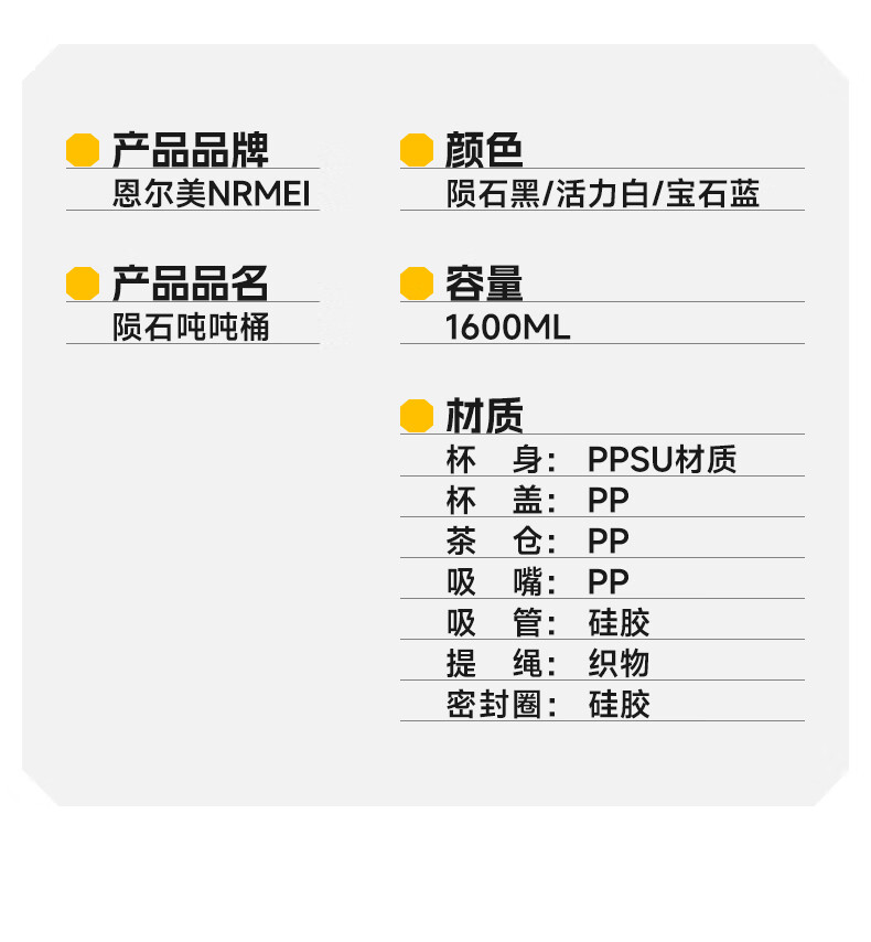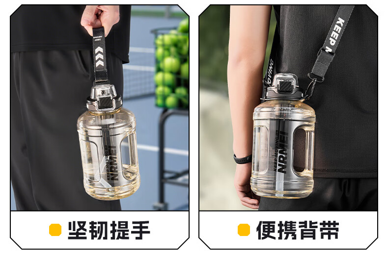 NRMEi large-capacity water cup PPSU bucket with tea bin, high temperature resistance, can make tea and drink directly, fitness ton bucket ton sports kettle, meteorite black 1600ml/ppsu