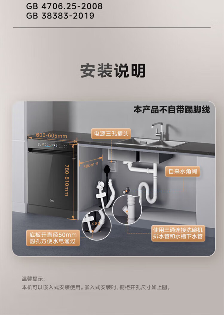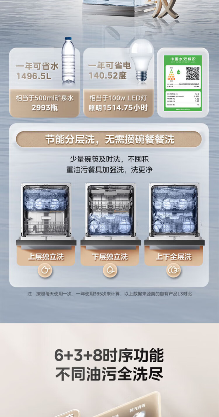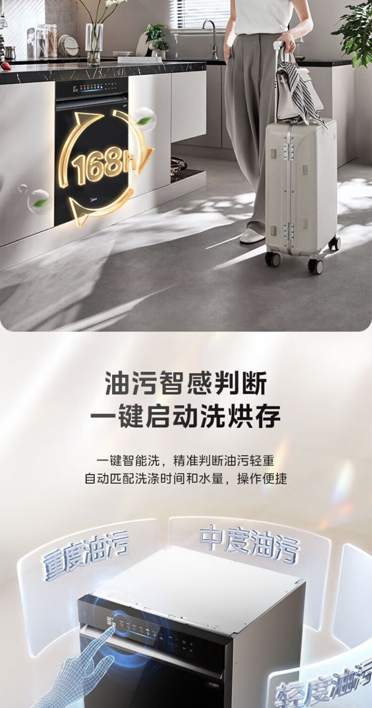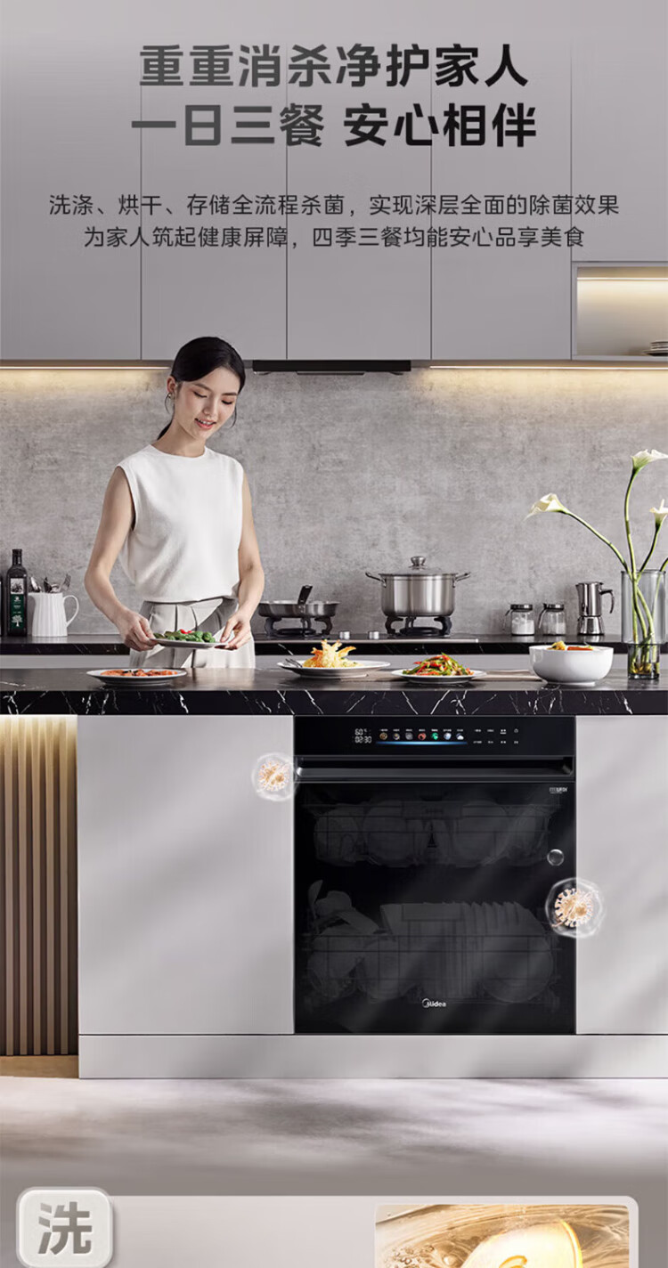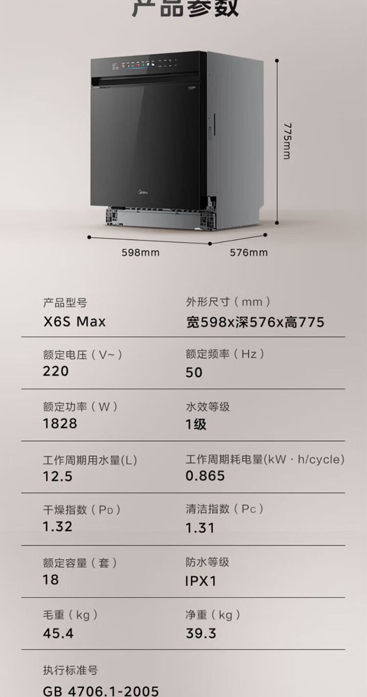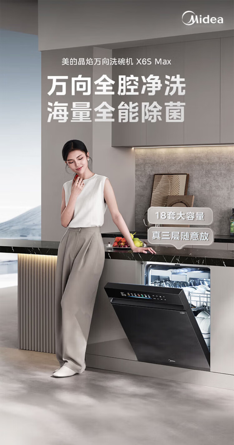 Midea universal X6S MAX dishwasher fully embedded upgrade 18 sets large capacity household dishwasher fully automatic universal spray arm 105 thermal drying x6smax embedded X6SMAX black model