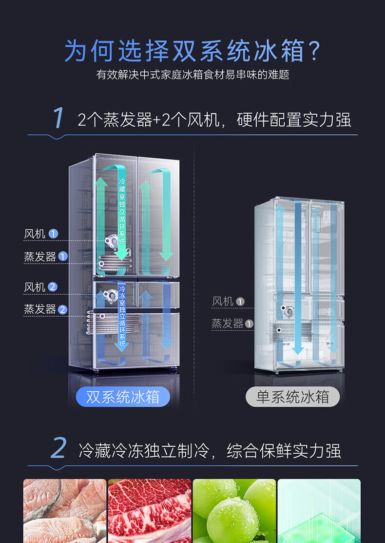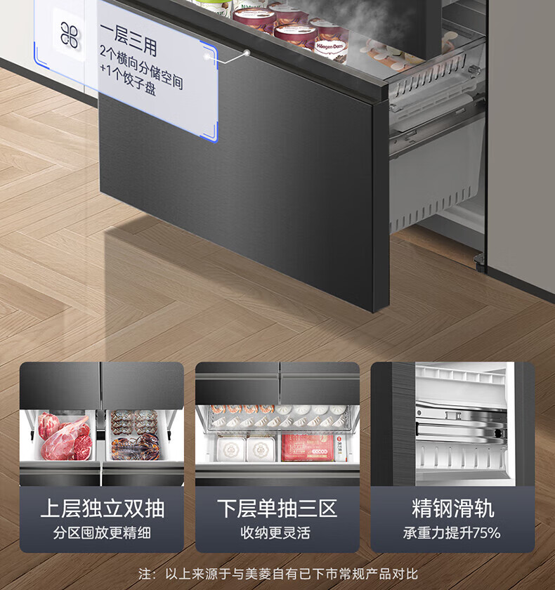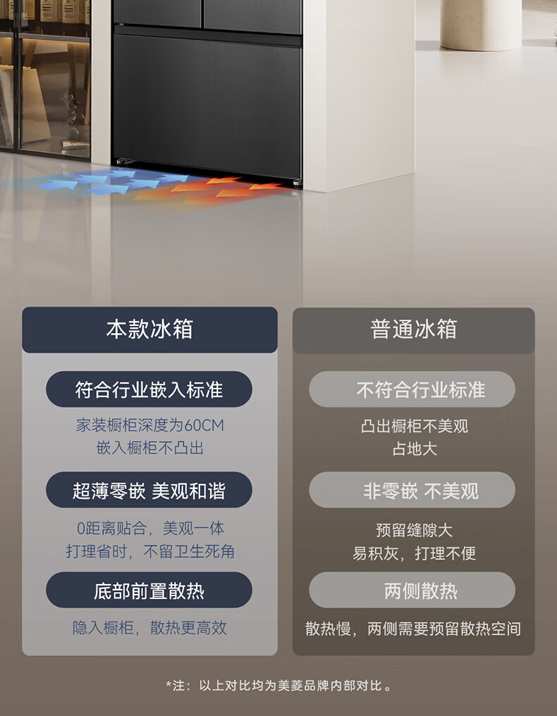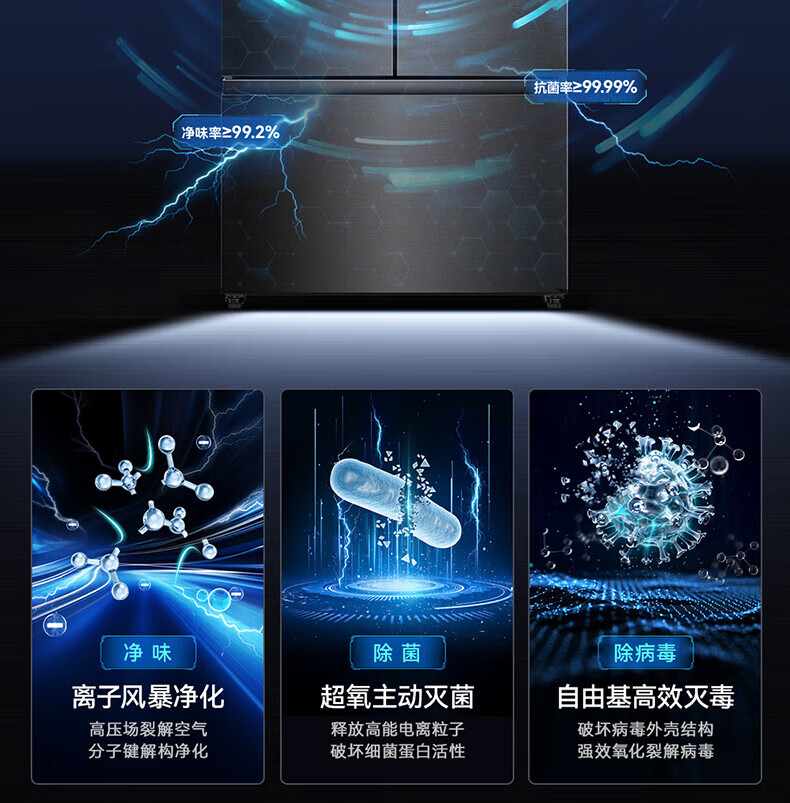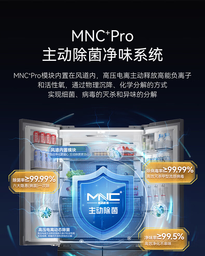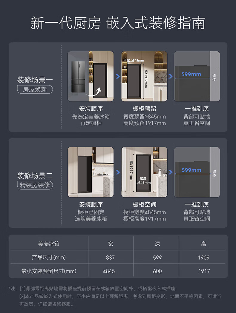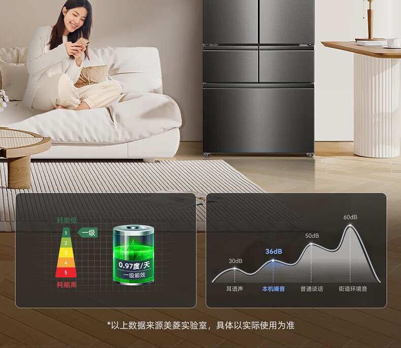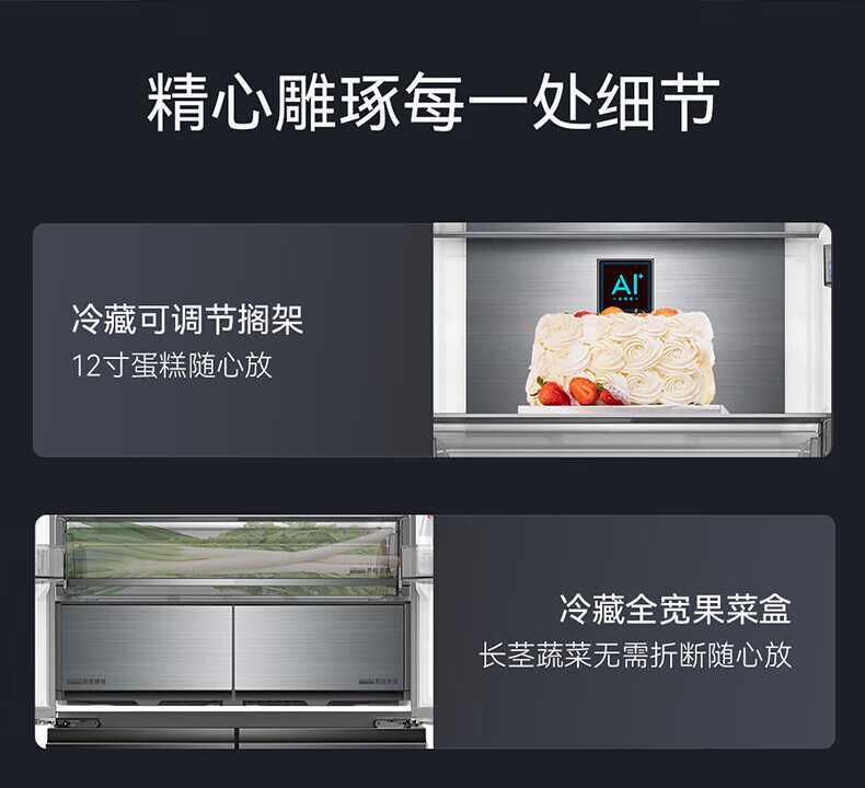 MeiLing 507-liter AI smart French five-door multi-door ultra-thin zero-distance embedded 599mm dual-cycle dual-system active sterilization household large-capacity air-cooled frost-free refrigerator 507 French smart-white