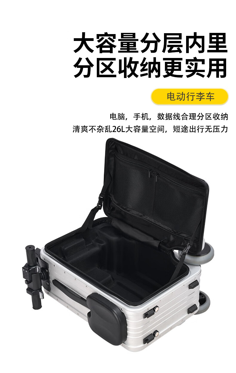 Electric suitcase, boarding trolley suitcase, capable of riding and carrying people, 20-inch large capacity, high-grade gray, boardable/high-speed rail, with a battery, 20 inches
