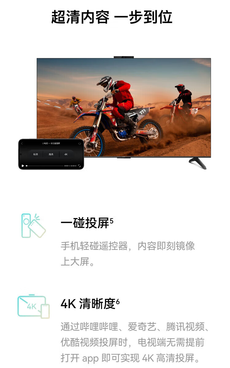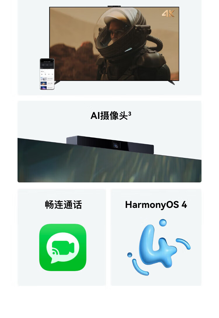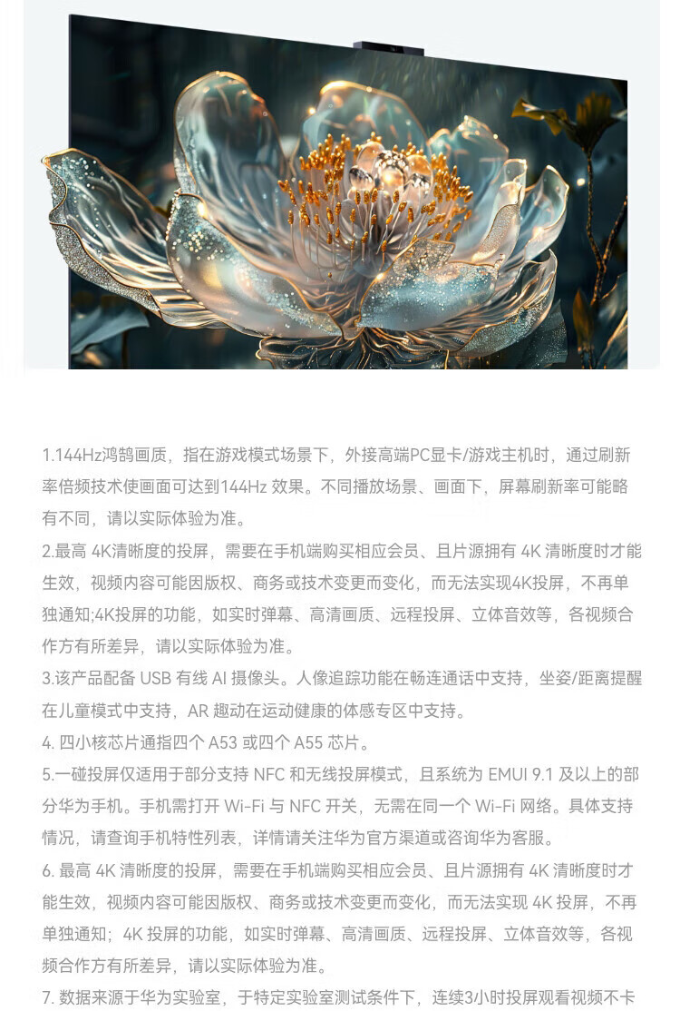 Huawei (HUAWEI) TV smart screen VisionD 55/65/75/85 inches 4K super projection screen 144Hz Honghu image quality AI super-sensing camera high-definition LCD flat-panel TV 75-inch family karaoke set VisionD 75