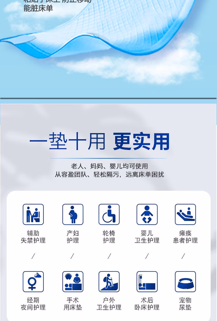 Kangrixin thickened nursing pad 60x90 elderly disposable diaper pad unisex diaper pad 80x90cm large size four-corner positioning 50 pieces