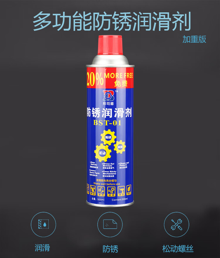 Factory direct sales anti-rust oil skylight lubricant metal screw loosening agent 500ml rust remover Baisi Shield 500ml 400g weighted version one box (24 bottles)