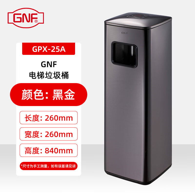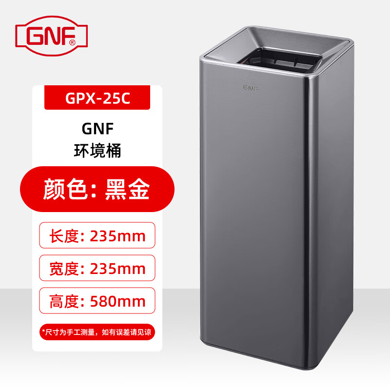GNF Trash Can Stainless Steel Square Seat Ground Vertical Uncovered Direct Throw Side Throw Anti-Fingerprint Internal and External Double Barrels Indoor Commercial Office Office Building Mall Hotel Elevator Entrance Residential Property Inside the Elevator 16L Sand Silver Steel Inside and Out Double Barrels Side Throw GPX-25A