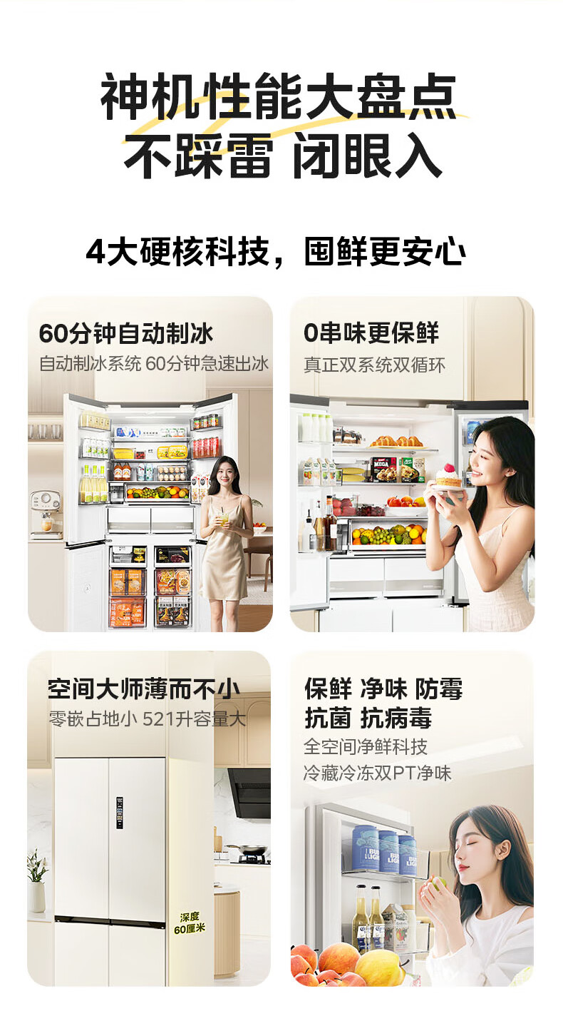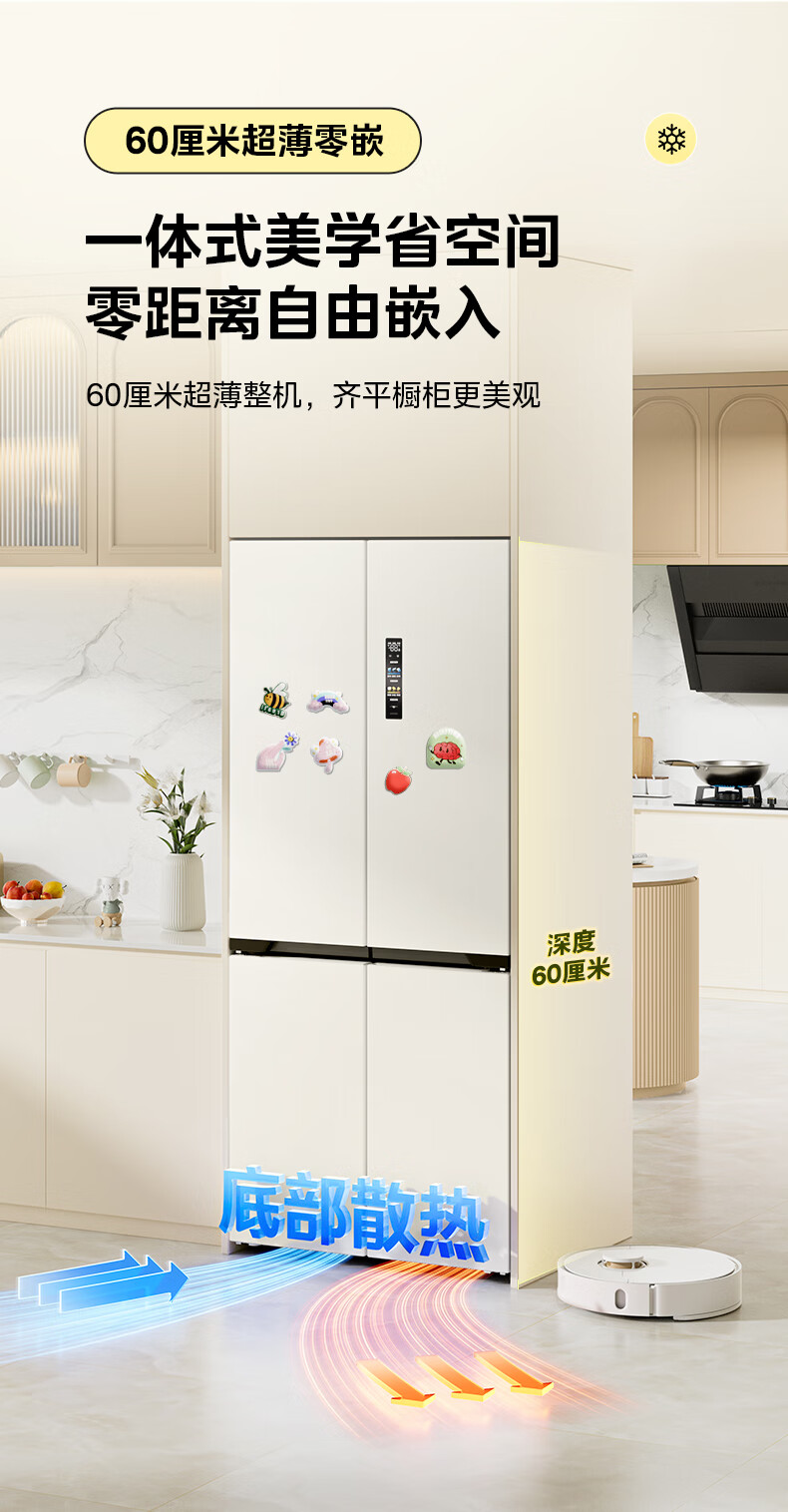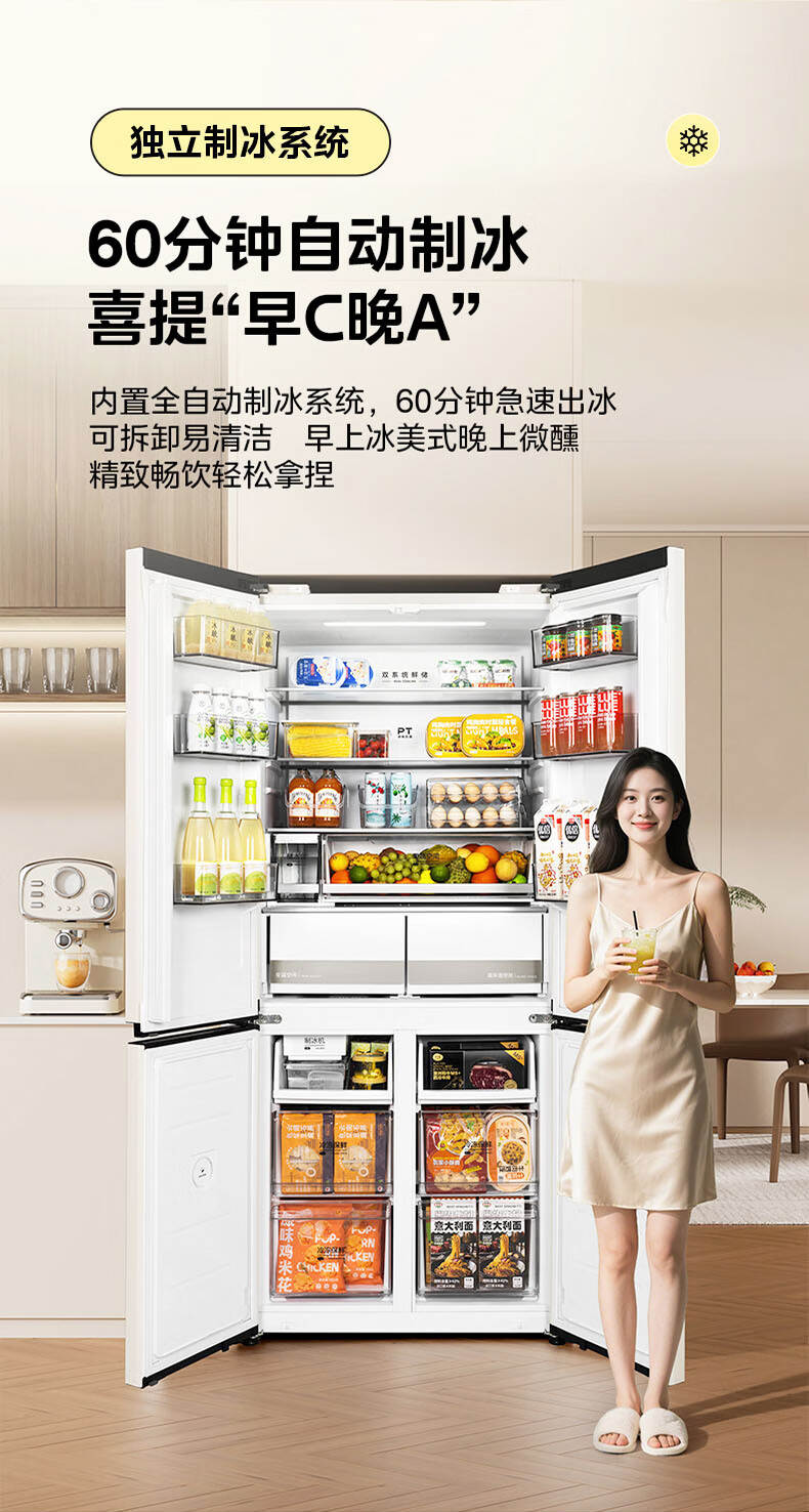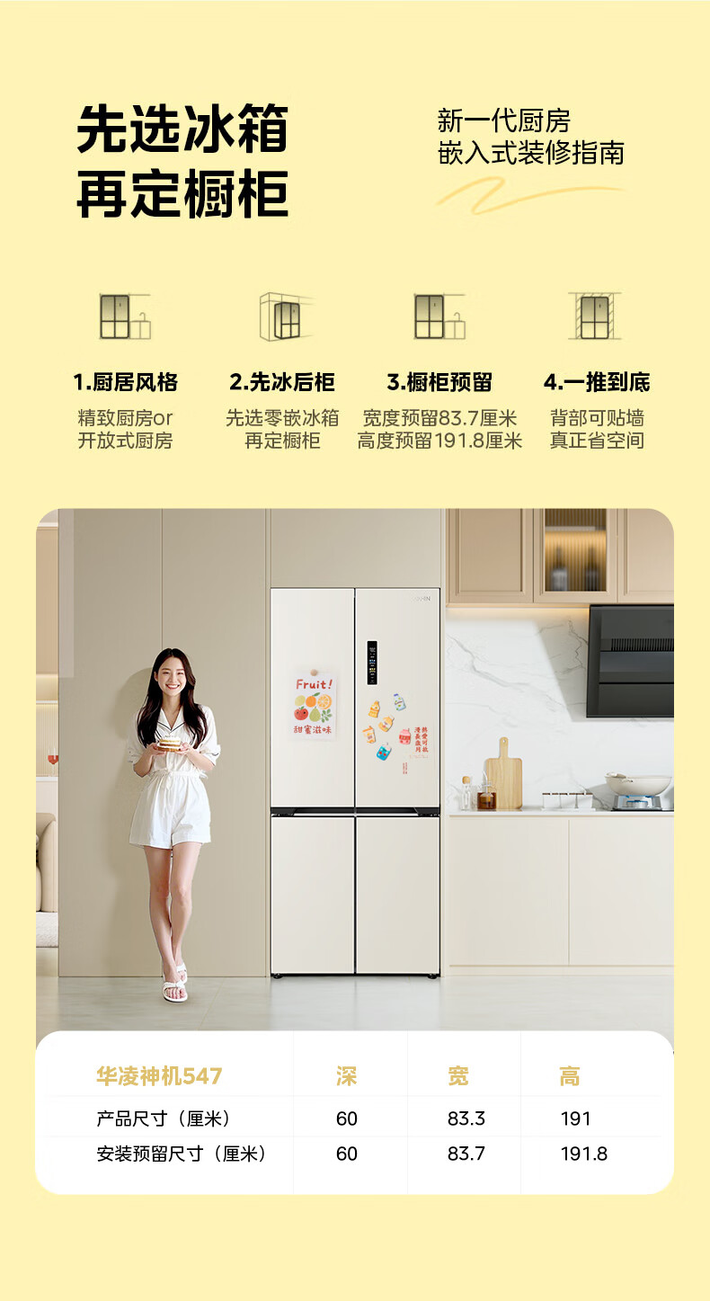 Midea Hualing Shenji 547 fully automatic ice making dual system dual cycle 60cm ultra-thin zero-embedded household cross-fold four-door first-class energy-efficiency refrigerator HR-547WUSIPZ