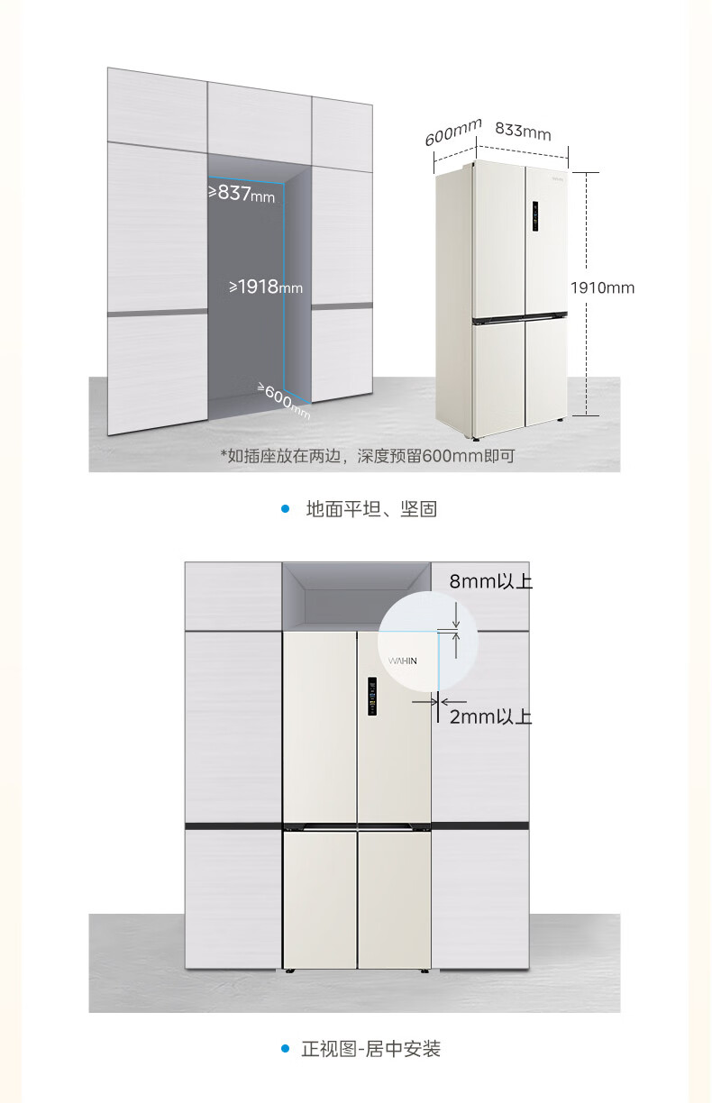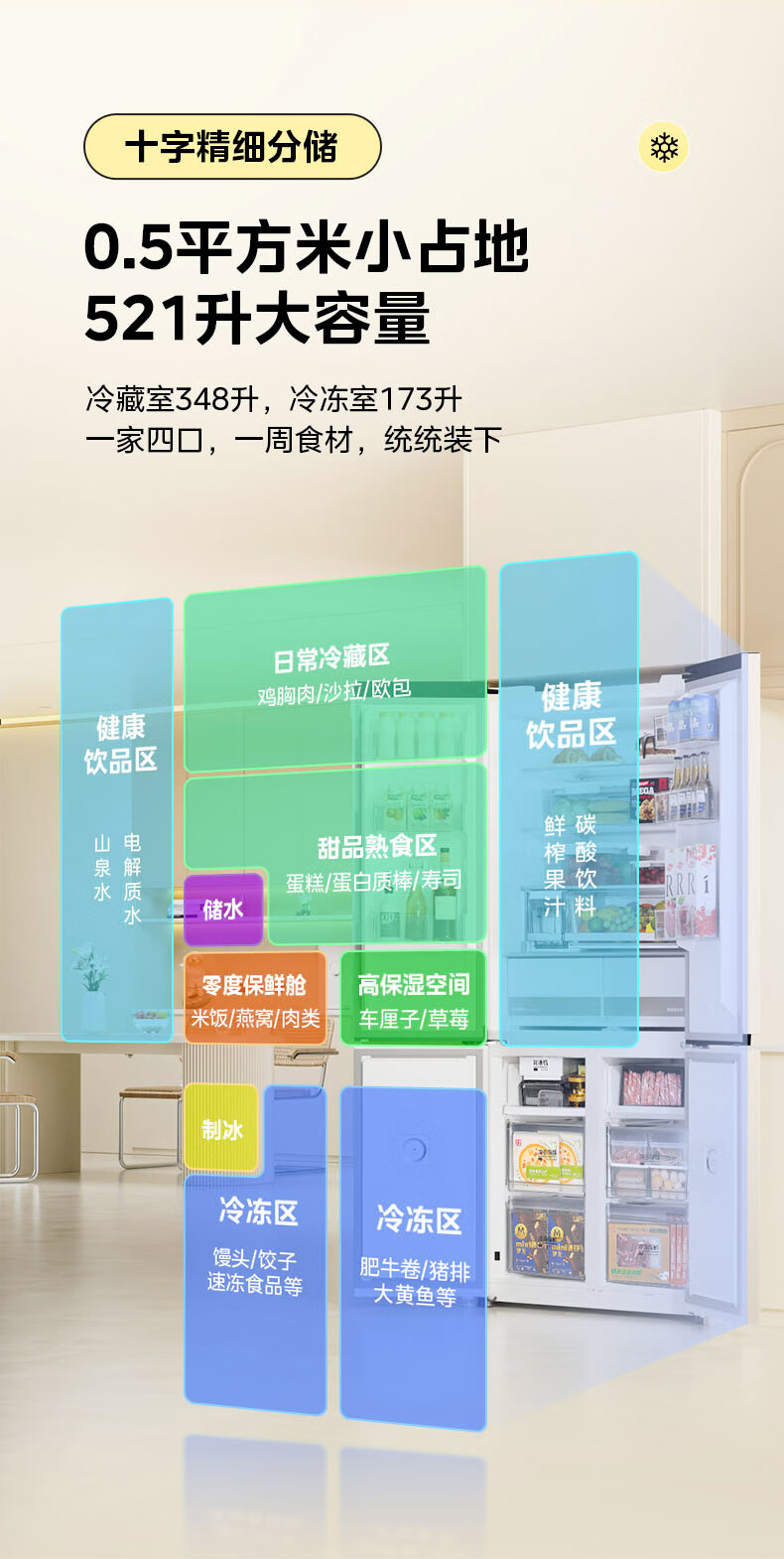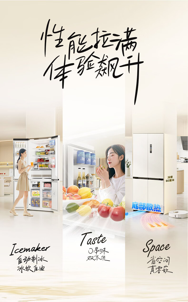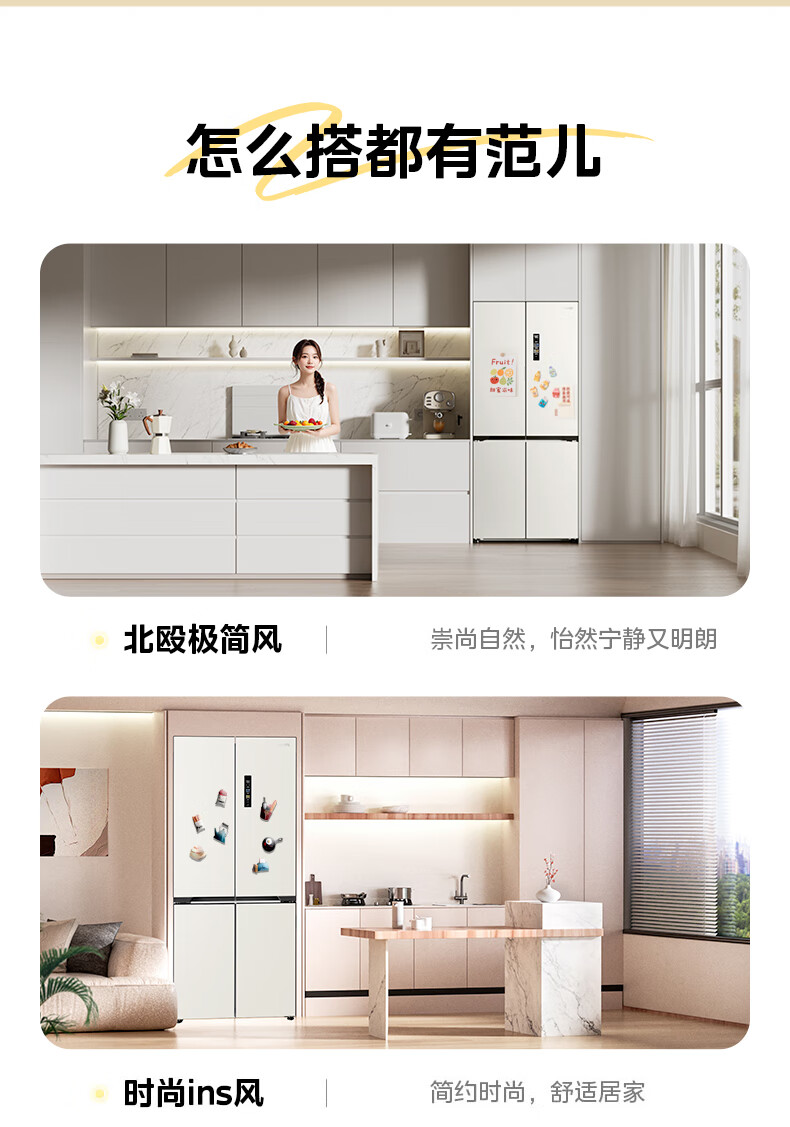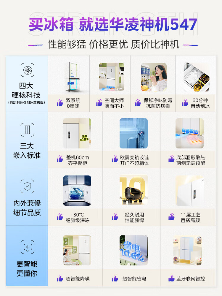Midea Hualing Shenji 547 fully automatic ice making dual system dual cycle 60cm ultra-thin zero-embedded household cross-fold four-door first-class energy-efficiency refrigerator HR-547WUSIPZ