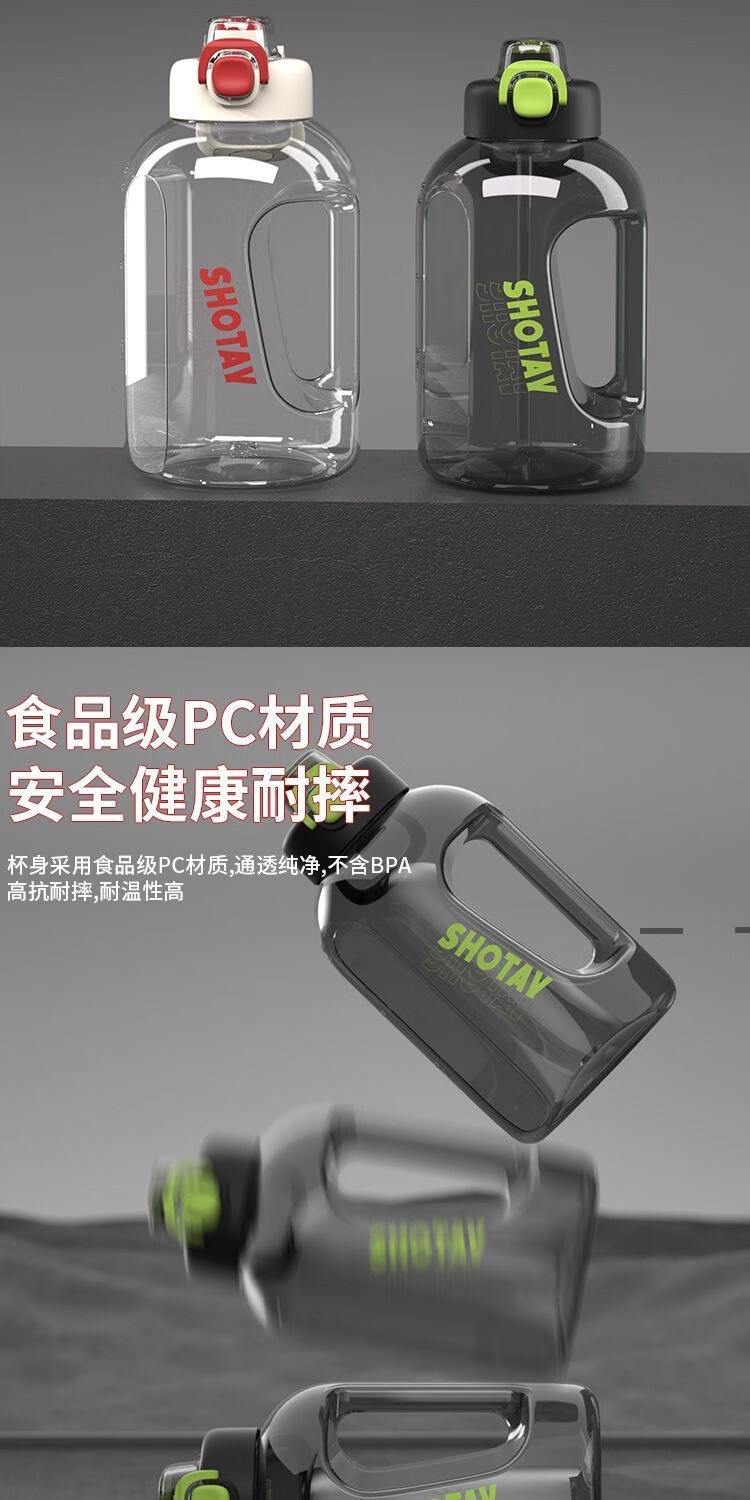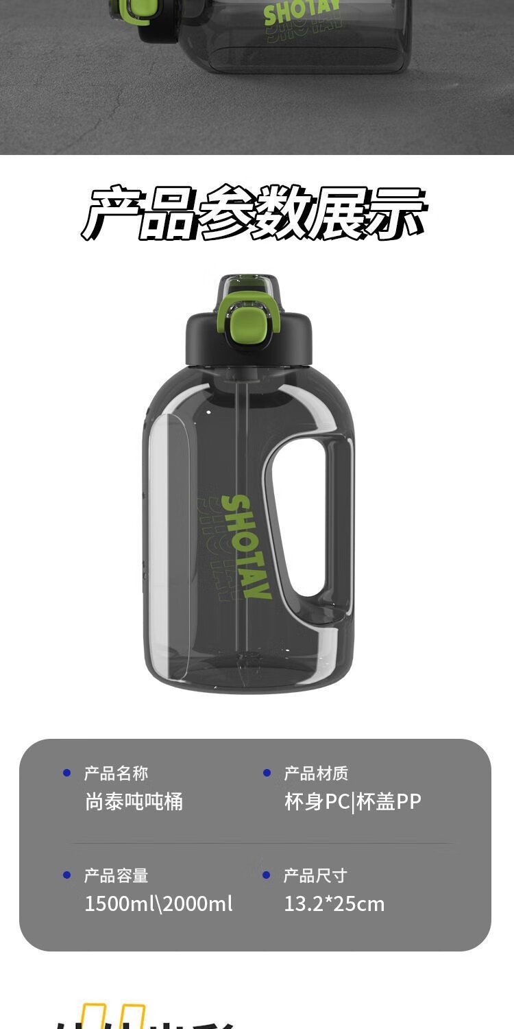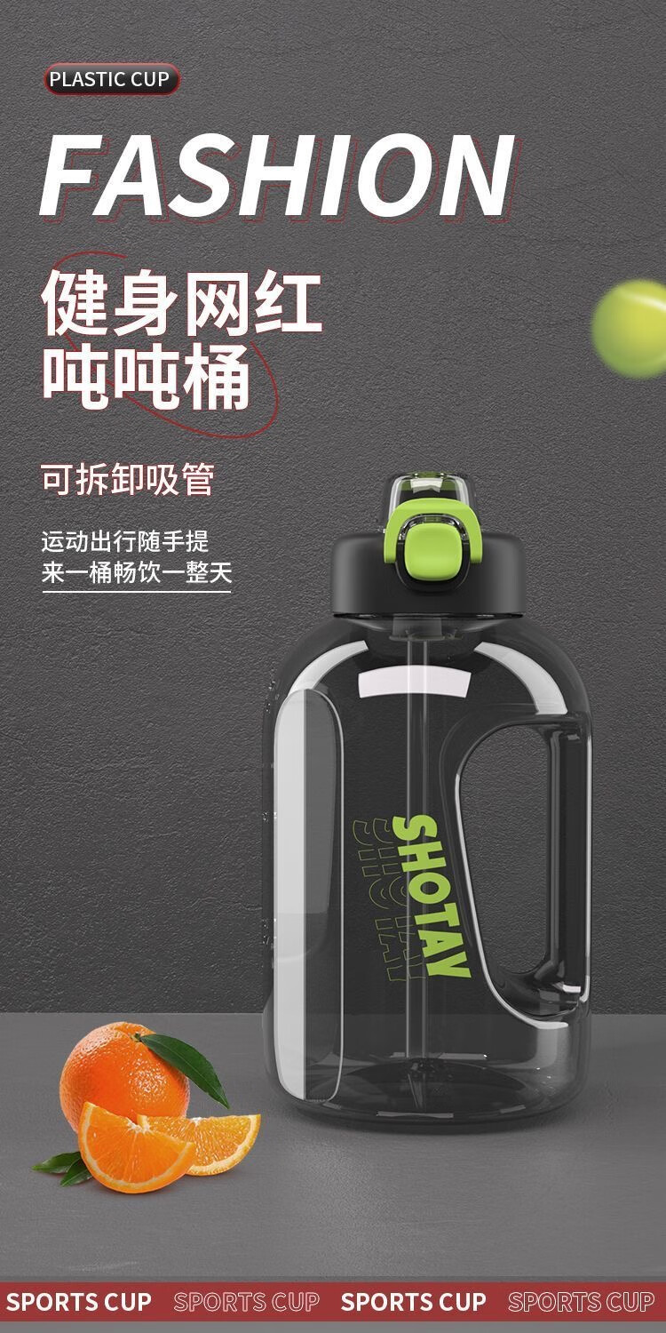 Shantai super large capacity ton bucket high-value outdoor sports plastic water cup fitness kettle student cup male white 2000ml double drink + handle
