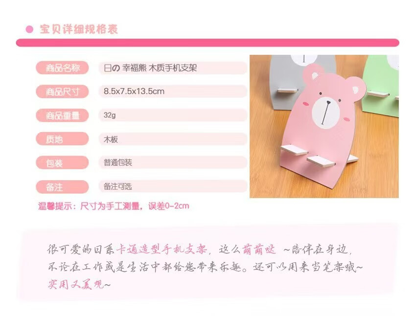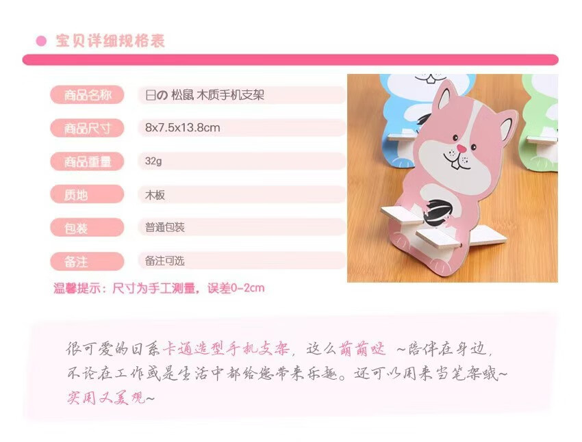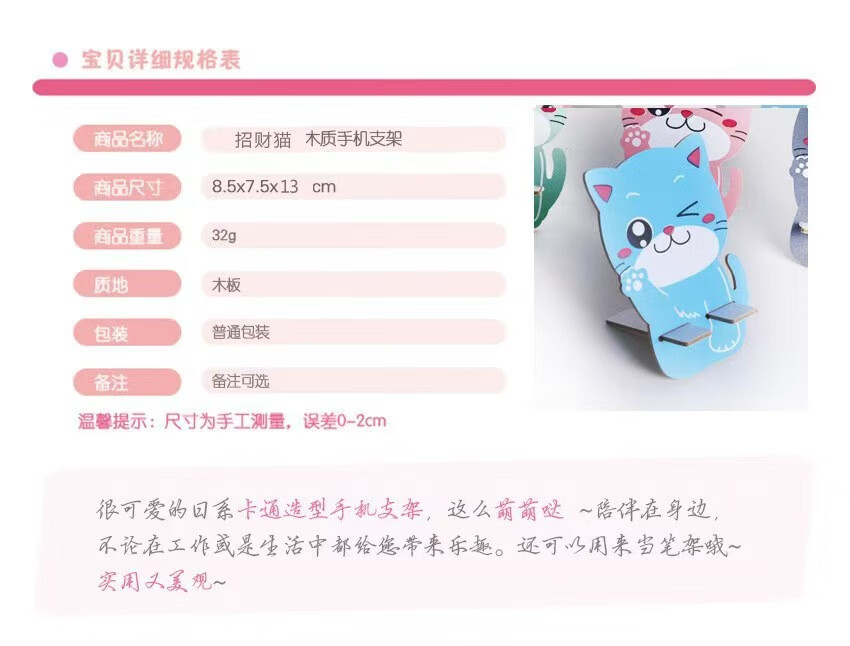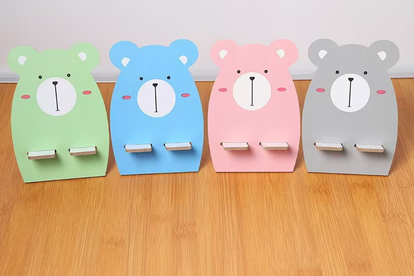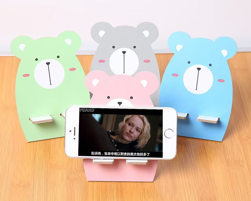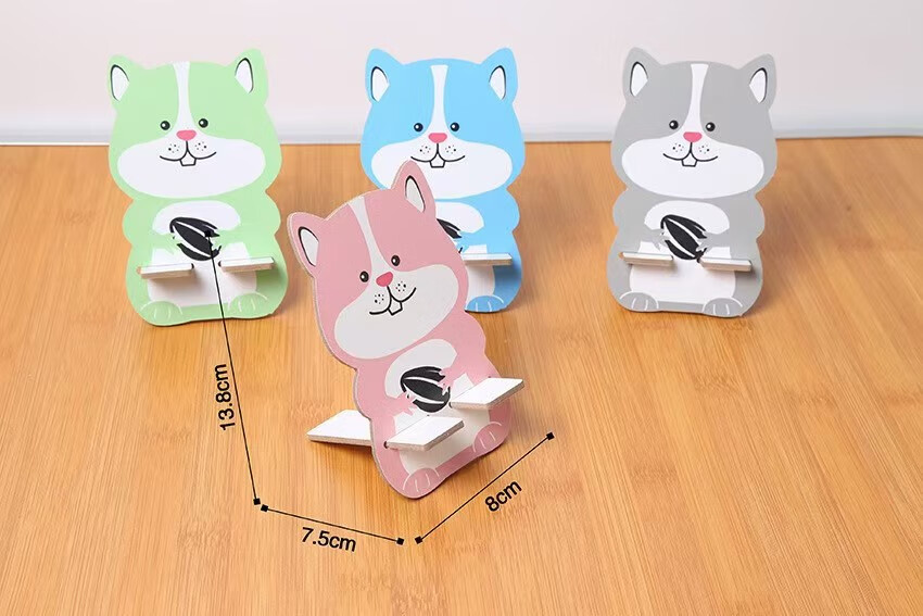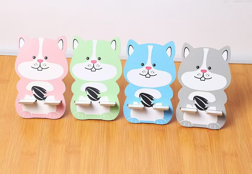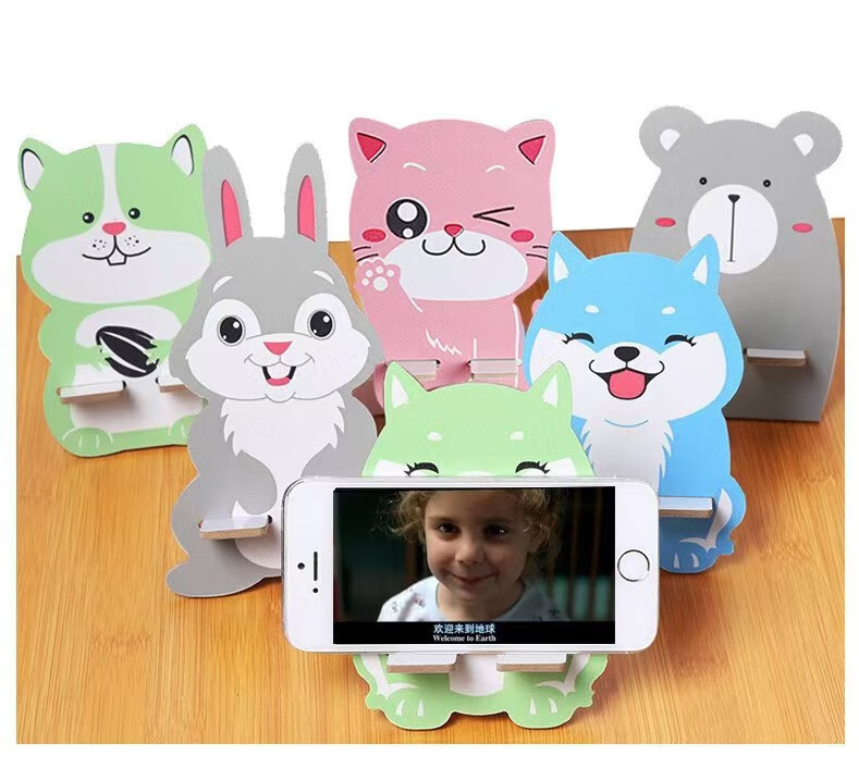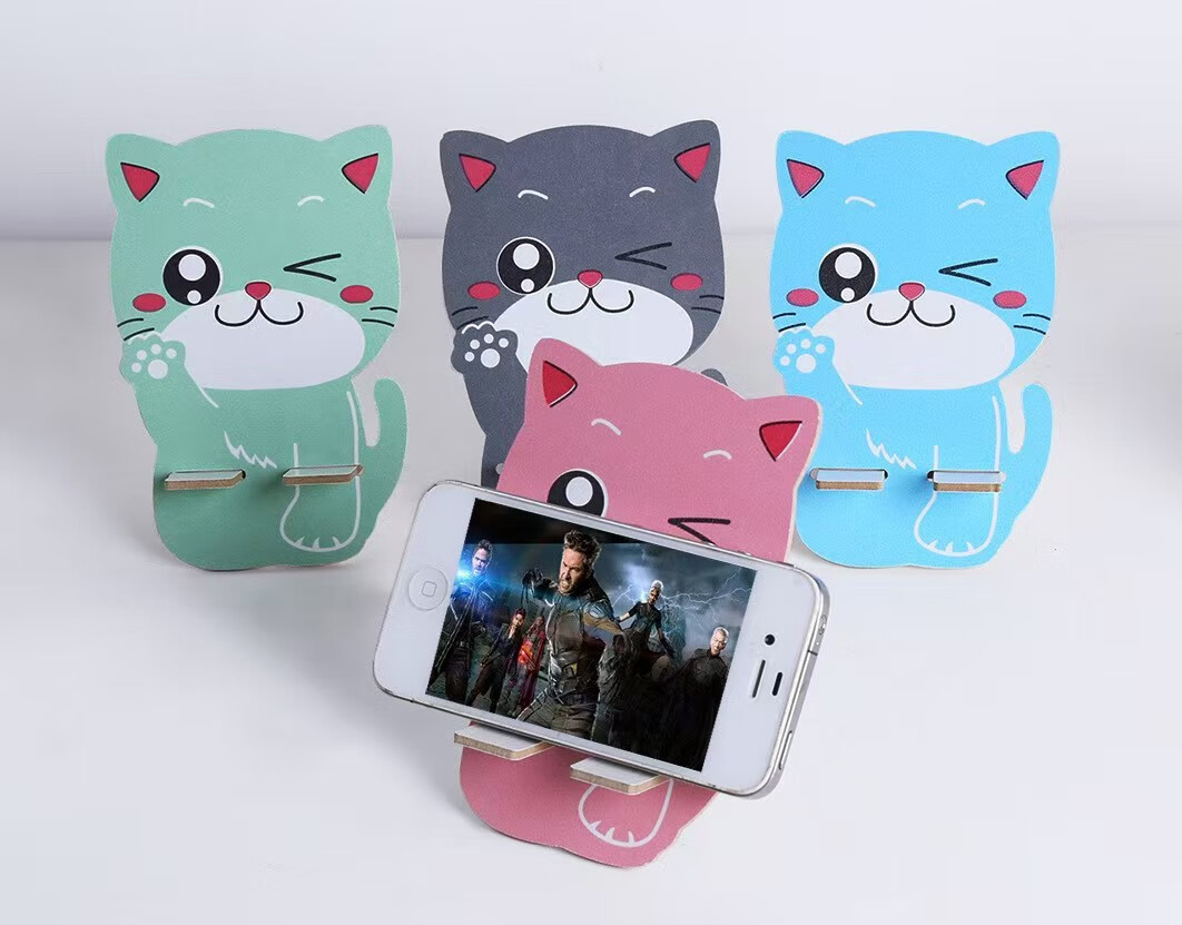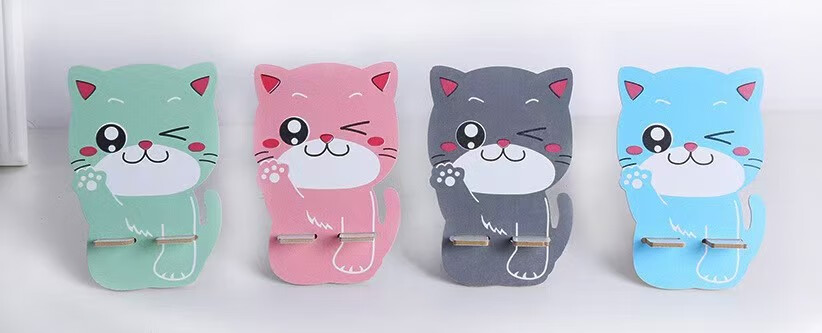 Creative Cartoon Mobile Phone Holder Desktop Cute Animal Girl Girl Heart Simple Wooden Female Dormitory Student Use Cute Animal Wooden Mobile Phone Holder Lucky Cat