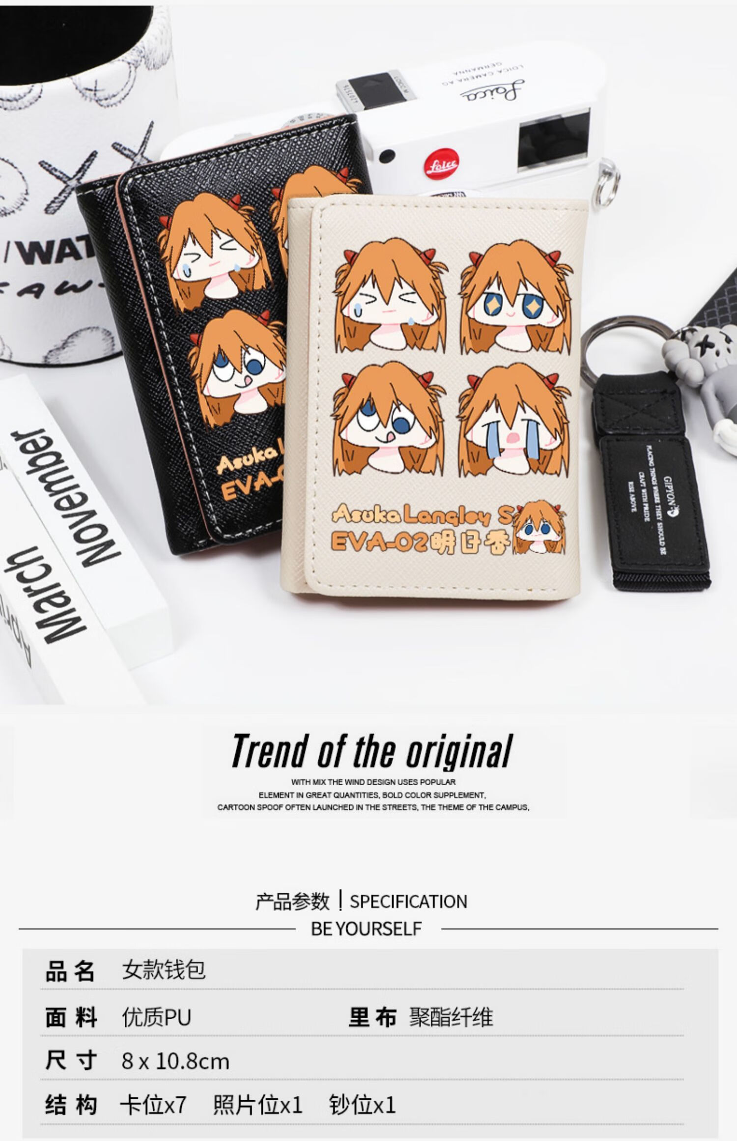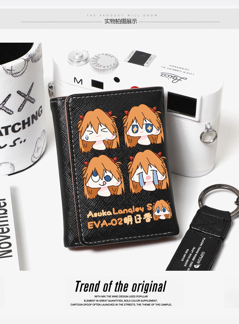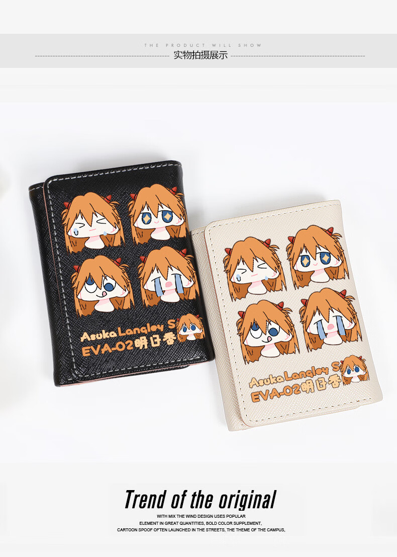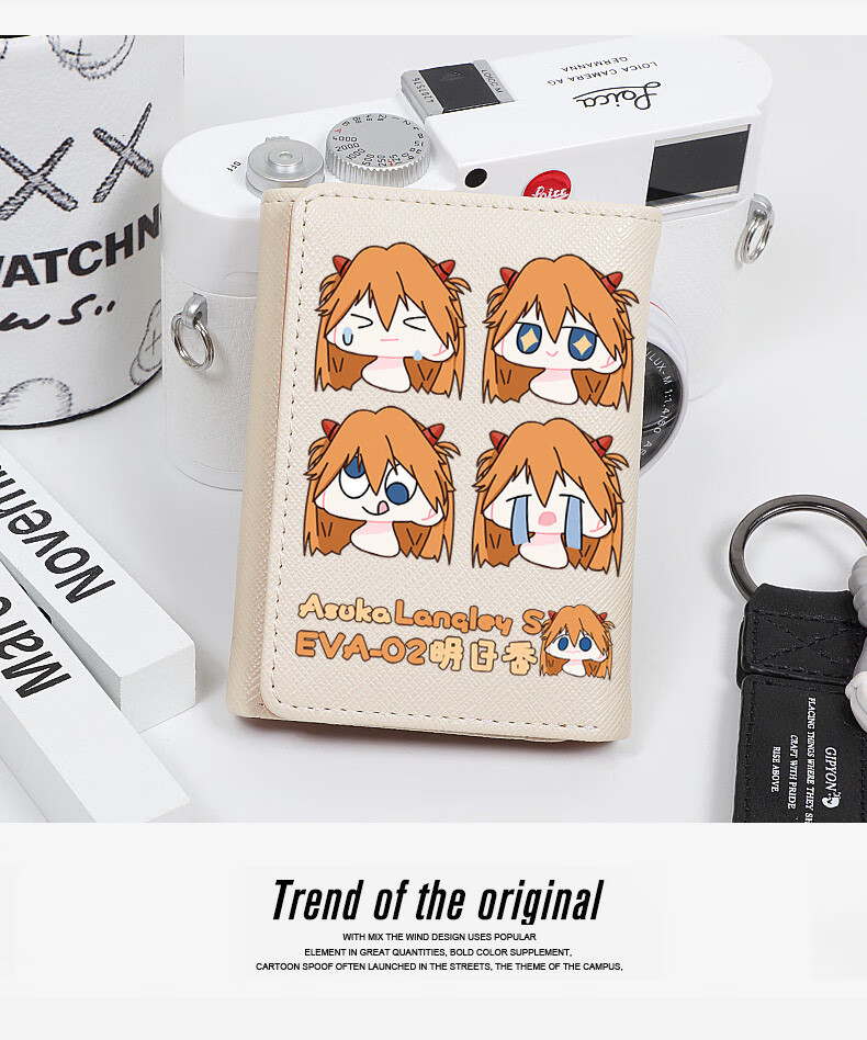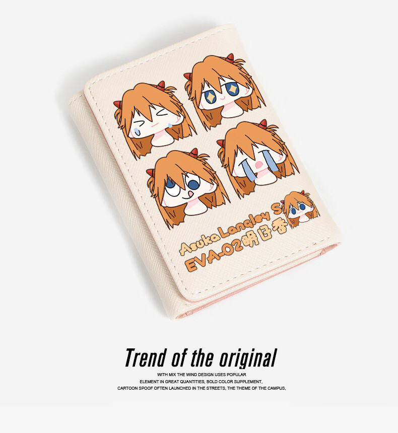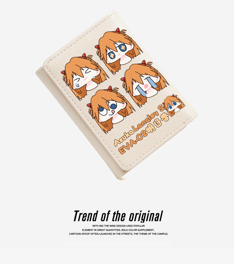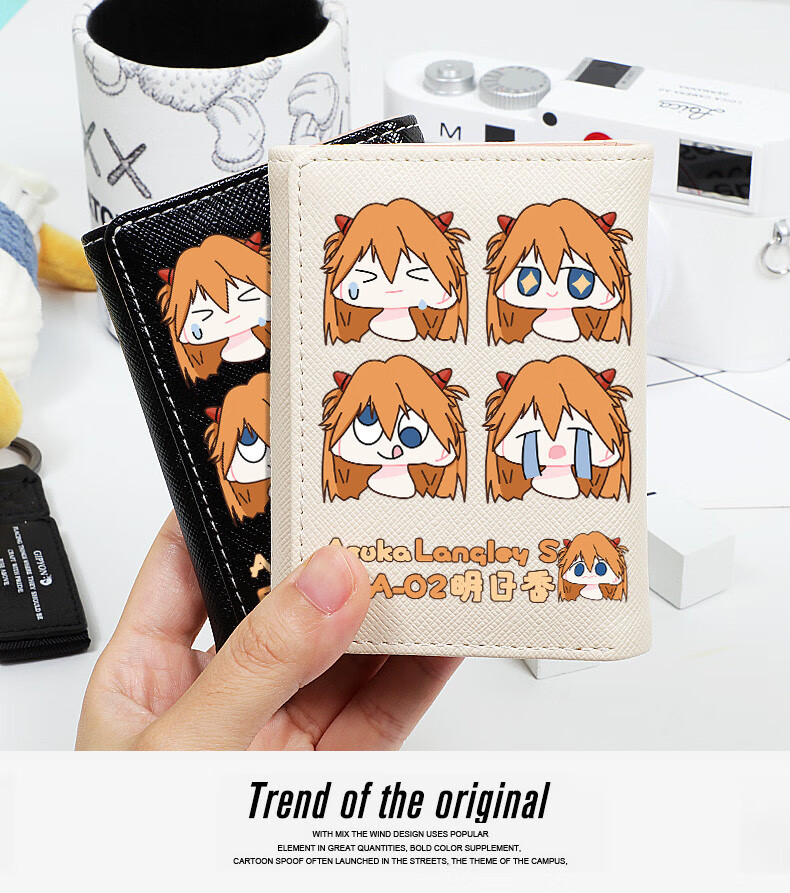 APEX BABYEVA anime peripheral wallet card bag for women, compact short Japanese style two-dimensional cute cartoon Asuka Ayanami Rei off-white W Asuka 4 expressions