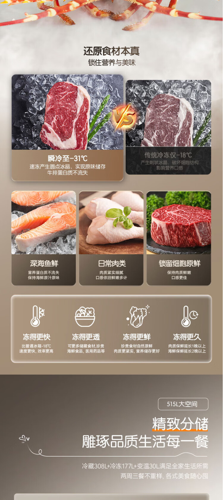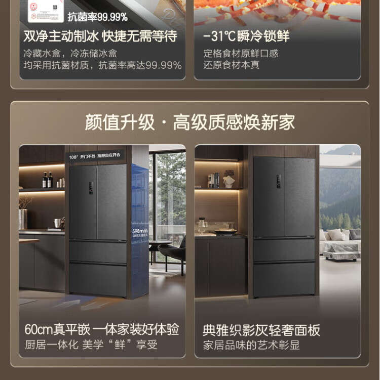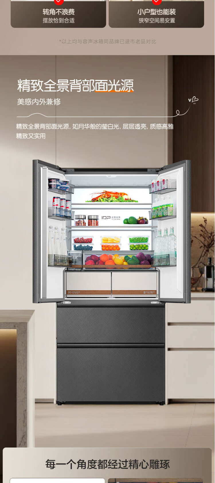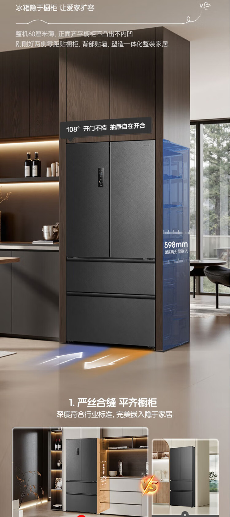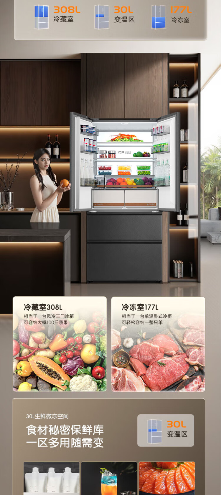 Rongsheng Cube Sugar 515L French-style multi-door refrigerator dual system ultra-thin zero-embedded automatic ice making first-class energy efficiency white BCD-515P60FZNAD National Subsidy World Cup BCD-515P60FZNAD Weaver Gray