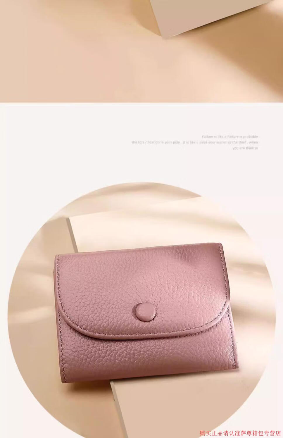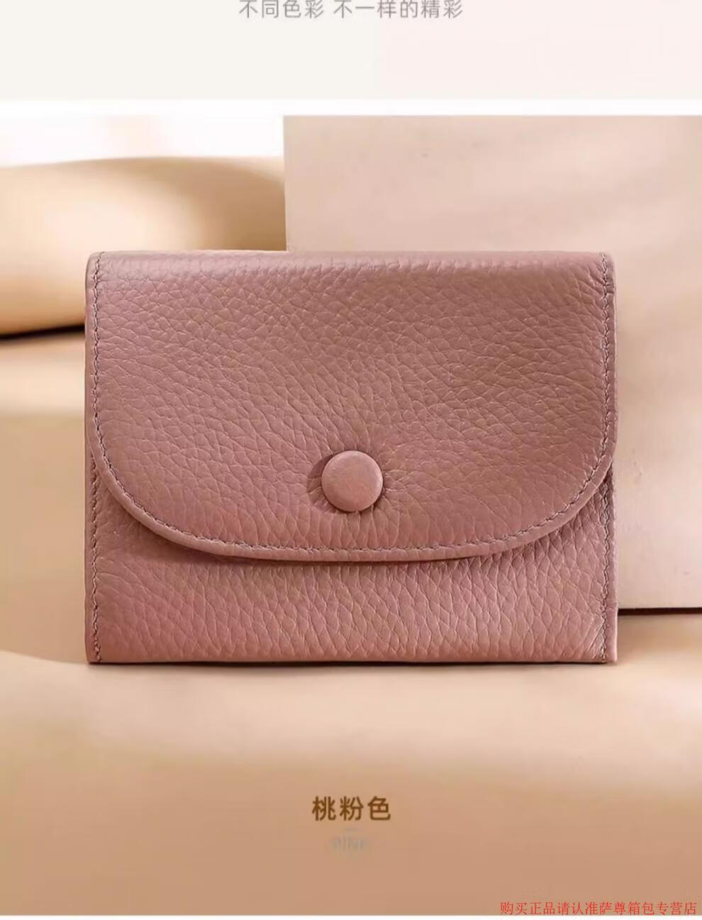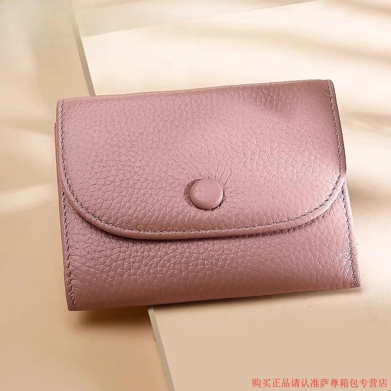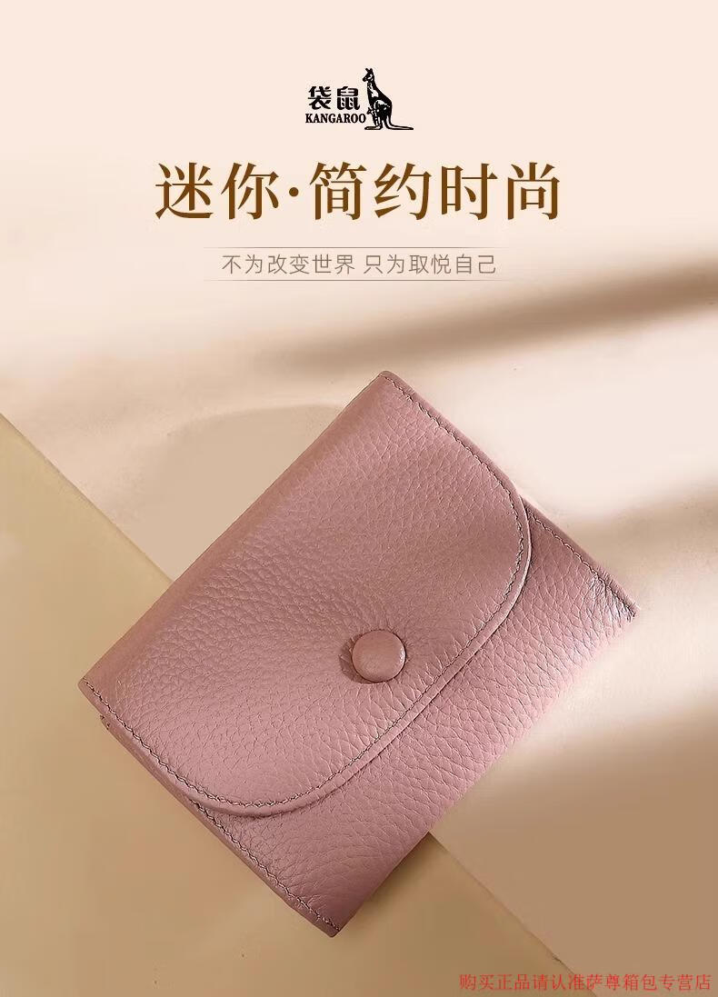 Kangaroo Wallet Women's Genuine Leather New Wallet Short Folding Mini Compact Versatile Fashion Coin Purse Multi-Function Peach Pink - First Layer Cowhide