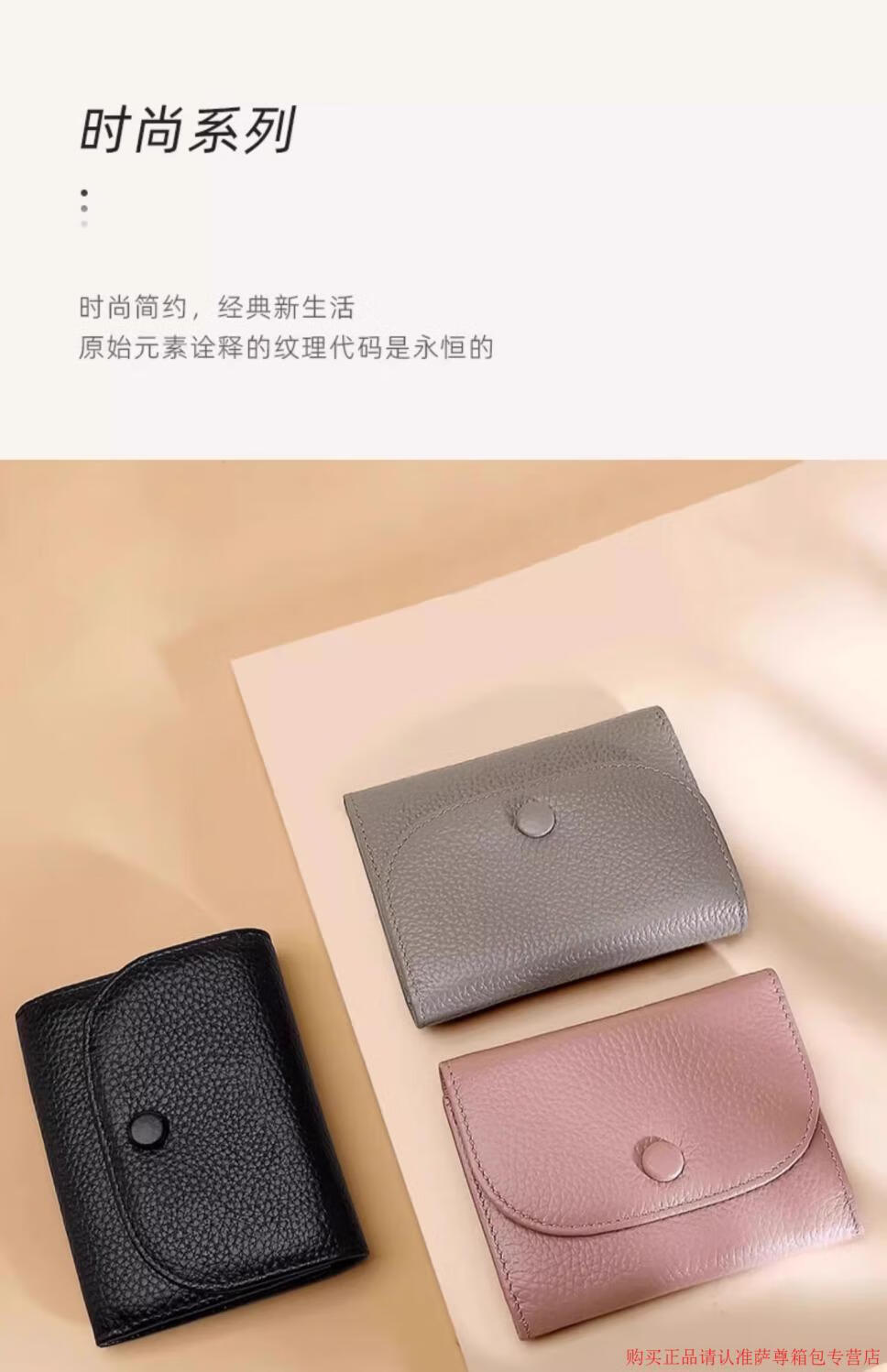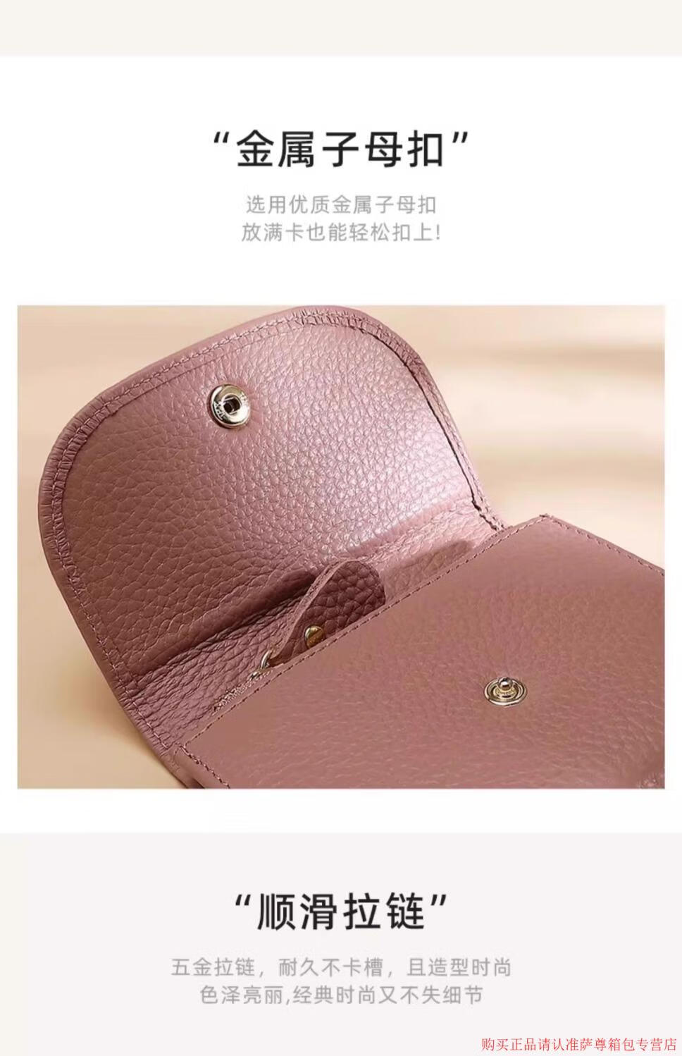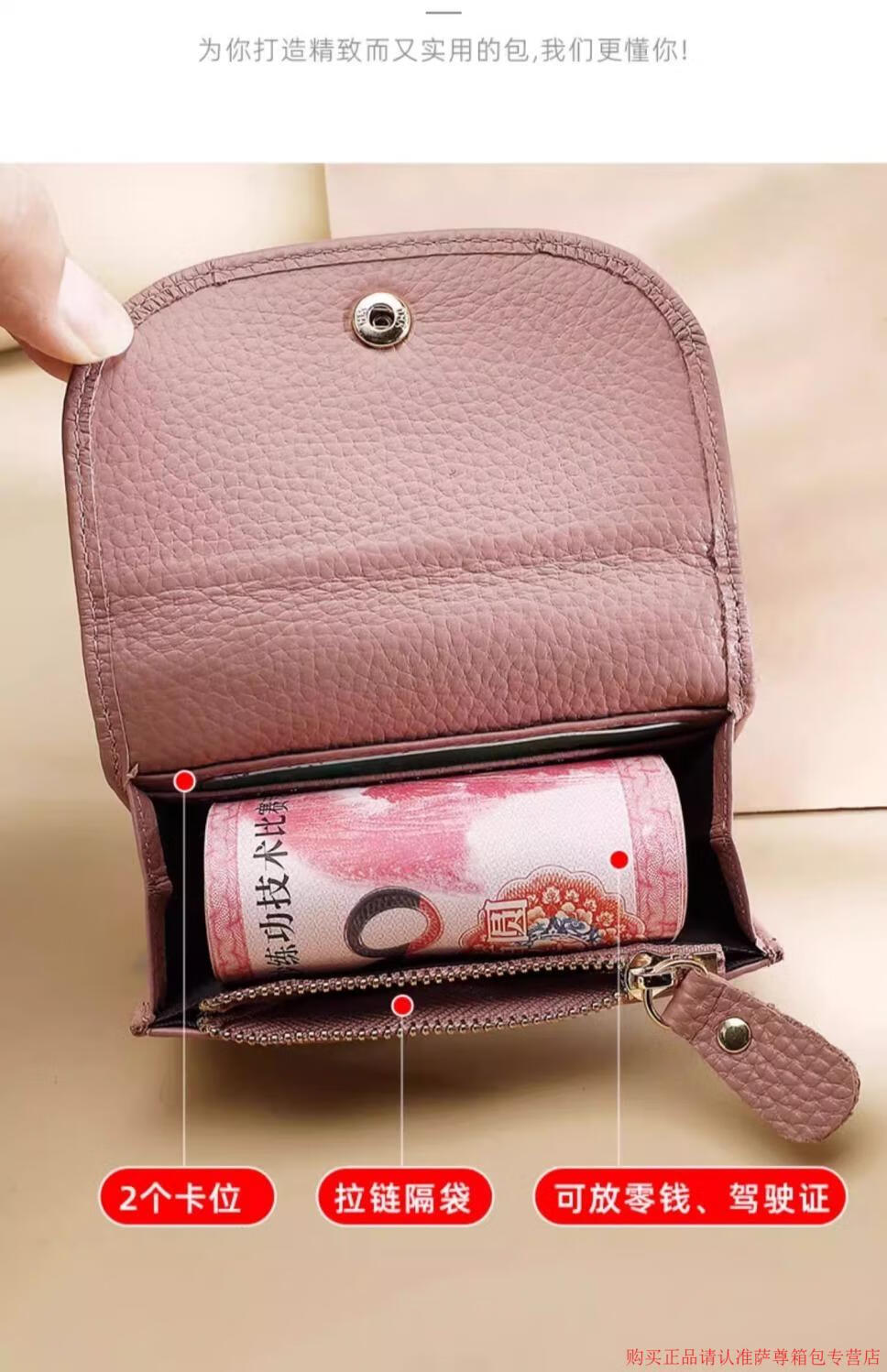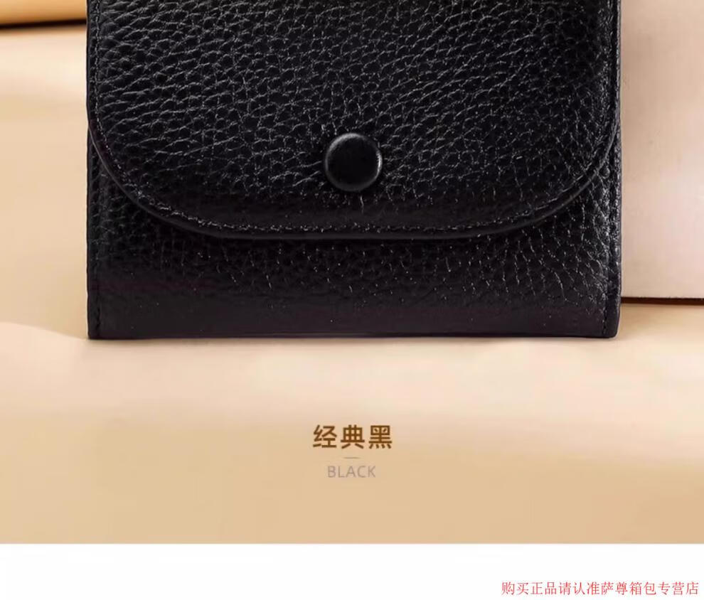 Kangaroo Wallet Women's Genuine Leather New Wallet Short Folding Mini Compact Versatile Fashion Coin Purse Multi-Function Peach Pink - First Layer Cowhide