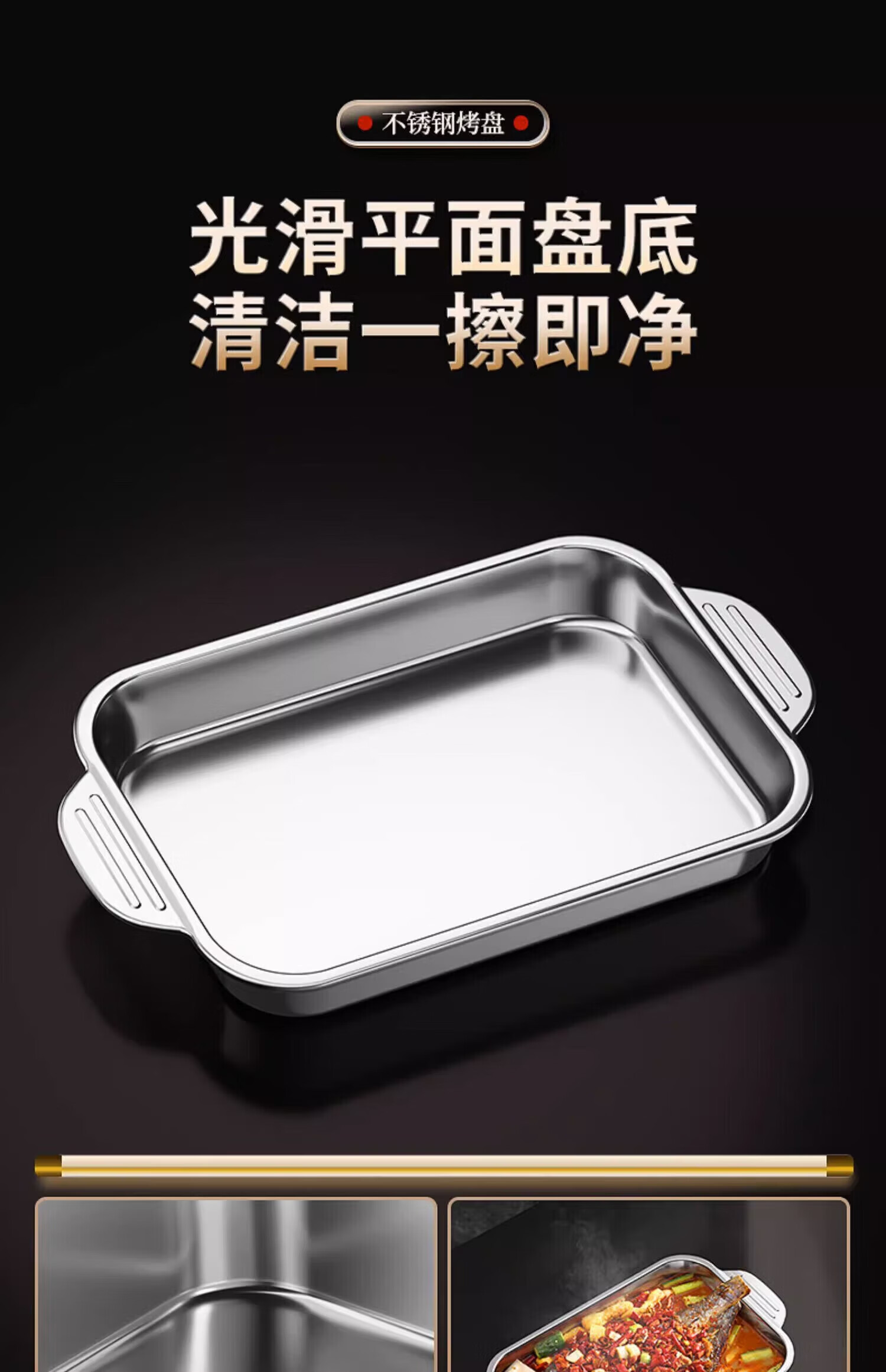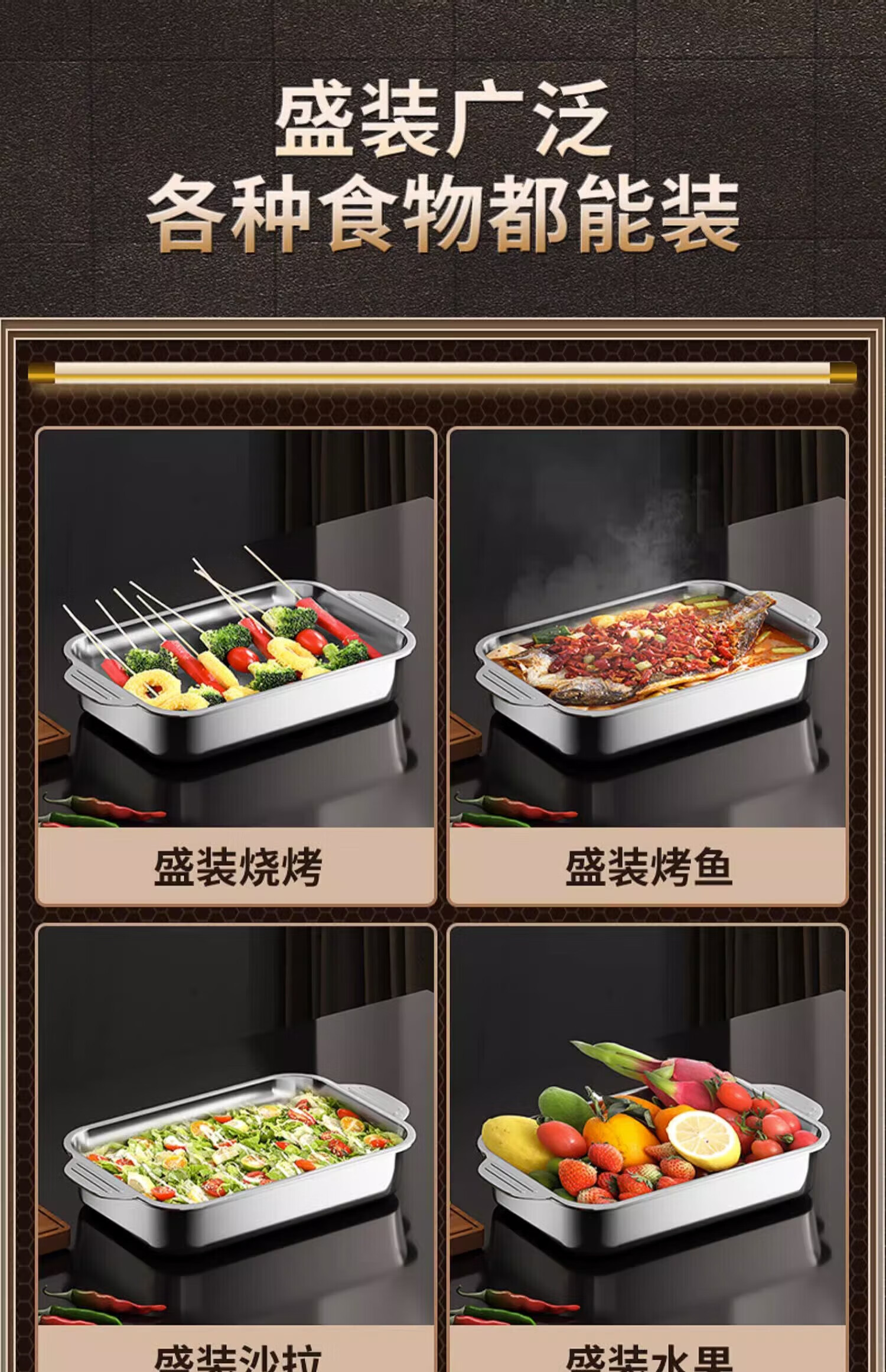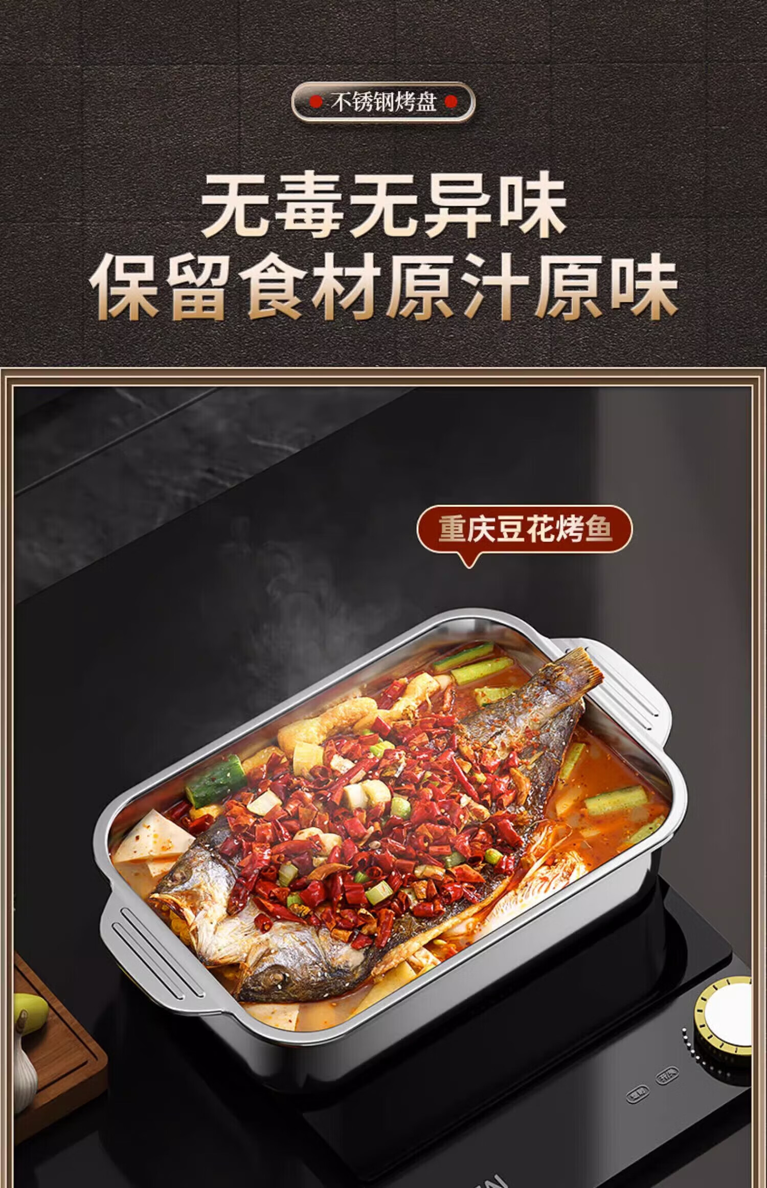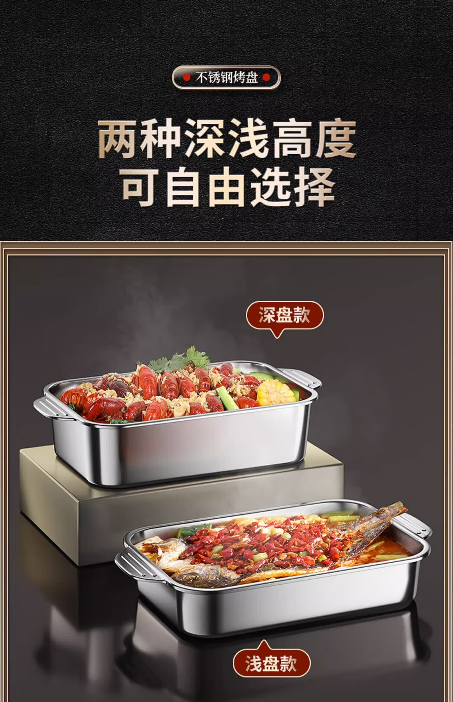 Stainless steel grilled fish plate, toasted bread plate, barbecue crayfish plate, dry pot rectangular tray, vegetable plate, boiled fish, grilled fish plate, large deep version 40*24.5*8cm