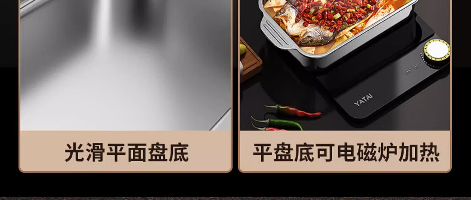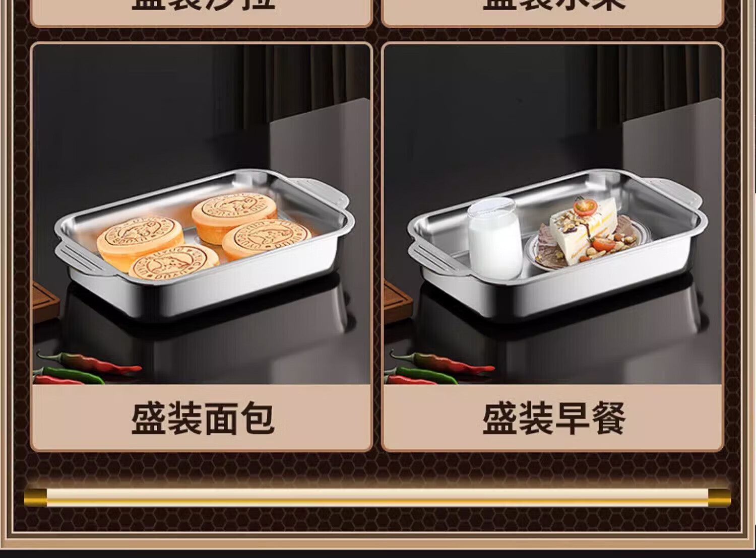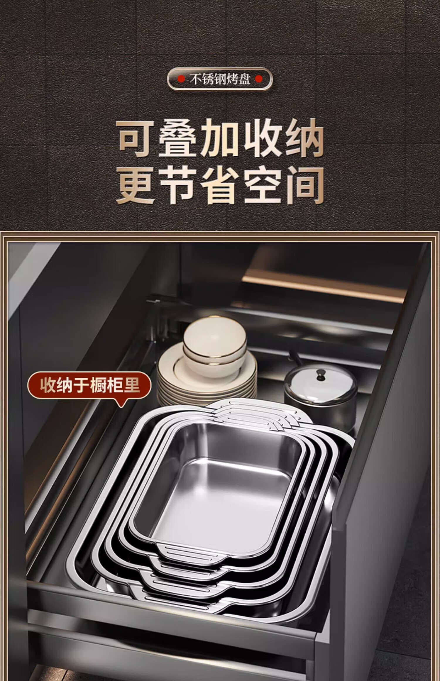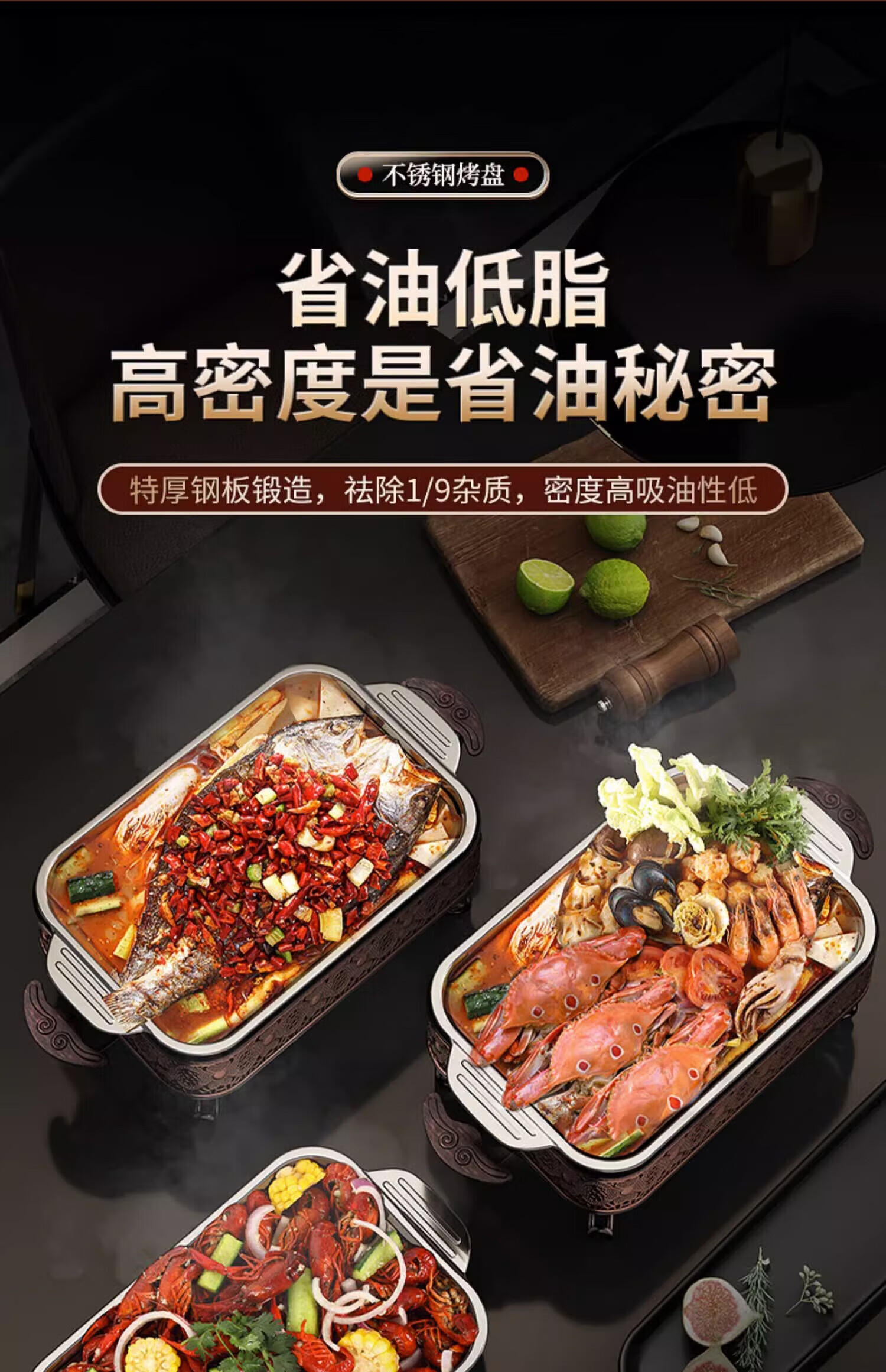 Stainless steel grilled fish plate, toasted bread plate, barbecue crayfish plate, dry pot rectangular tray, vegetable plate, boiled fish, grilled fish plate, large deep version 40*24.5*8cm
