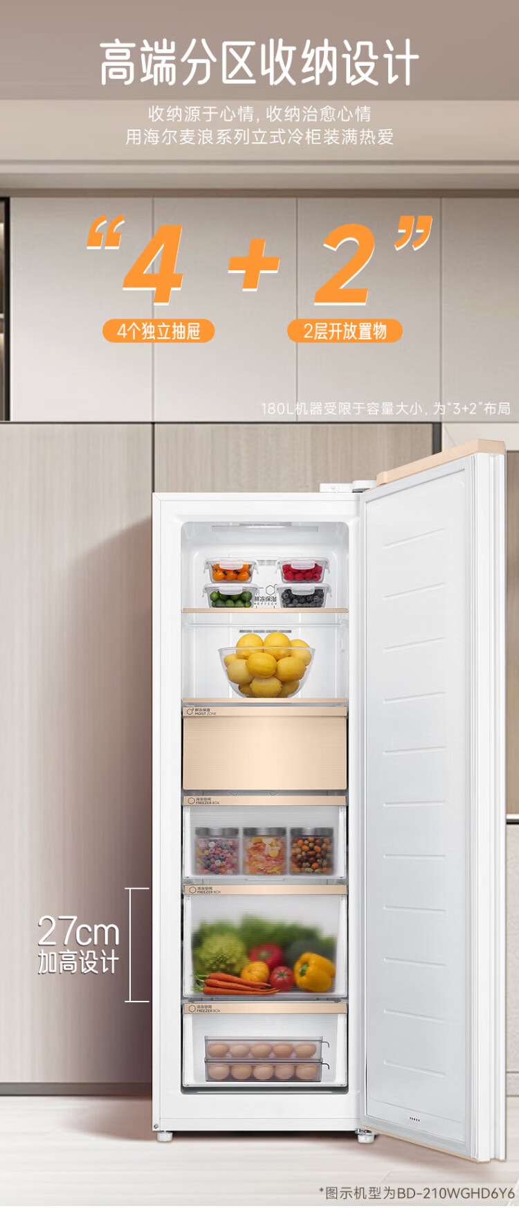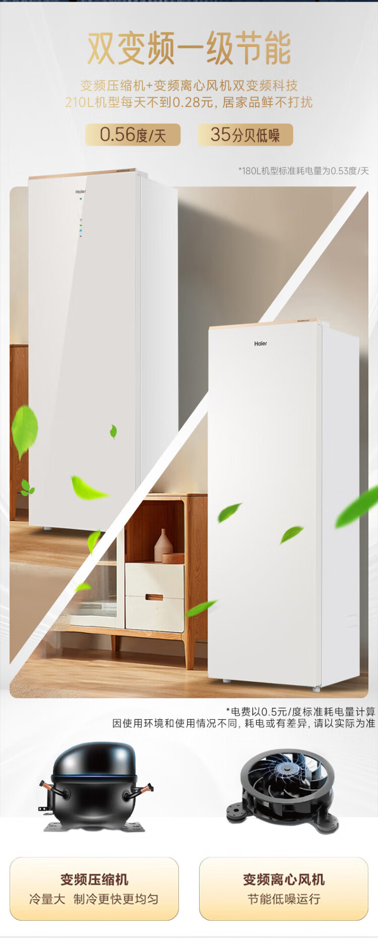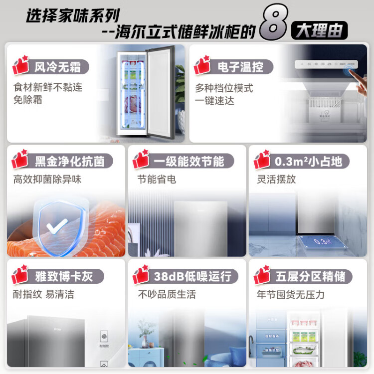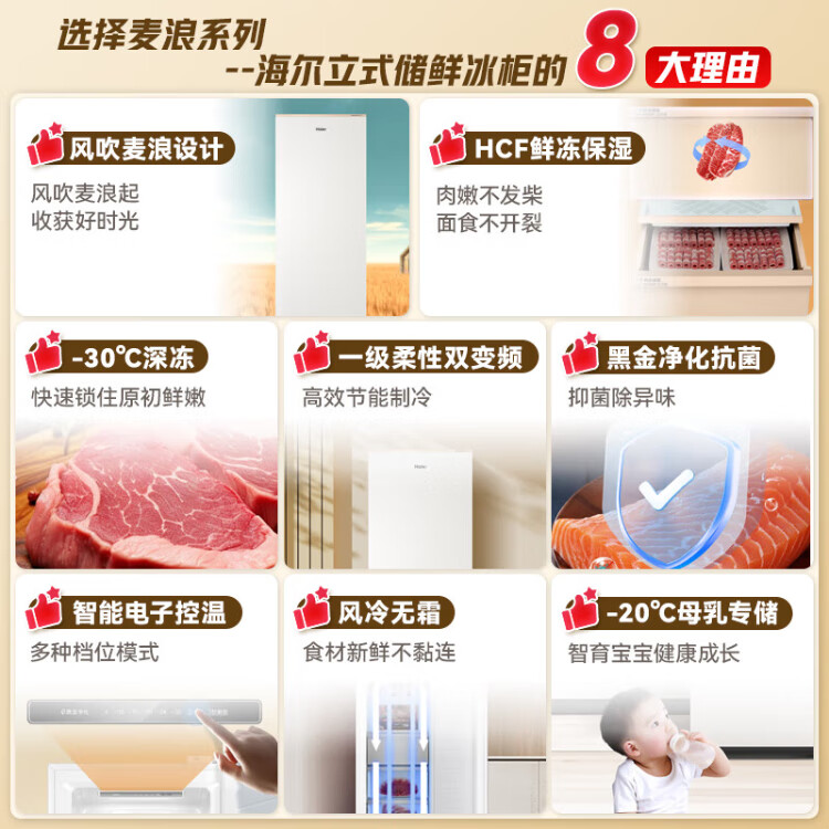 Haier Mailang series + Xiaohonghua series 152/180/210/242/290/335L single temperature vertical household freezer air-cooled electronic temperature control cryogenic quick freezing level 1 energy efficiency 242L Xiaohonghua series ice white | can be changed to double doors