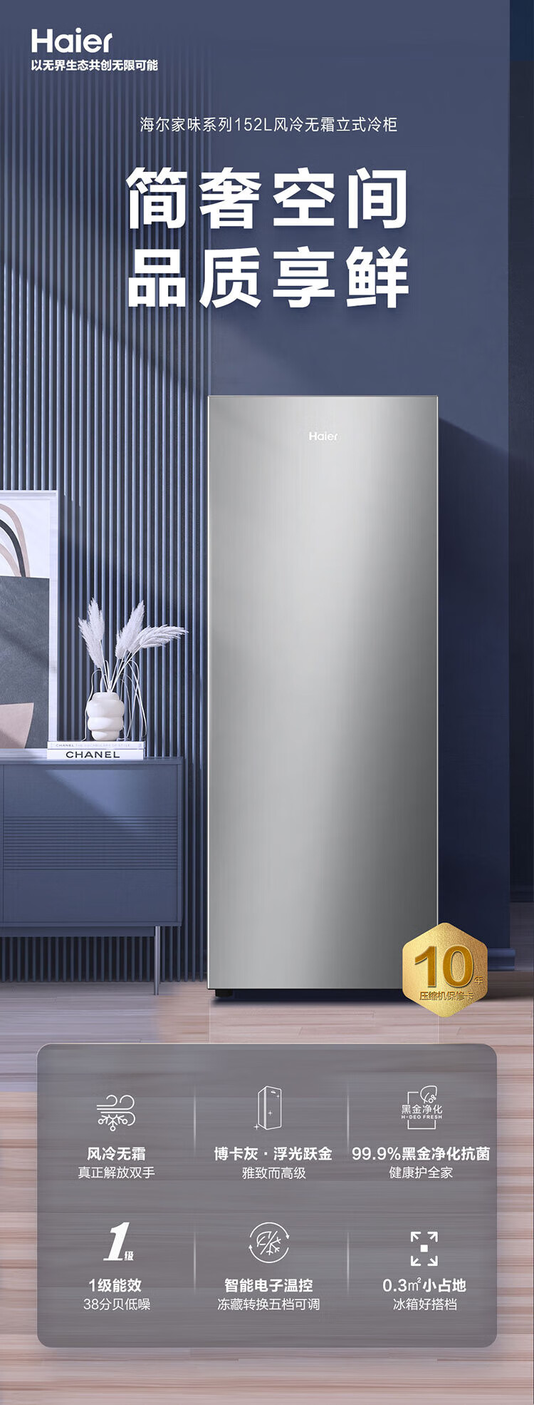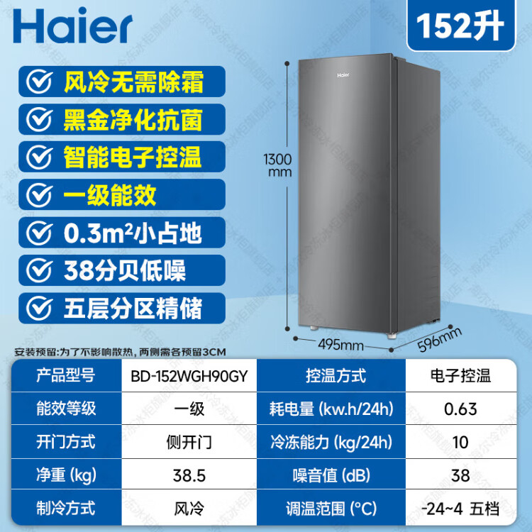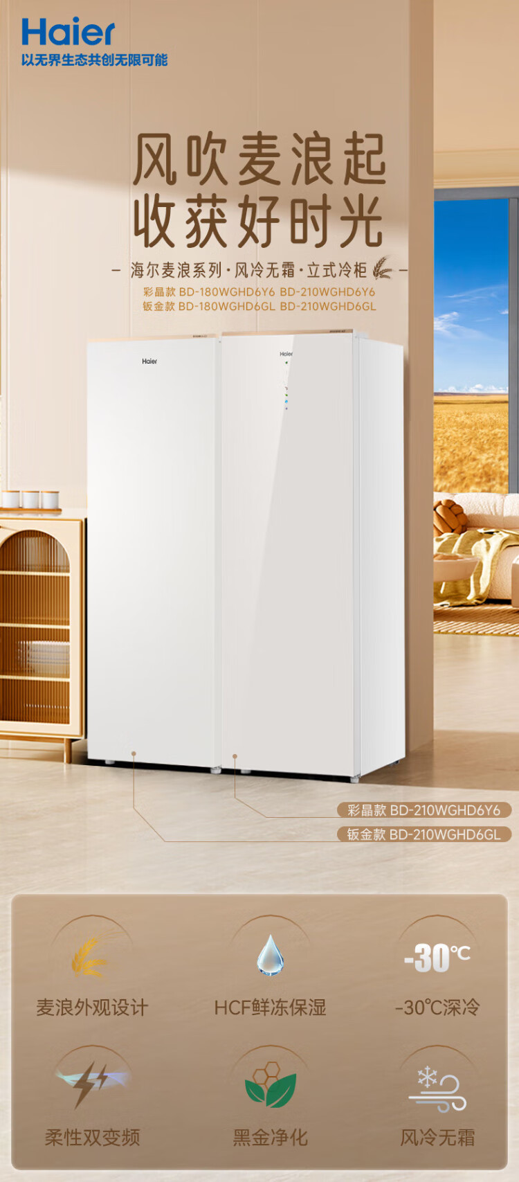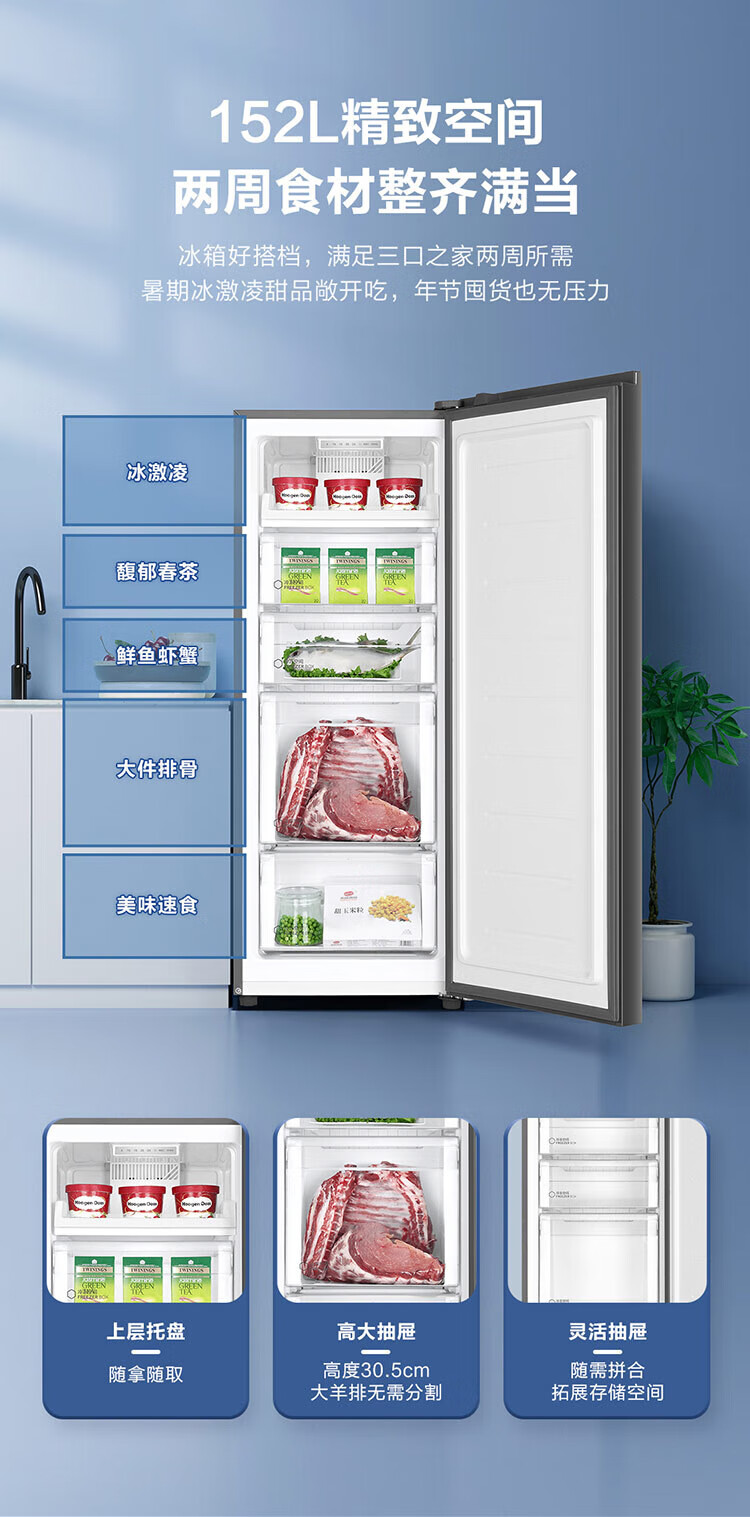 Haier Mailang series + Xiaohonghua series 152/180/210/242/290/335L single temperature vertical household freezer air-cooled electronic temperature control cryogenic quick freezing level 1 energy efficiency 242L Xiaohonghua series ice white | can be changed to double doors