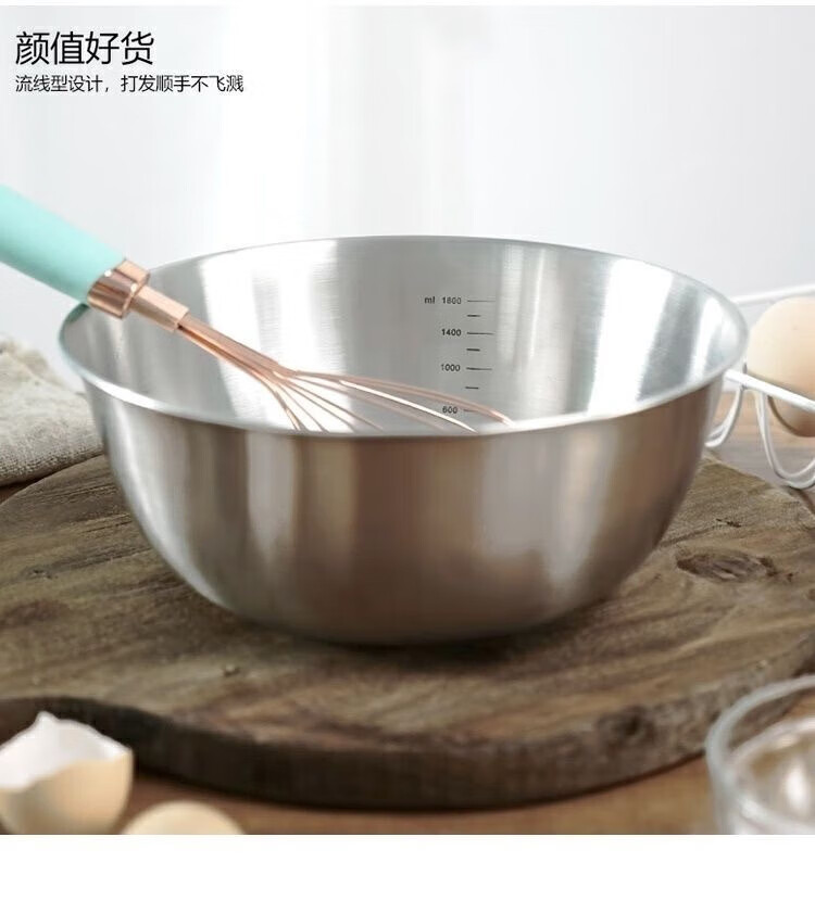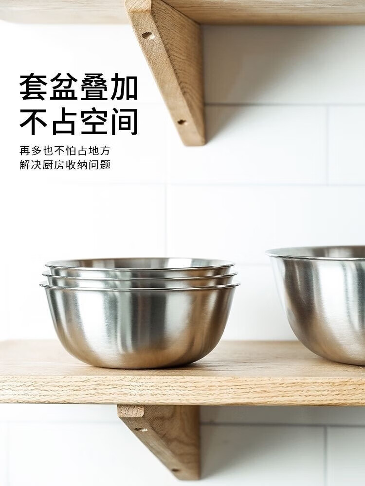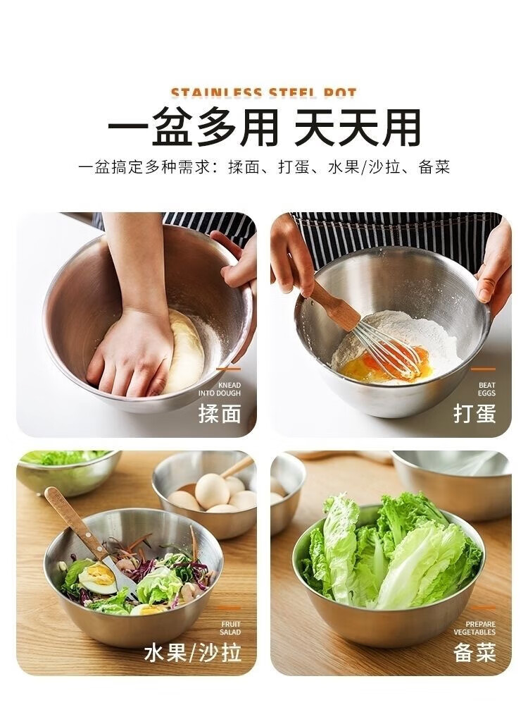 Stainless steel basin and wash basin, vegetable basin, egg beater basin, home kitchen cold salad basin, straight side basin, salad basin three-piece set 17+19+22cm