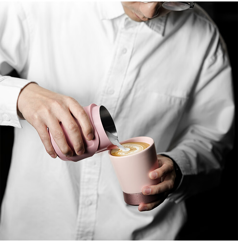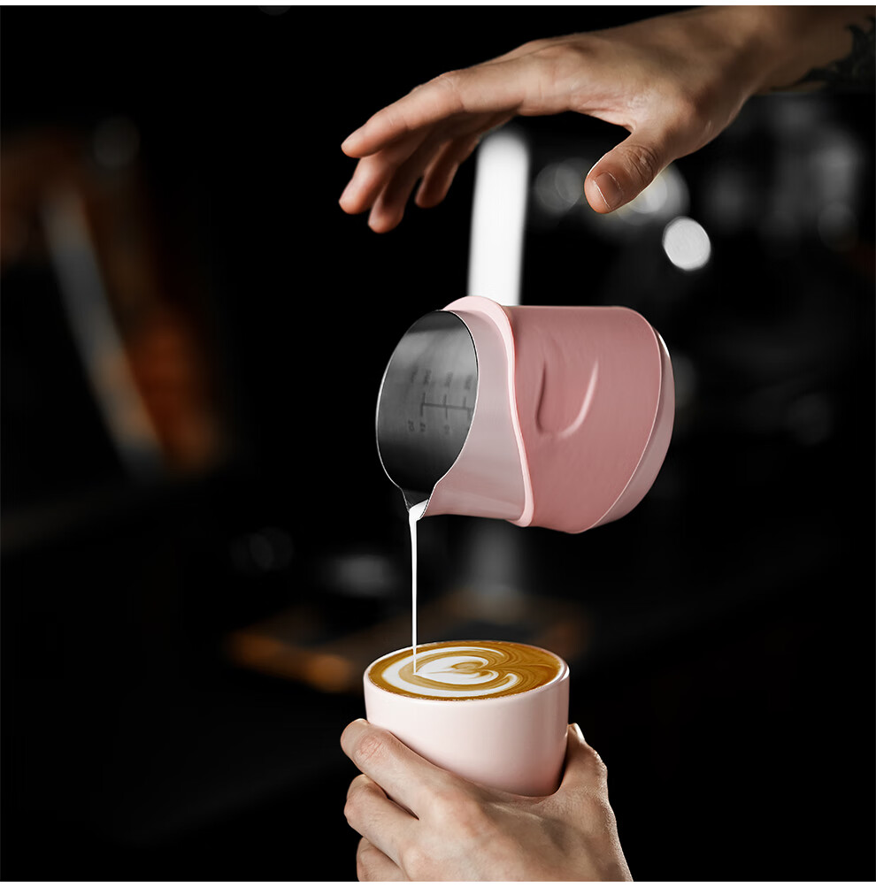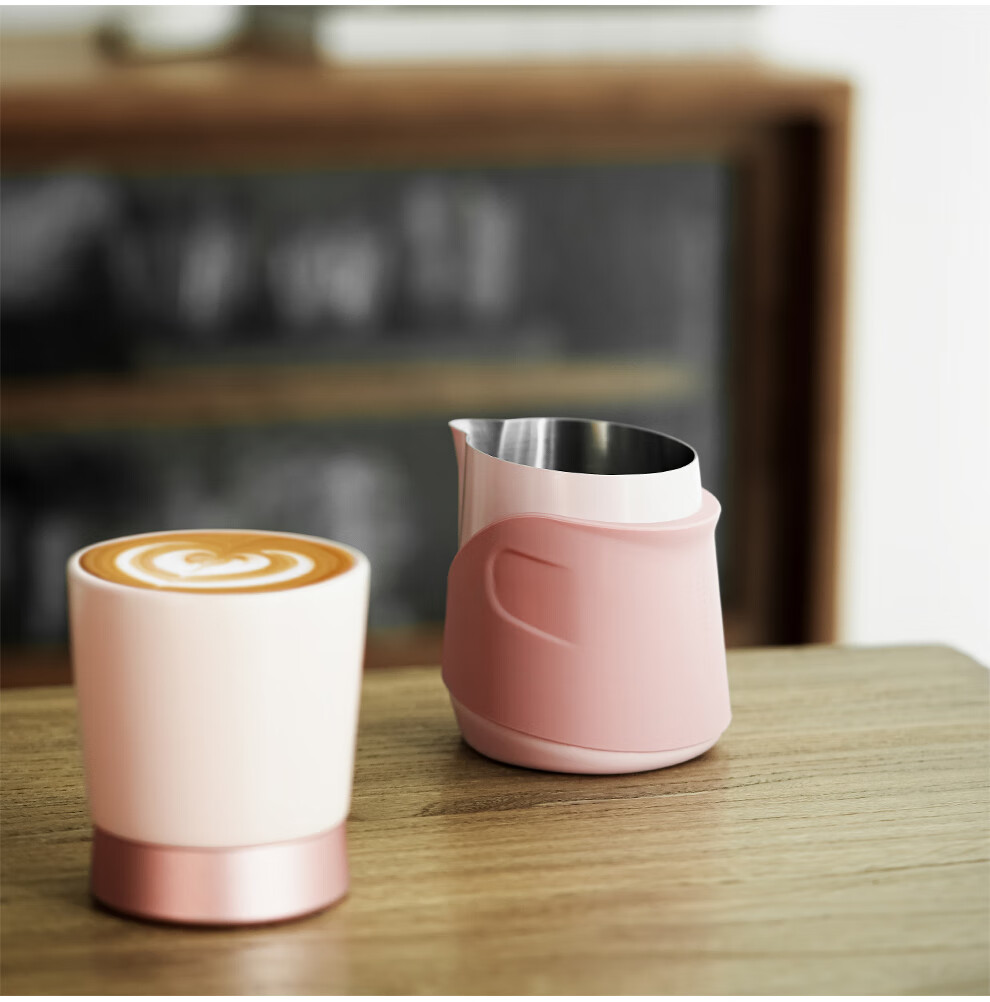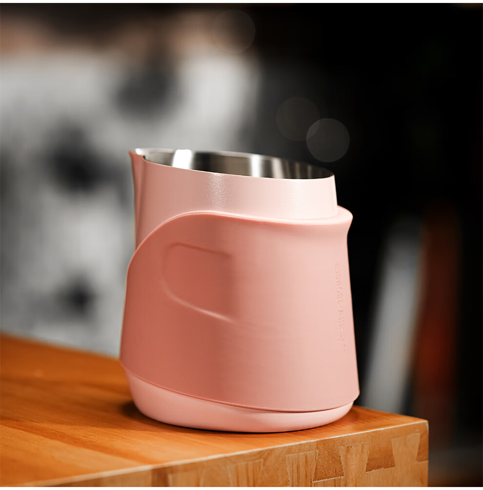 MHW-3BOMBER Bomber GT Latte Art Jar Handleless Professional Espresso Milk Foam Latte Art Cup Innovative Tank Body U-shaped Cylinder Mouth GT Latte Art Jar-Handleless-Pink-400ml