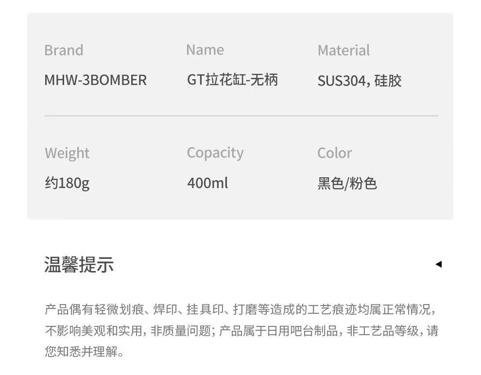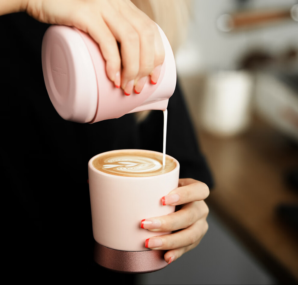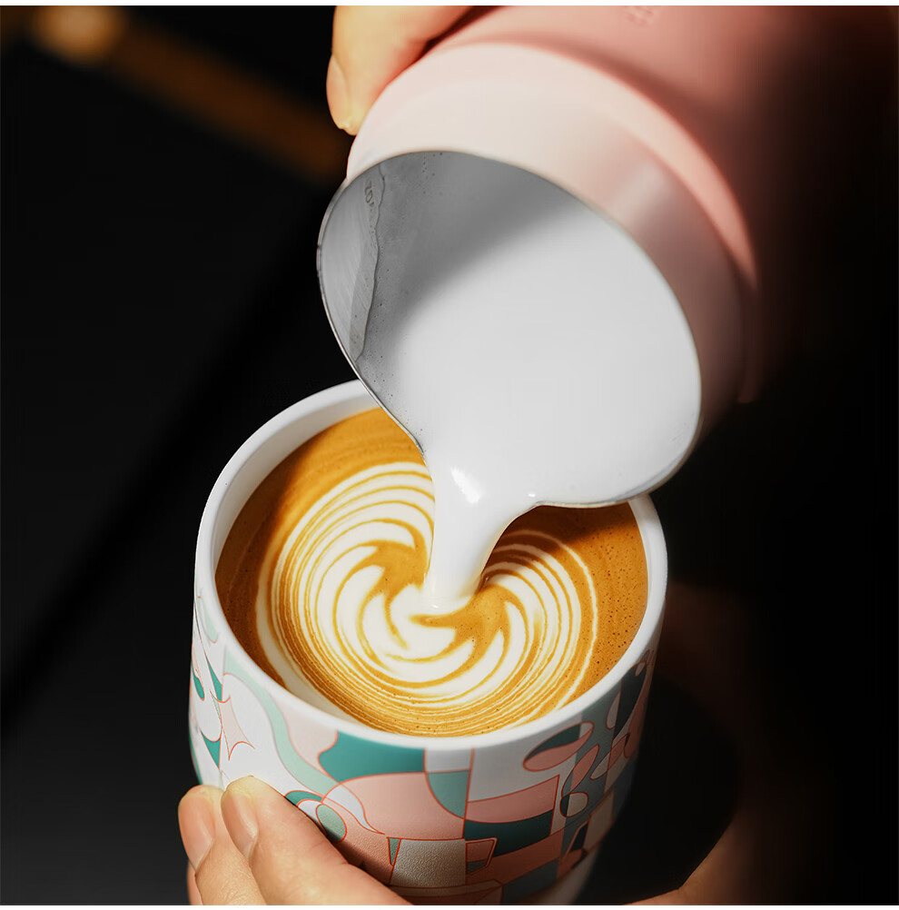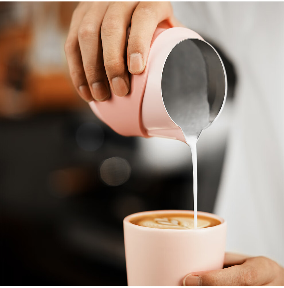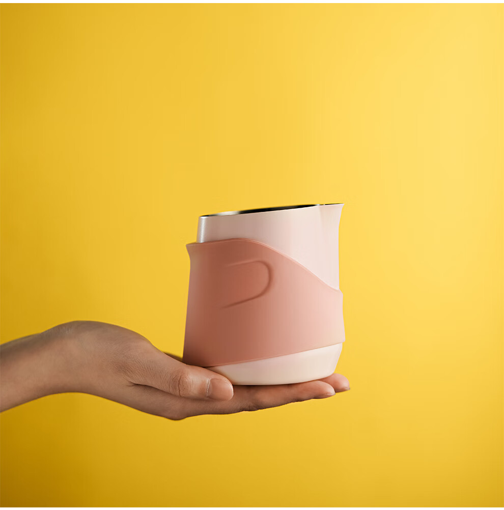 MHW-3BOMBER Bomber GT Latte Art Jar Handleless Professional Espresso Milk Foam Latte Art Cup Innovative Tank Body U-shaped Cylinder Mouth GT Latte Art Jar-Handleless-Pink-400ml