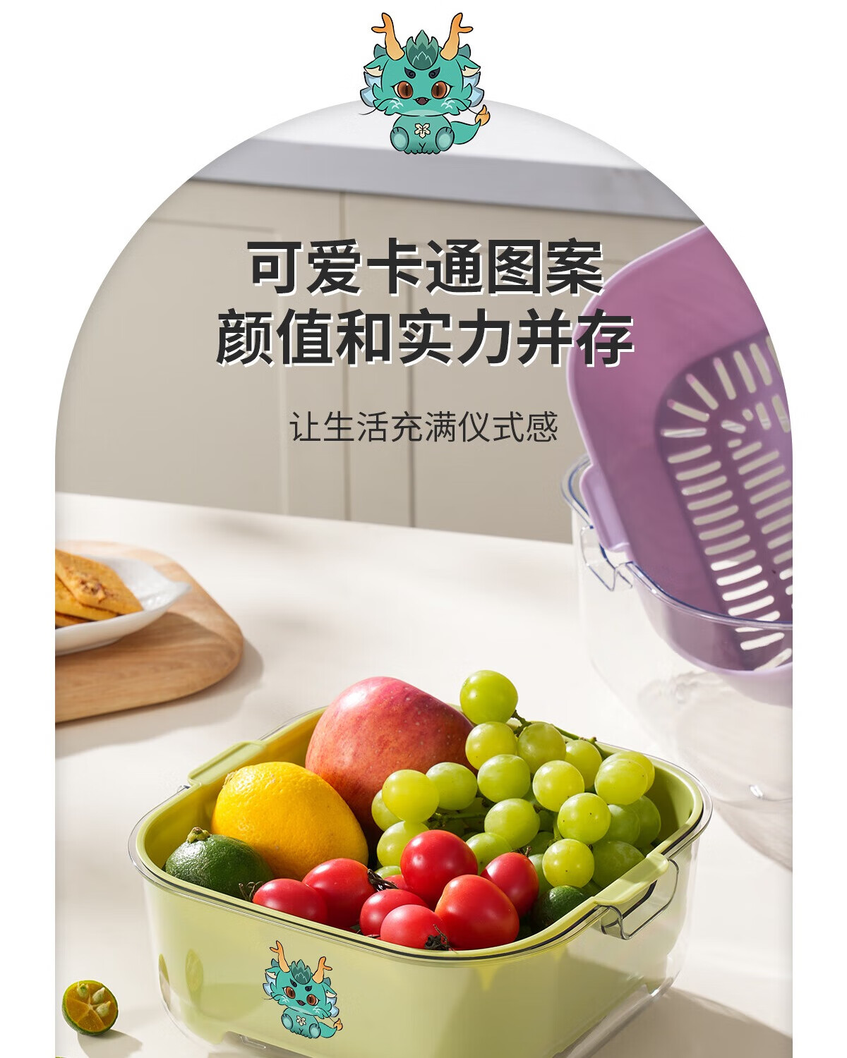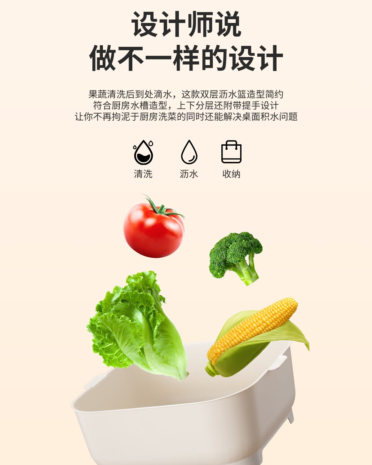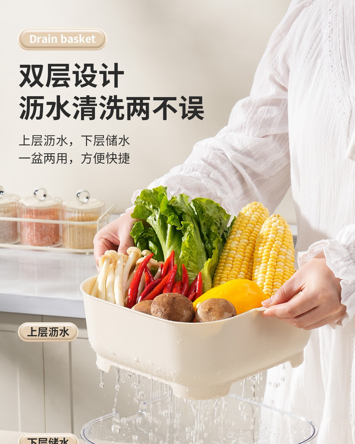 Double-layer vegetable sink drain basket kitchen fruit plate thickened multi-functional household fruit and vegetable basket white large with stickers