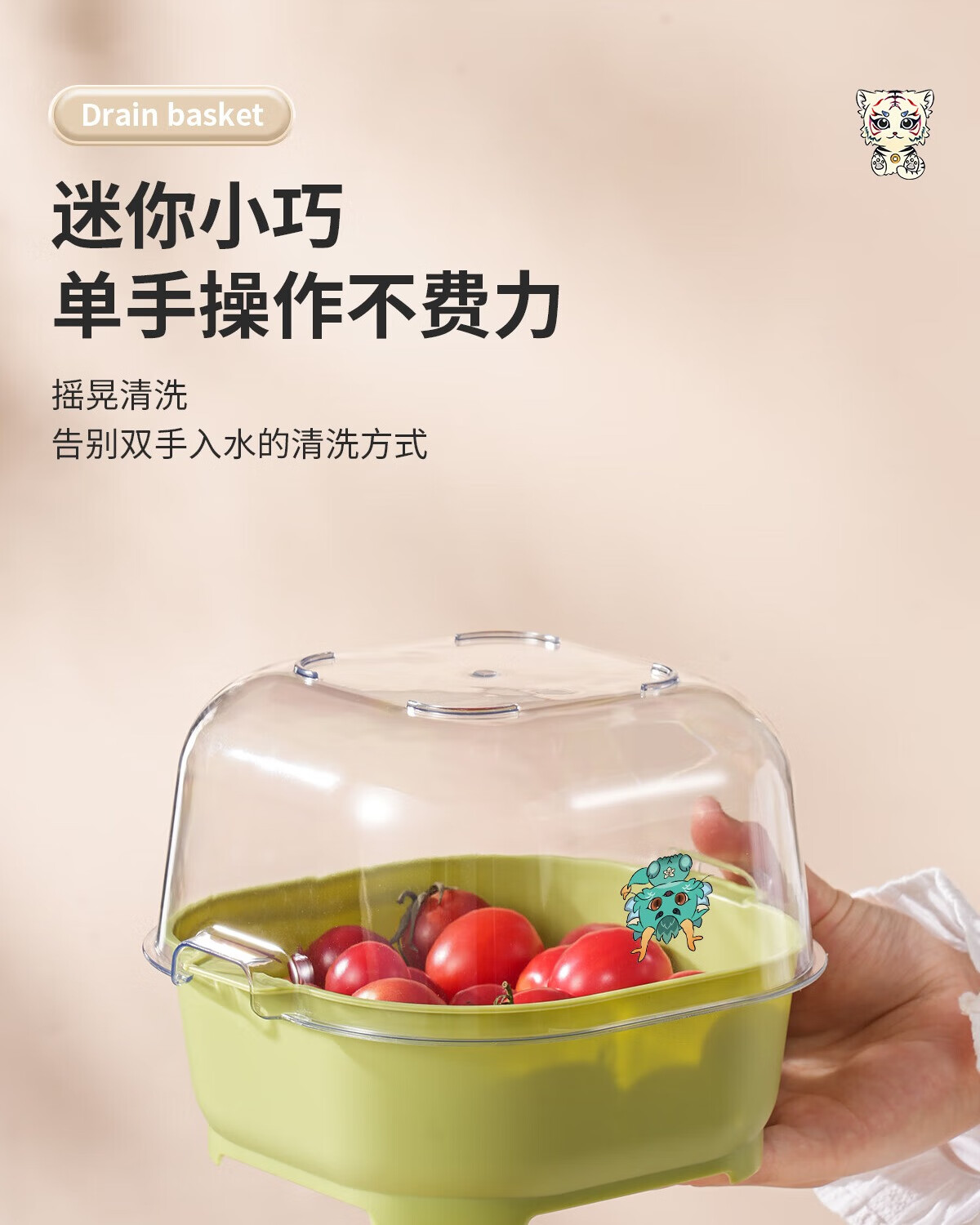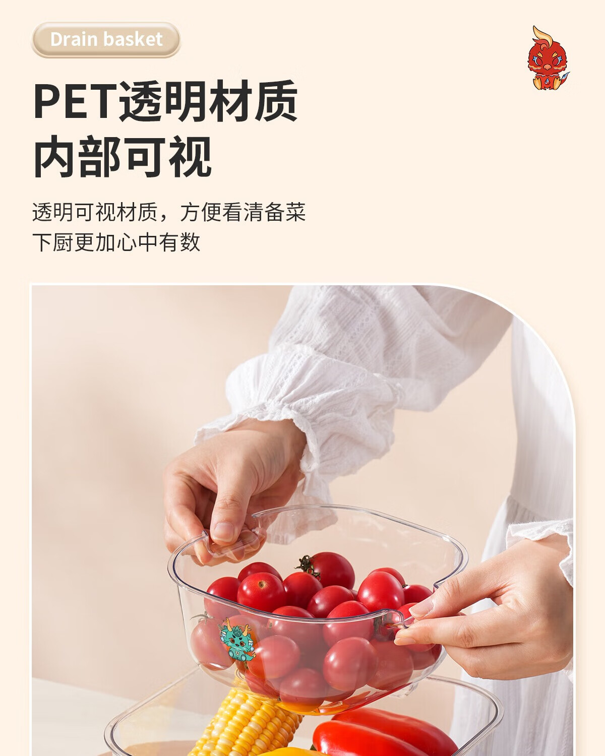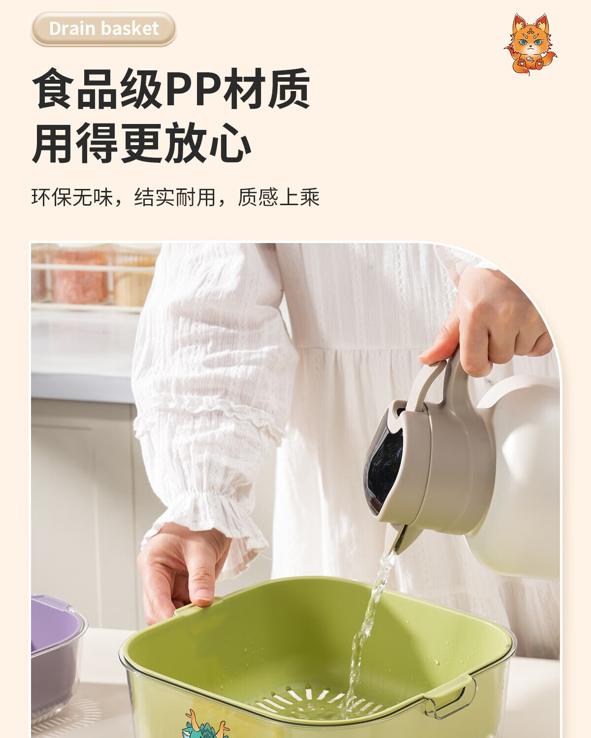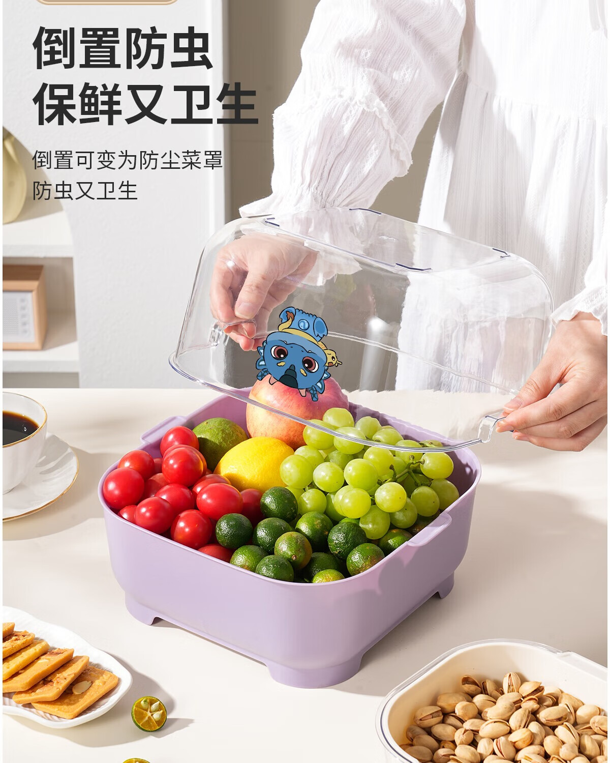 Double-layer vegetable sink drain basket kitchen fruit plate thickened multi-functional household fruit and vegetable basket white large with stickers